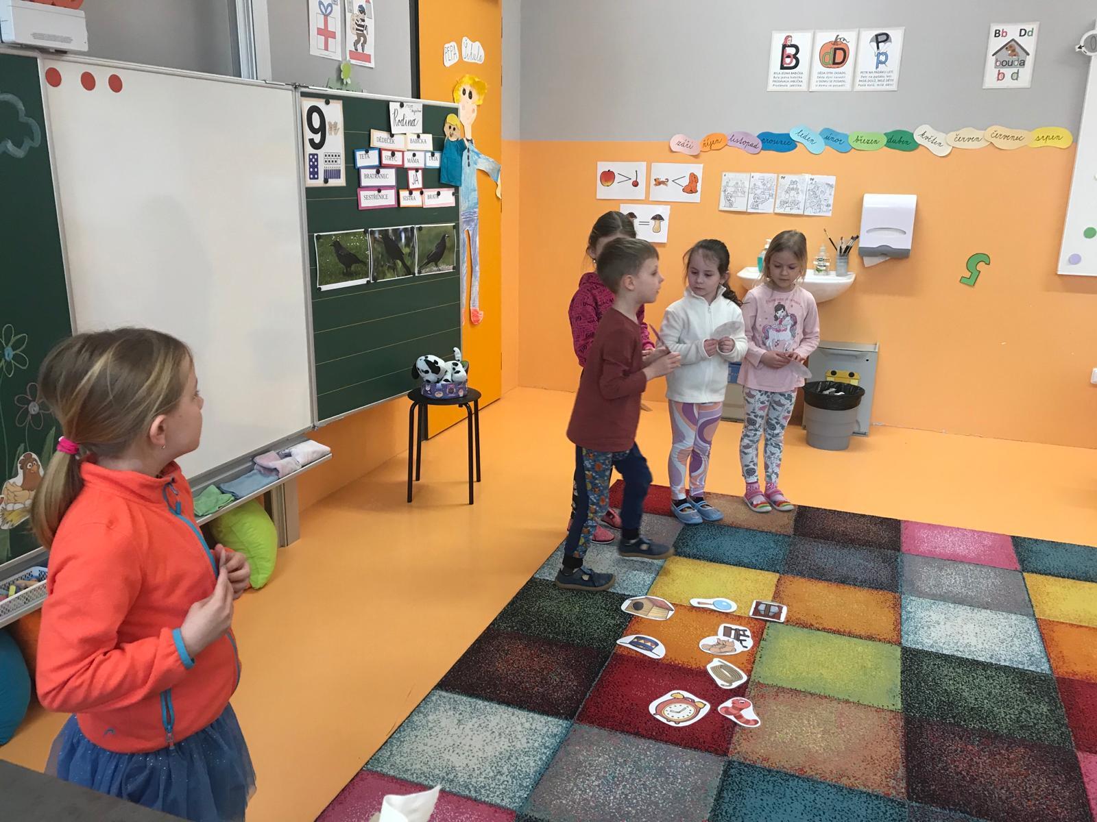 Hráli hru na Pošťáka - předškoláčci četli obrázek, školáci slovo.