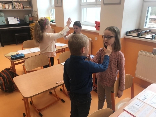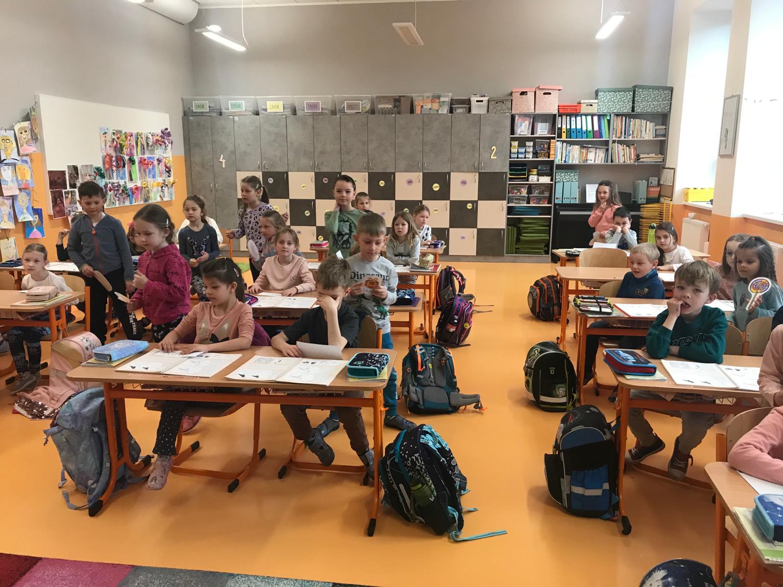 Dnes nás ve třídě navštívili předškoláčci z mateřské školy. A tak se museli prvňáčci hodně snažit, aby dětem ukázali, že škola je zábava a že už umí krásně číst i počítat. V každé hodině jsme děti přivítali, přečetli jsme si o vráně a havranovi a oba ptáky jsme poznávali. O tom třetím , kosovi, jsme se naučili pohybovou říkanku. A pak už jsme zkoušeli i naše budoucí prvňáčky.