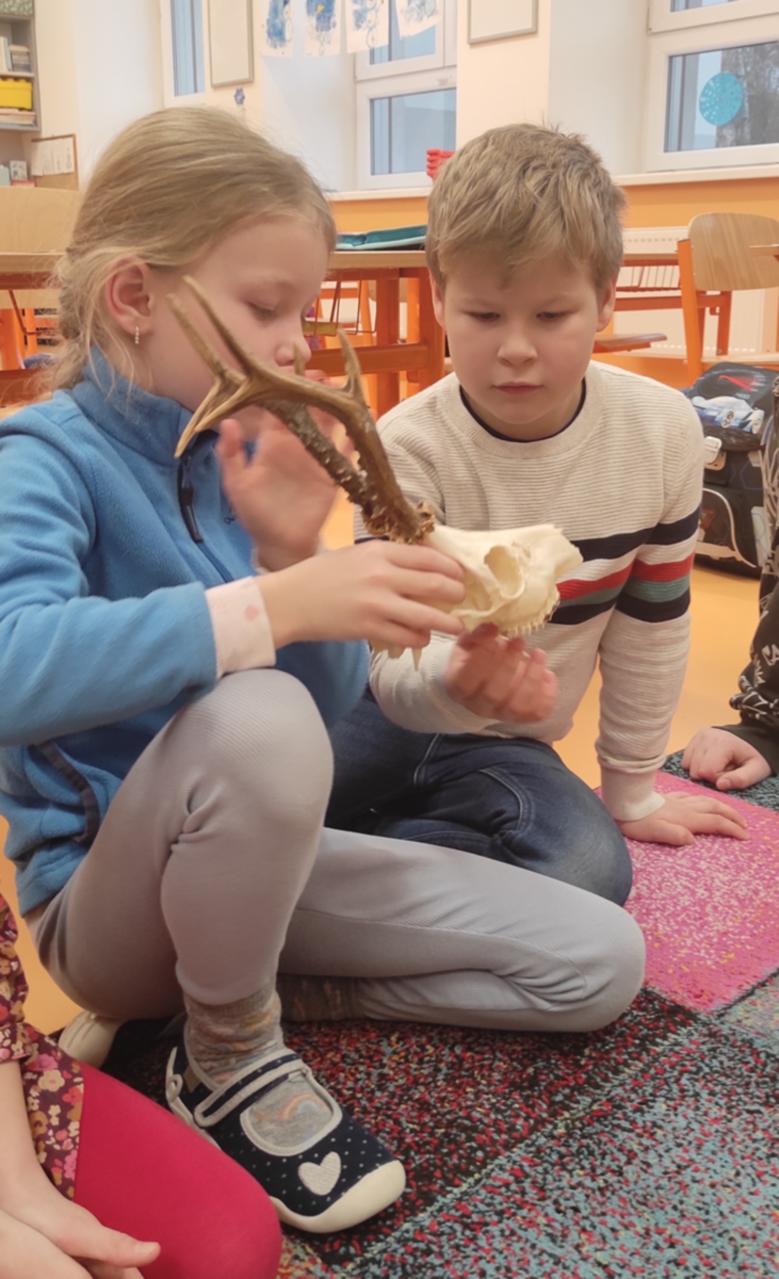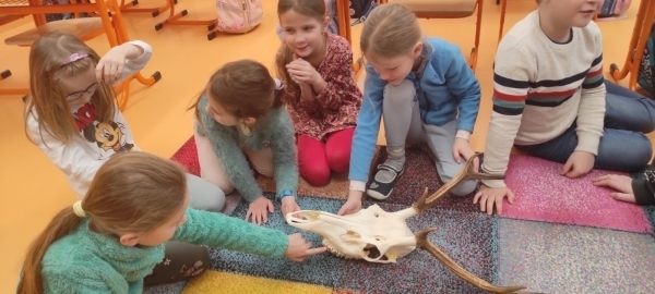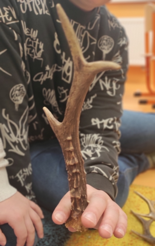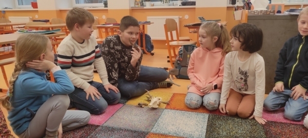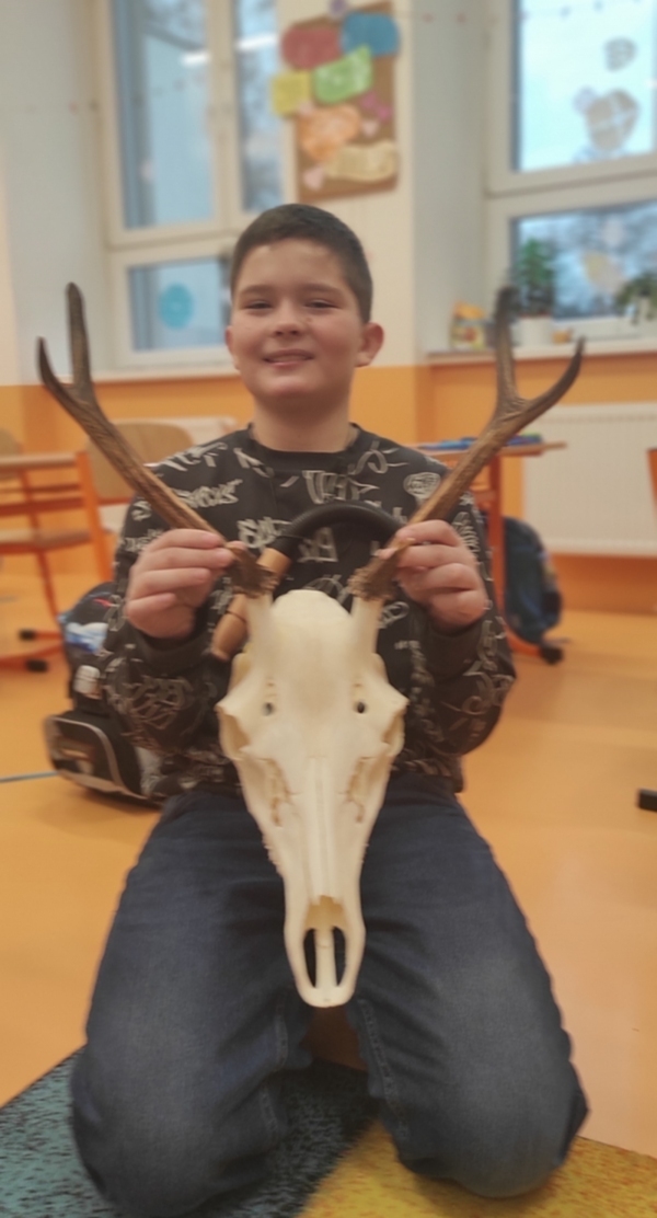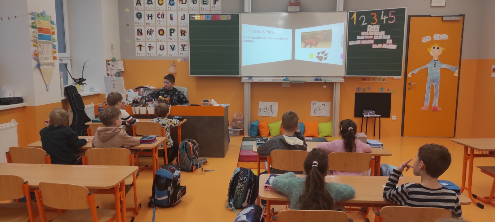 V pondělí jsme se učili s naším spolužákem z páté třídy, s Kubou Havelkou. Připravil si pro nás krásnou a poutavou hodinu o lesních zvířatech. S pomocí jednoduchého kvízu jsme se dozvěděli, jaké stopy zvířata mají, jaké jsou jejich parůžky a také, jak se lákají vábničkou. Nejlegračnější bylo vábení divočáka. To bylo smíchu. Díky Kubovi také víme, co zvířátkům v lese nemáme dávat, jak se rodí mláďátka a co se stane, kdybychom mláďátko v lese pohladili. Bylo to moc hezké a Kubovi děkujeme!