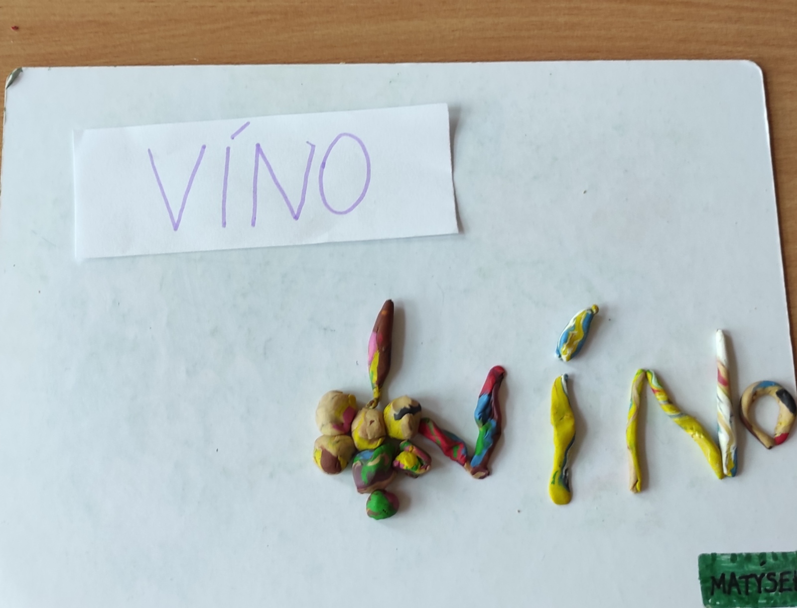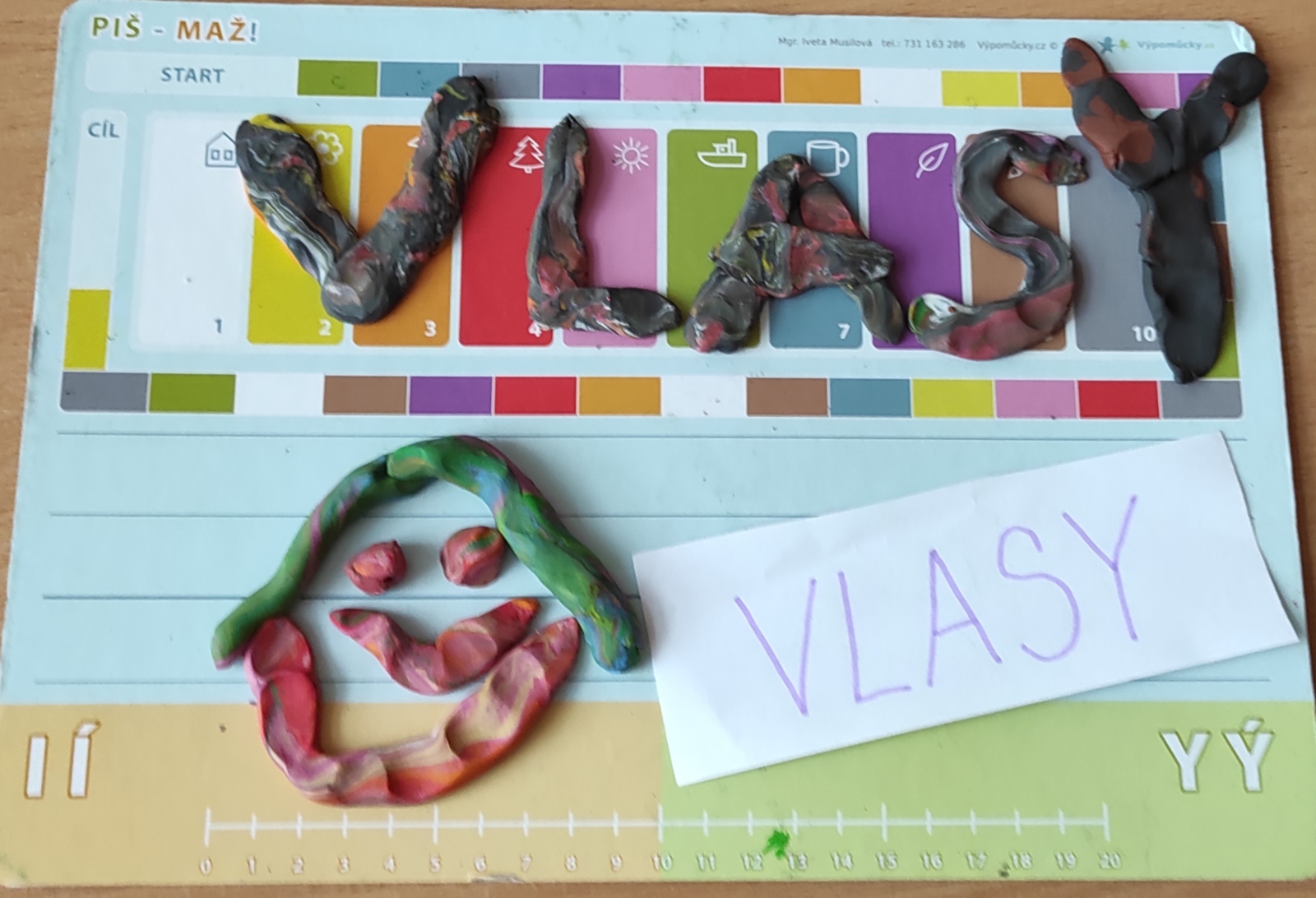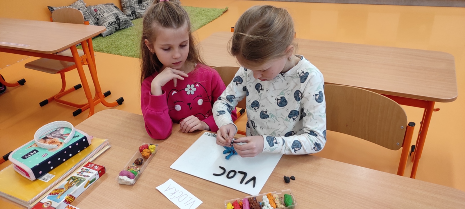 Každé písmeno se učíme prožitkem. Tak tomu bylo i u písmene V. Nejprve příběh, vymýšlení slov na V, pracovní list a naše tradiční slabičná stavba slova, vyhledávání písmene V v textu, skládání puzzle... Čtení slov a vět, krátkých příběhů a opis. A nesmí chybět modelování. Děti ve dvojicích dostaly slovo a úkol zněl: " Vymodeluj a napiš. " Dětská fantazie je úžasná! A spolupráce dětí také. A abychom písmeno V promítli i do jiných předmětů, vznikla ve výtvarné výchově zimní víla. A protože bez zpěvu to nejde, naučili jsme se hrát na perkusní tyče písničku Ovčáci, čtveráci a rytmickou hru se stupnicí C dur.