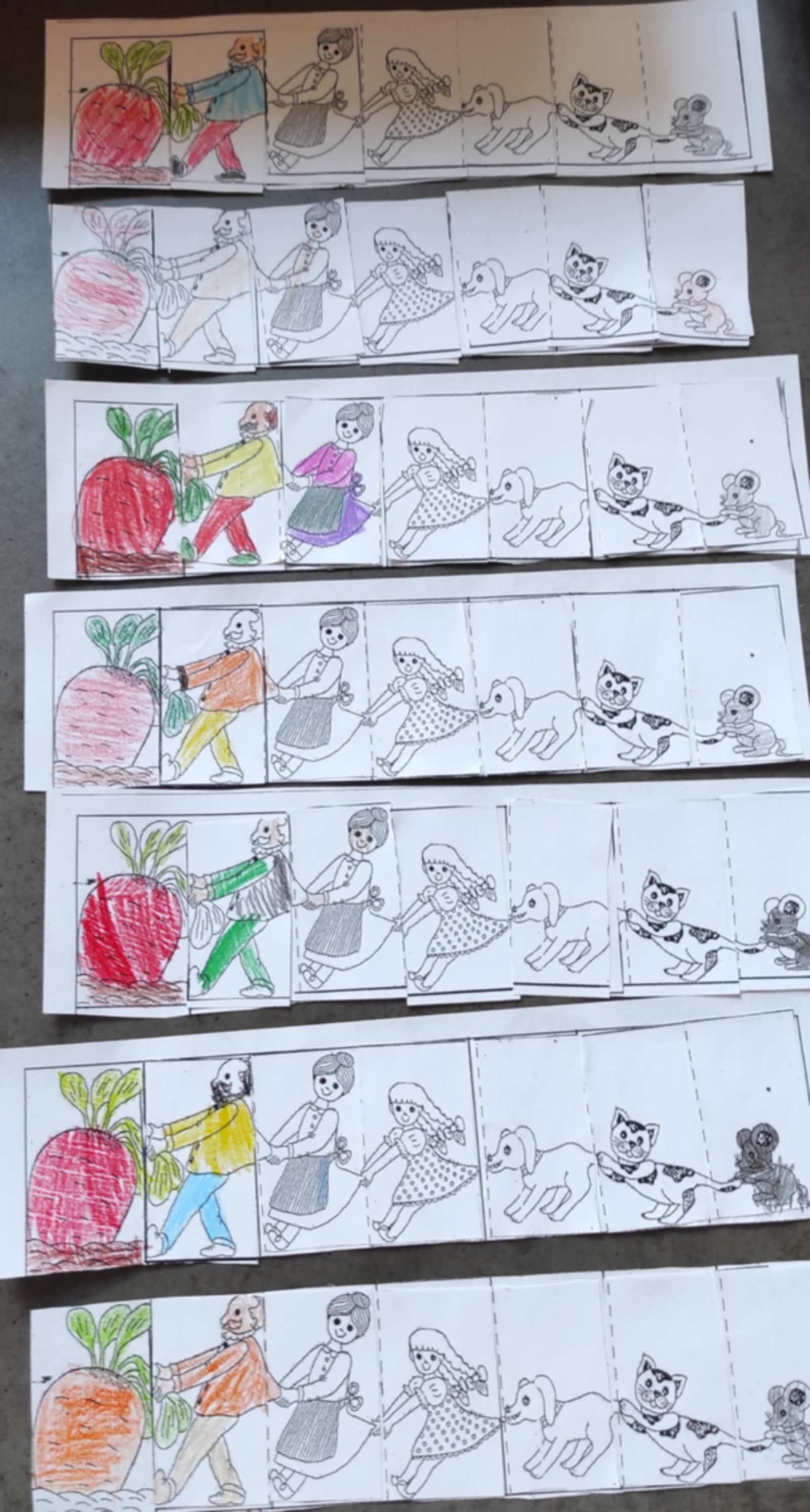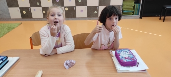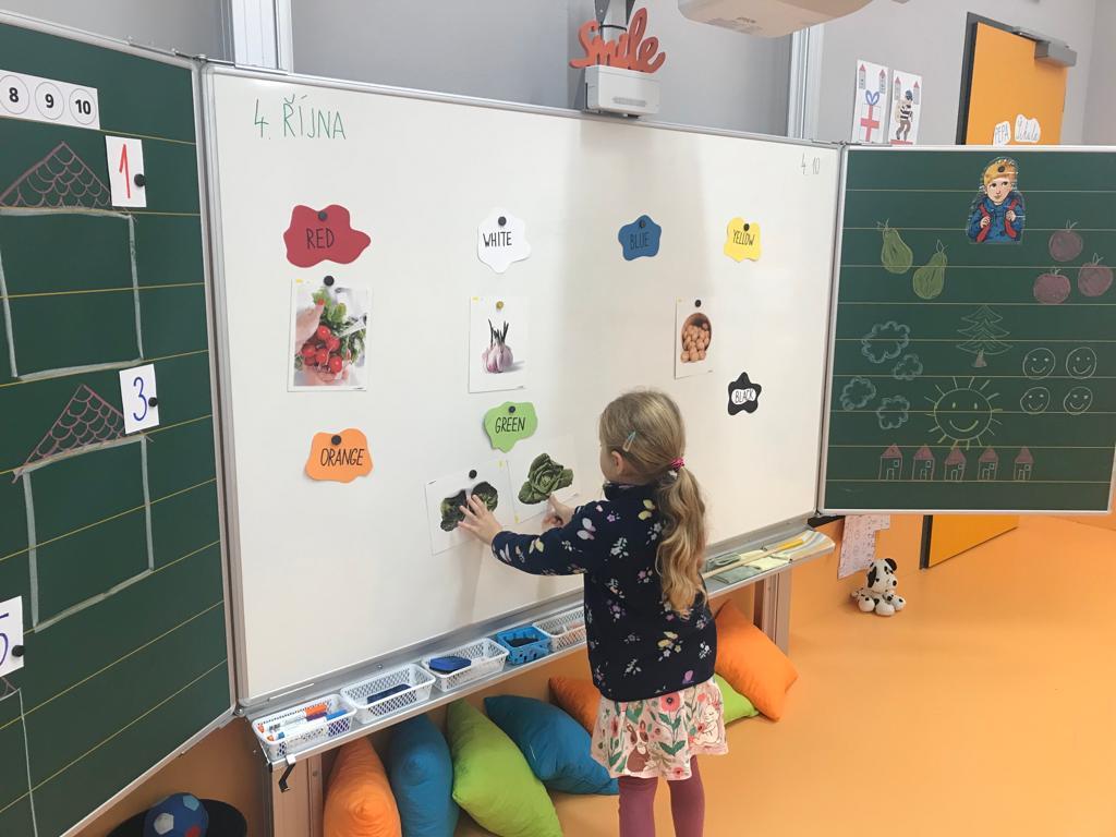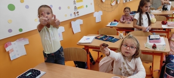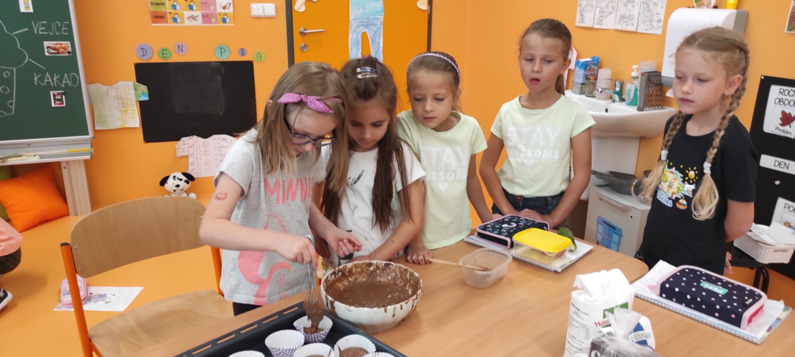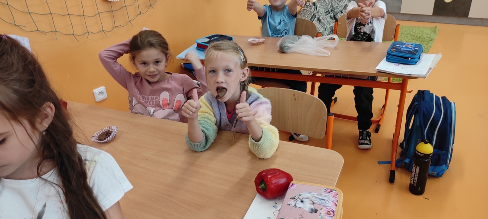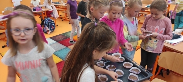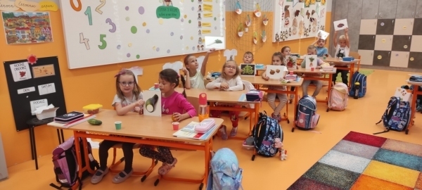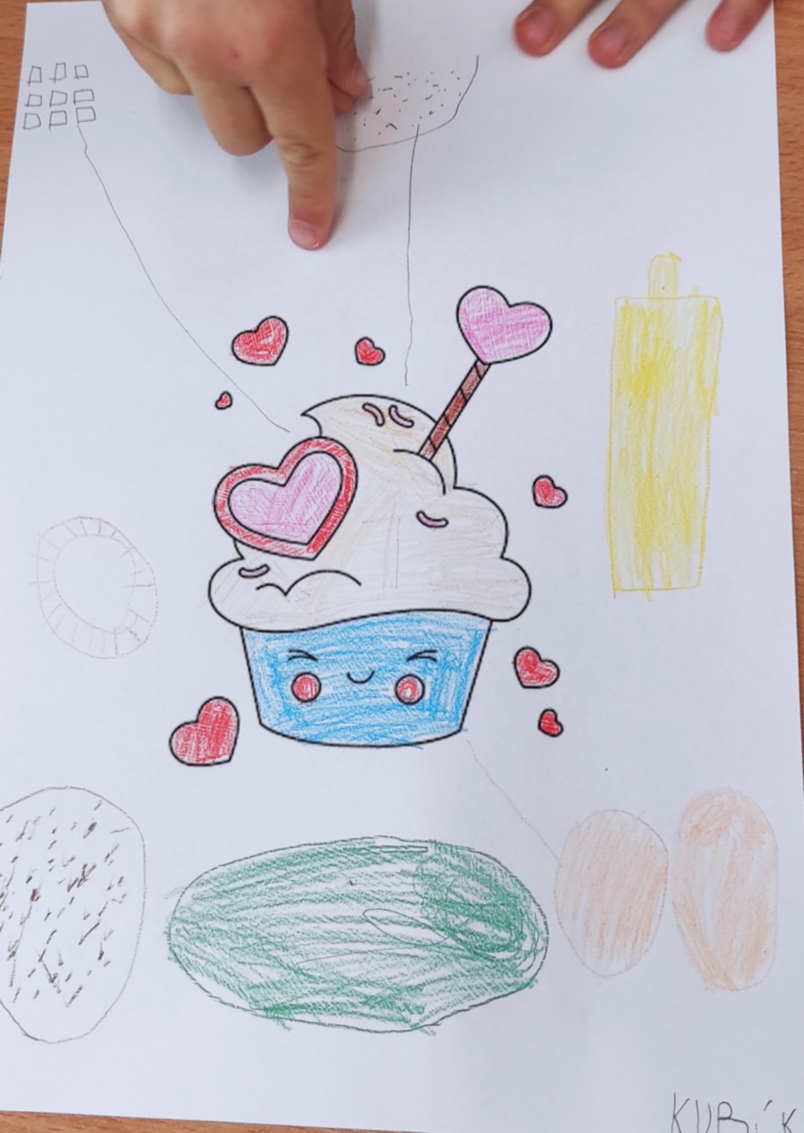 Už to všechno poznáme, pojmenujeme, víme, jak chutná zelenina a přišli jsme na to, že všechna je sladká. Kromě dýně, to jsme nedokázali určit, jakou má vlastně chuť. Takovou nijakou. :) Třídili jsem zeleninu s ovocem, hledali stejnou hlásku na začátku, spojovali slova podle rýmů, určovali jsme počet slabik a znázorňovali je. A protože jsme pilní, nechybělo pečení cuketových muffinů. Napsali jsme si jednoduchý recept a pak se pustili do práce. Dali jsme tam to a ono a ještě tohle a tamto...a zapomněli jsem tam dát to hlavní - cuketu. :) tak jsme ji tam ještě přidali a bylo. Co myslíte, chutnalo nám? No jasně. Mylo to mňam. V psaní jsme za zpěvu písně Šel zahradník kopali jámy, zasadili jsme s pohádkou "O veliké řepě" řepu, a v matematice jsme trénovali prostorovou orientaci. Kdo je první, poslední, před, za, nahoře, dole...V pracovních činnostech se nám moc povedly košíčky se zeleninou.