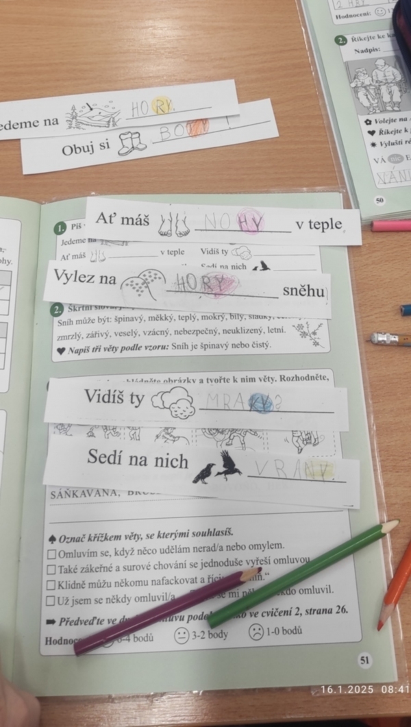 Tento týden jsme se hodně věnovali opakování učiva na pololetní práce a též novému učivu o tvrdých souhláskách a slabikách. Protože jsme pilně pracovali, za odměnu jsme mohli využít tablety v matematice. Vyrobili jsme si pomůcku k učivu a tak vznikl při kolektivní práci HYCHYKYRÝSEK. Co na něj říkáte, líbí se Vám?