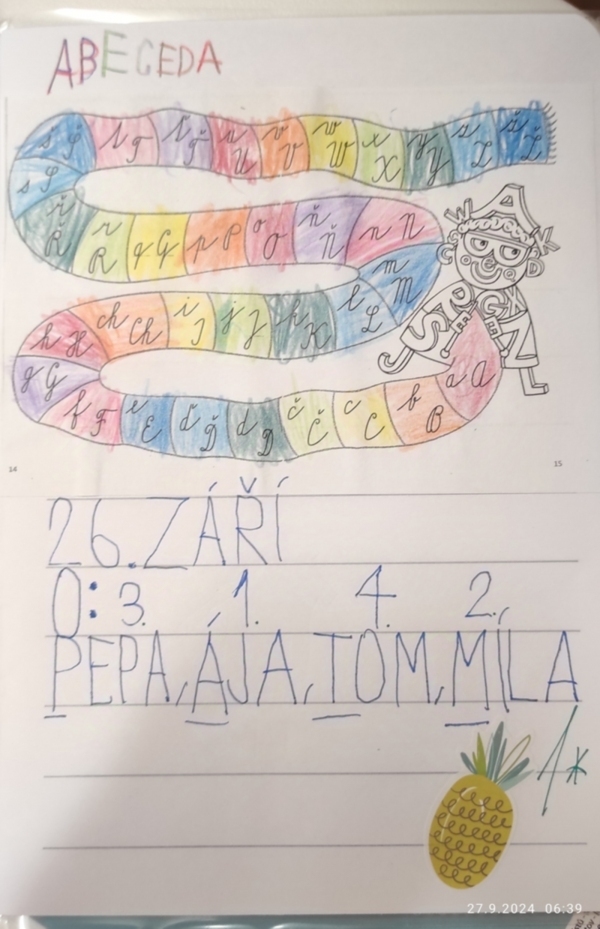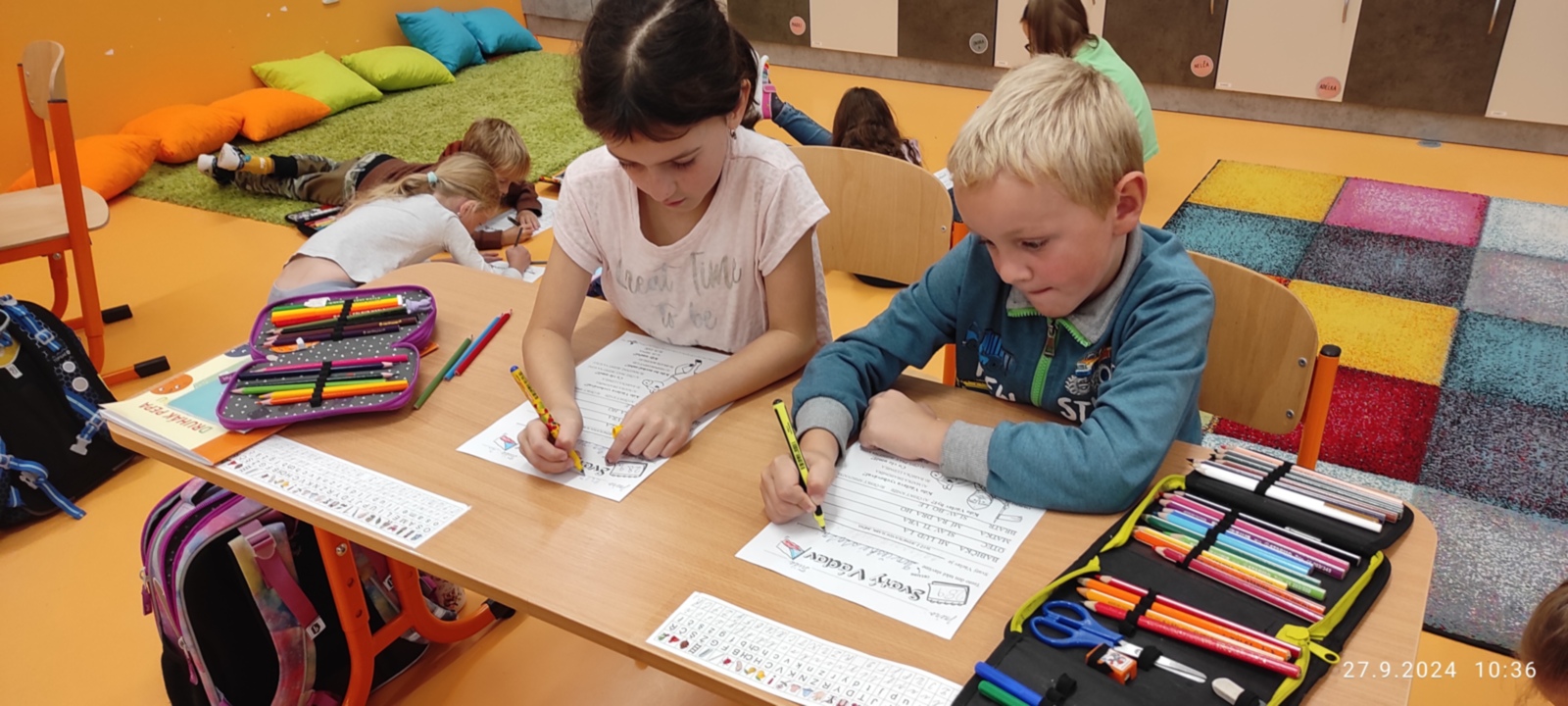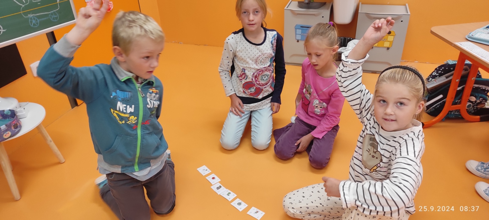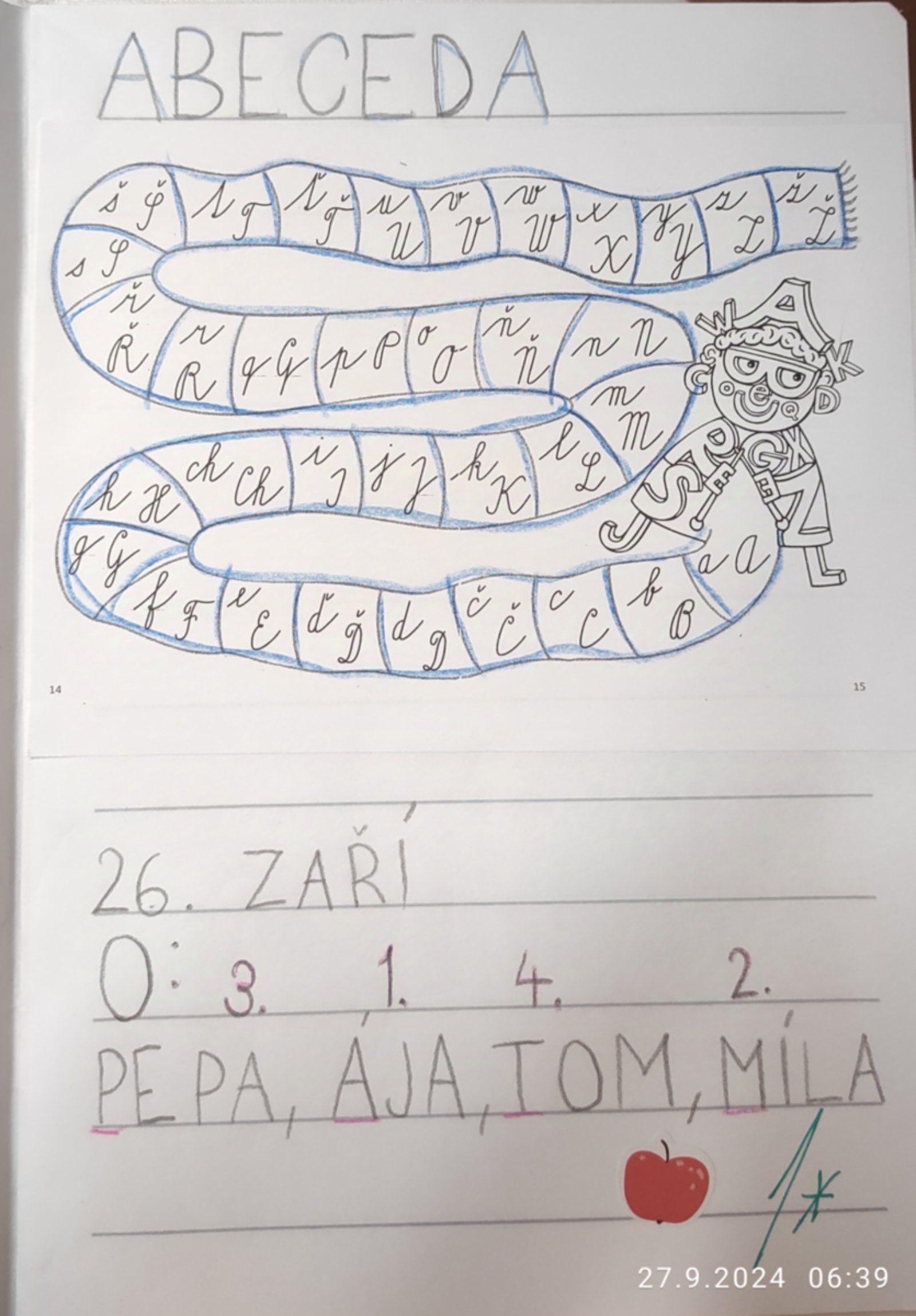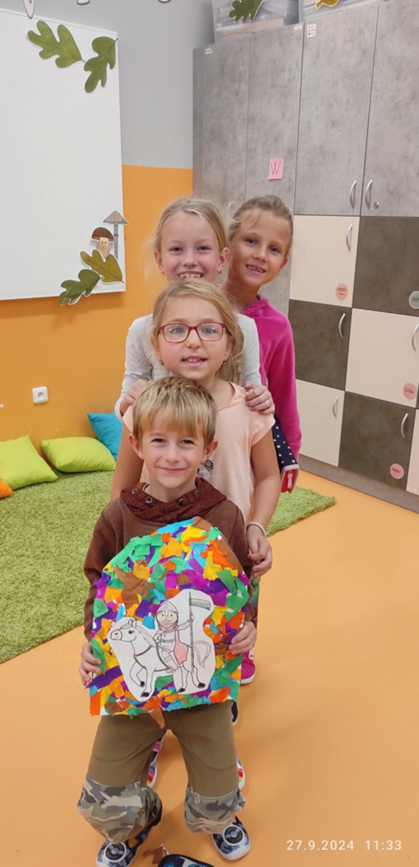 Abecedu pořád procvičujeme, i když jsme z ní dnes všichni dostali 1. Učíme se řadit slova podle abecedy a píšeme opis slov. Nechybí písanka a nové písmeno malé psací H, které si vždy zafixujeme pomocí plastelíny. A protože si povídáme i o významných dnech, dnes jsme se dozvěděli vše potřebné o Sv. Václavovi a Dni české státnosti. Příběh jsme si přečetli a shlédli. Následovalo opakování v PL. Vyrobit vitráž se Sv. Václavem už bylo za odměnu.