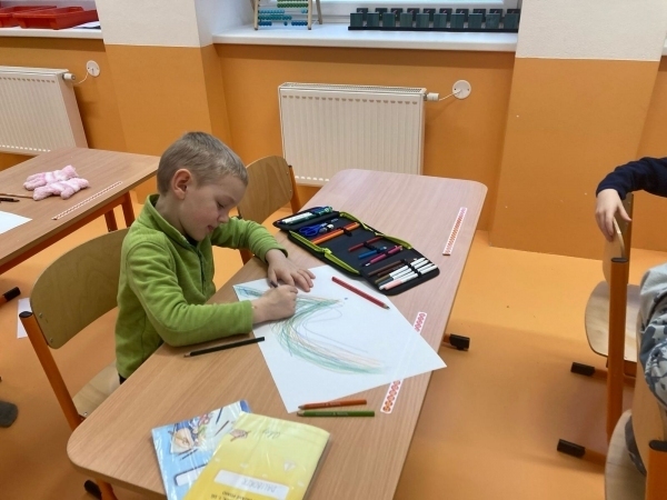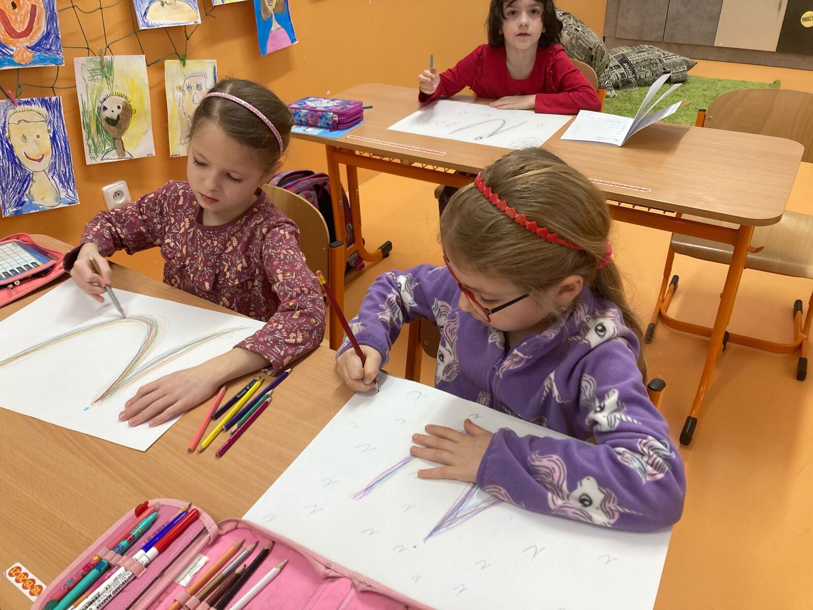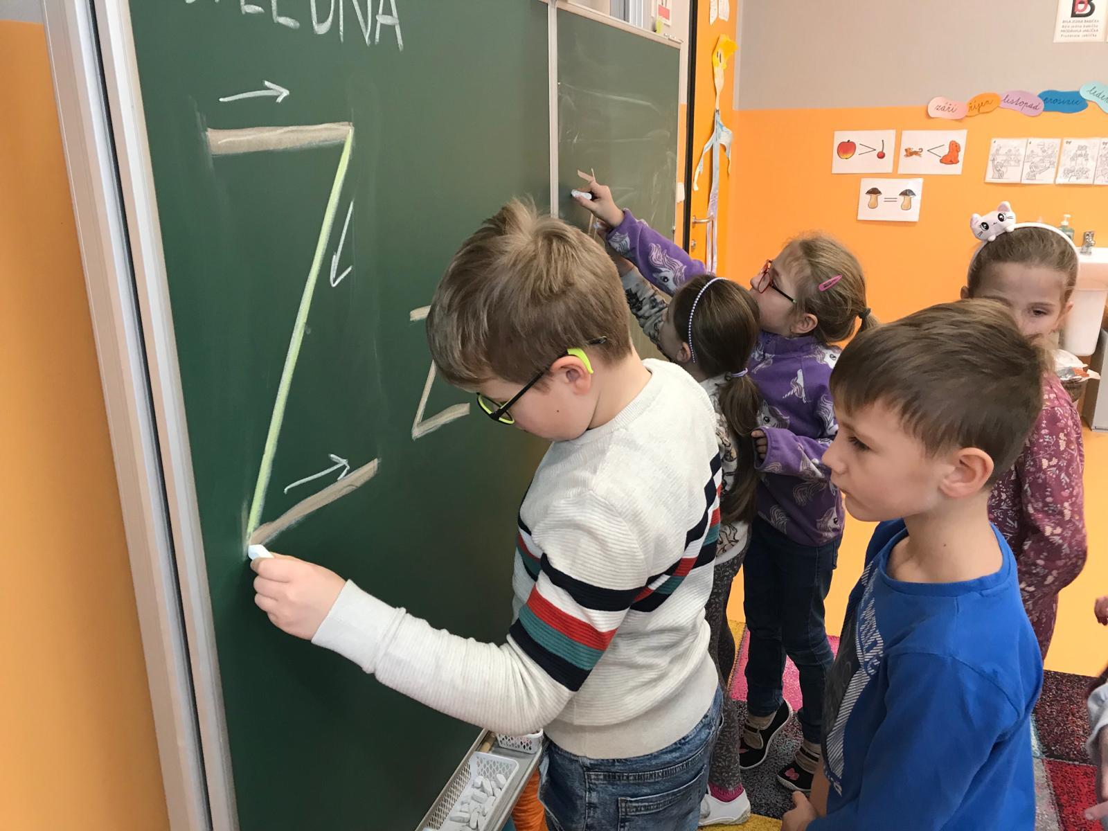 U prvňáčků to tento týden žije. Mají totiž hned několik paní učitelek. To jen tak někdo nemá. I bez té své paní (m)učitelky vše zvládají a jde jim to hladce. Písmenka jim do hlaviček skáčou rychlostí blesku, a už už spěchají na psací písmo. Zatím tedy jen malé i, ale už brzy přibudou další. Učí se i zábavně, třeba tady: