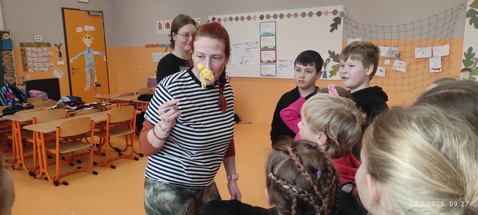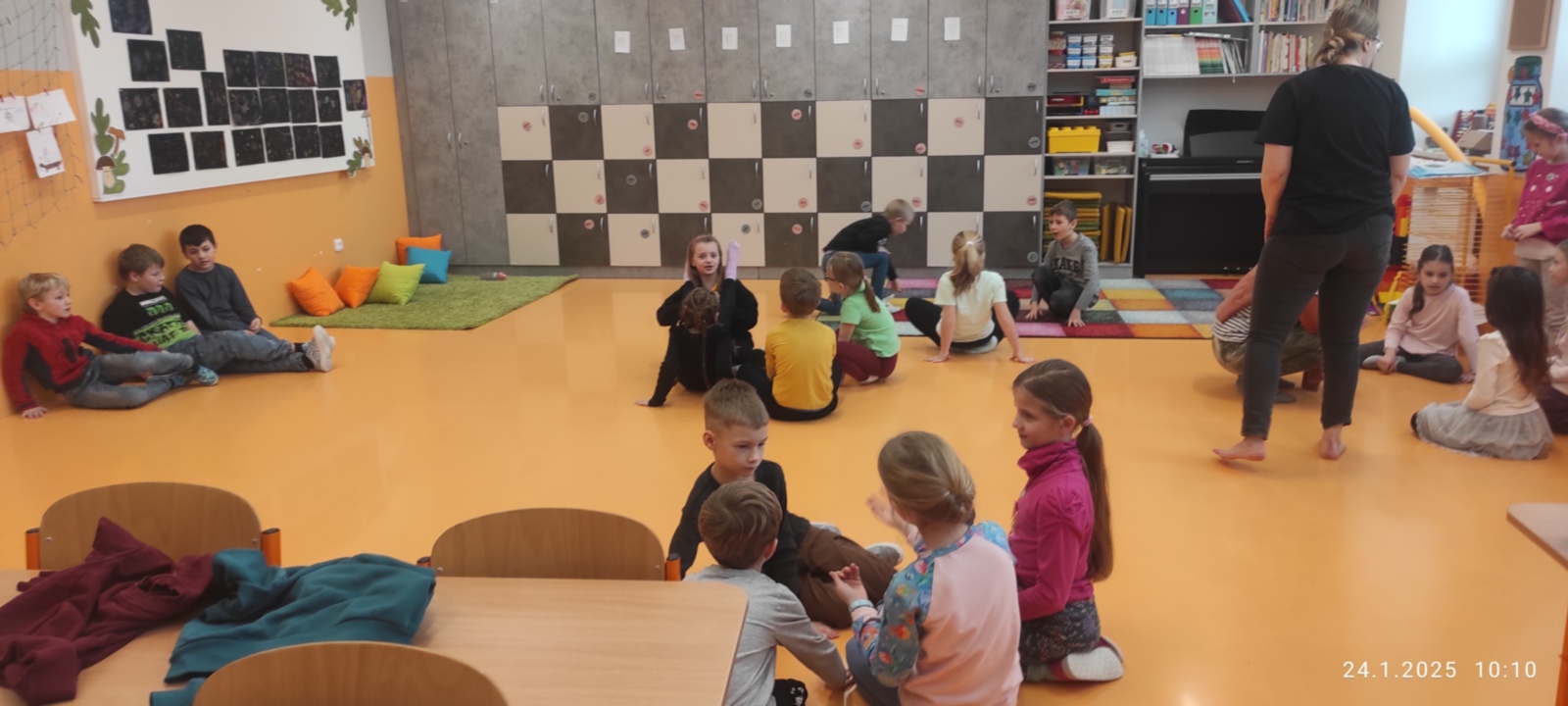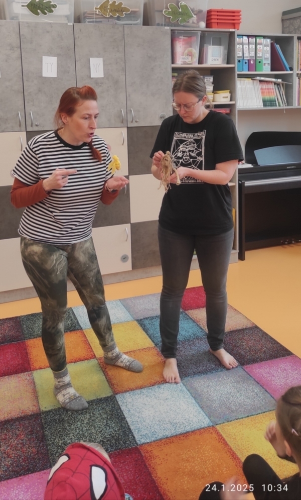 Jak už říká název článku, ocitli jsme se v příběhu o Karlíčkovi- dřevěném panáčkovi a vose. Tomu ale předcházelo povídání o pocitech a vztazích, abychom příběhu nejen porozuměli, ale dokázali jej dokončit a zdramatizovat. Součástí práce byly zábavné hry.