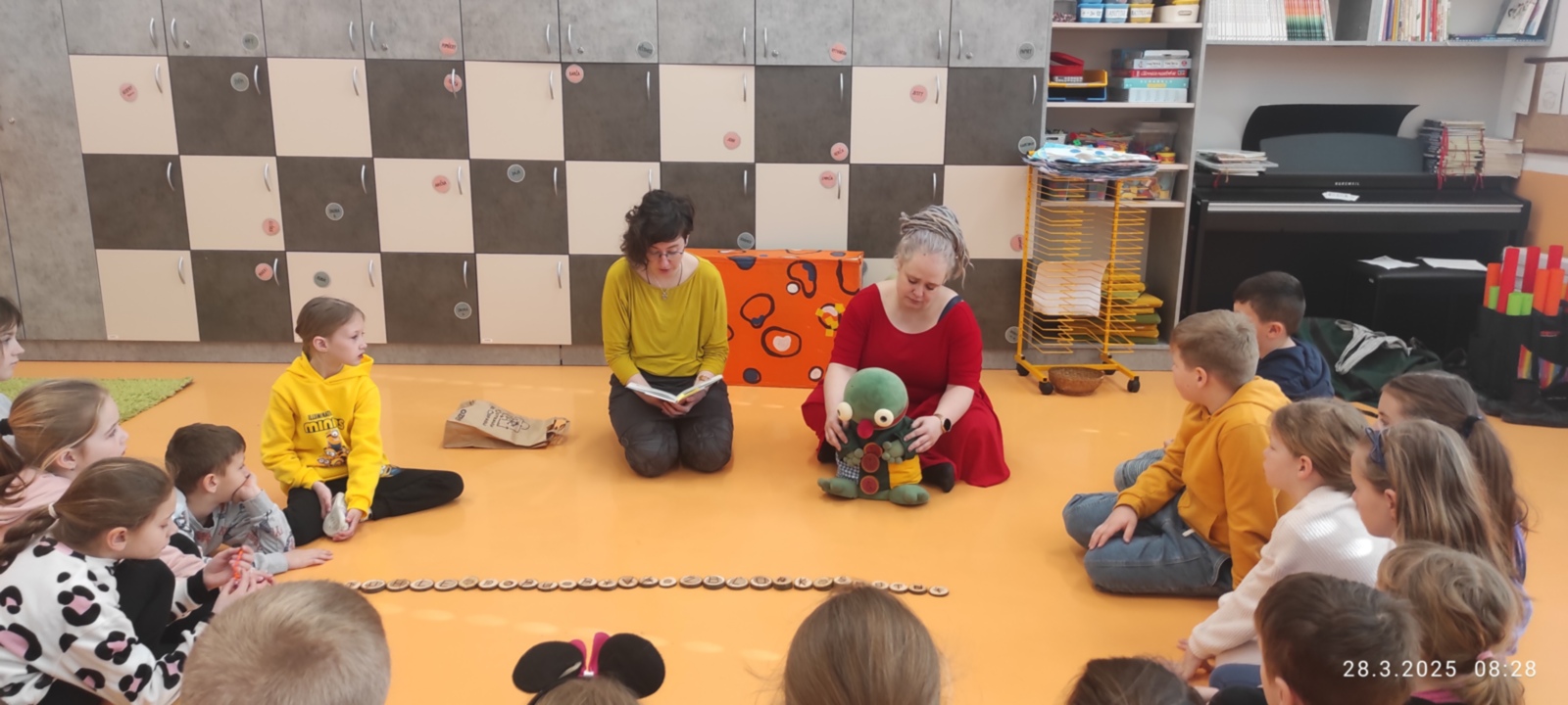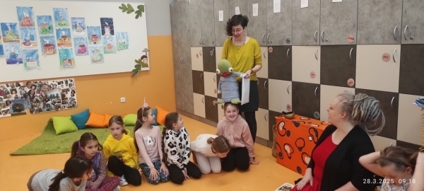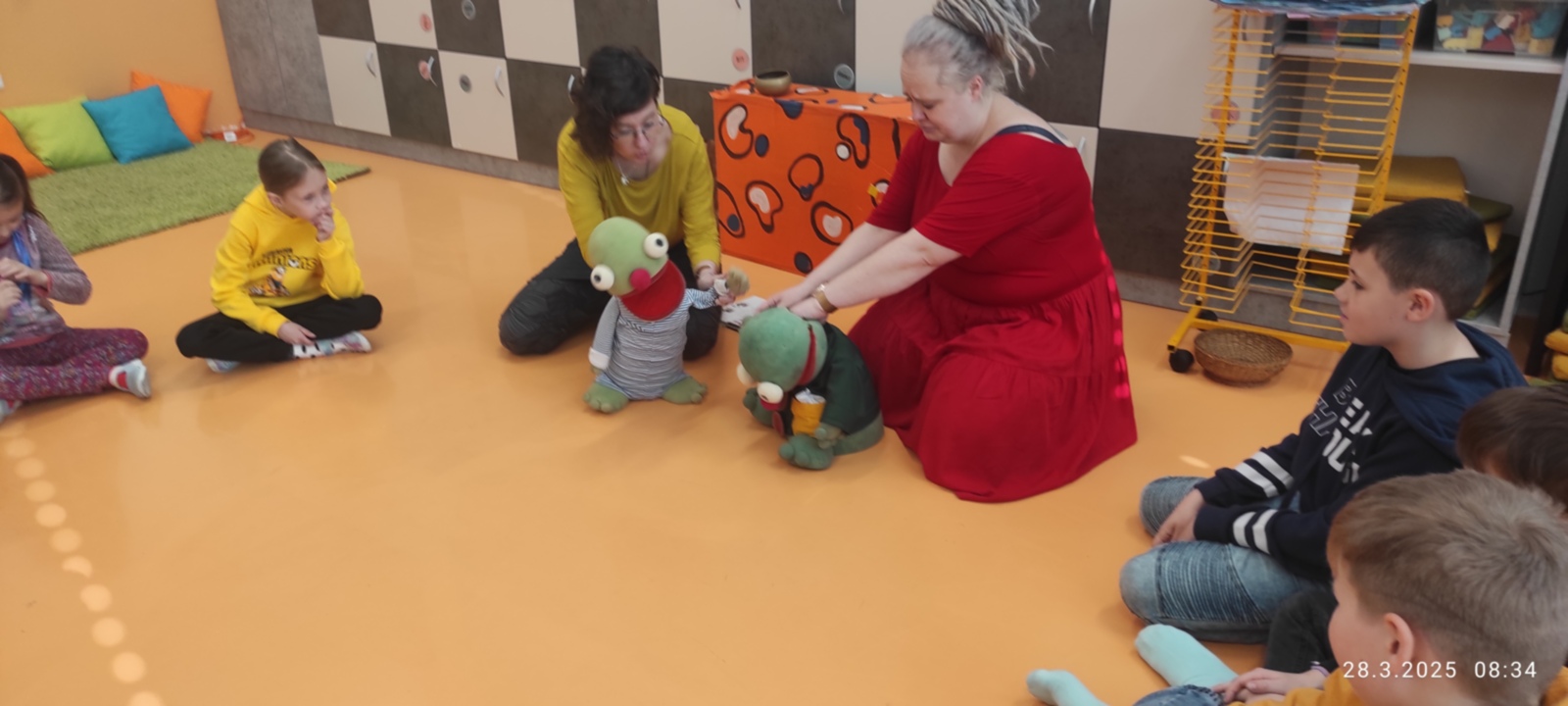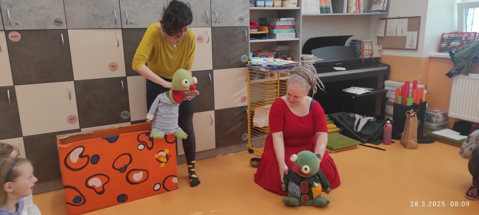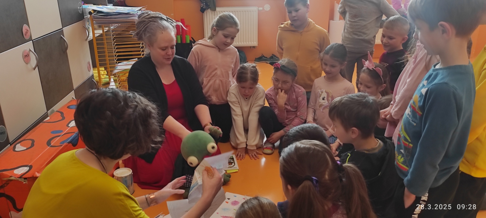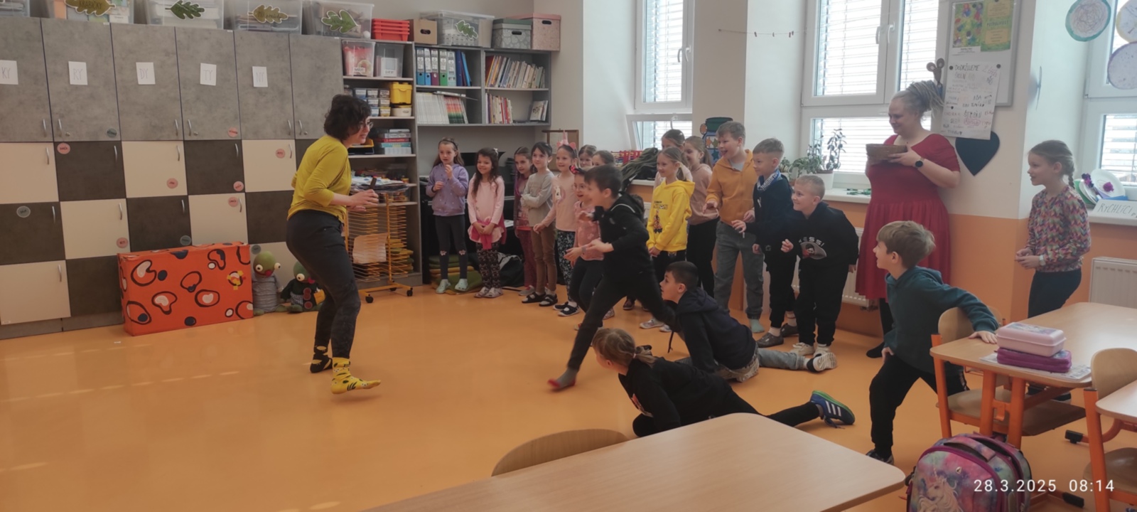 Dnes naši třídu navštívila dvojice žabáků Kvak a Žbluňk. Dramadílny máme pravidelně, tentokrát u nás byly skvělé lektorky s dílnou zaměřenou na sebepoznání a rozdávání radosti druhým…třeba napsáním dopisu. Žbluňk byl smutný a děti ho měly rozveselit. Našly spoustu způsobů, ale nakonec zvolily psaní dopisů. Ještě štěstí, že jsme si hodně psaní dopisů a adresy procvičili ve výuce.