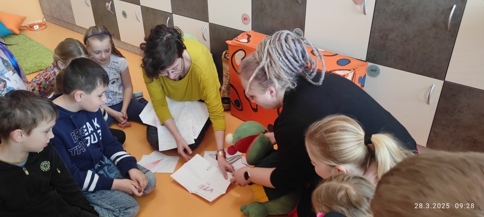 Díky rozličným úkolům a aktivitám dramatické výchovy se děti seznámily s tím, co vše se děje kolem toho, když někomu píšou a posílají dopis nebo pohled. Celá lekce byla protkána hrami a doprovázena smíchem.