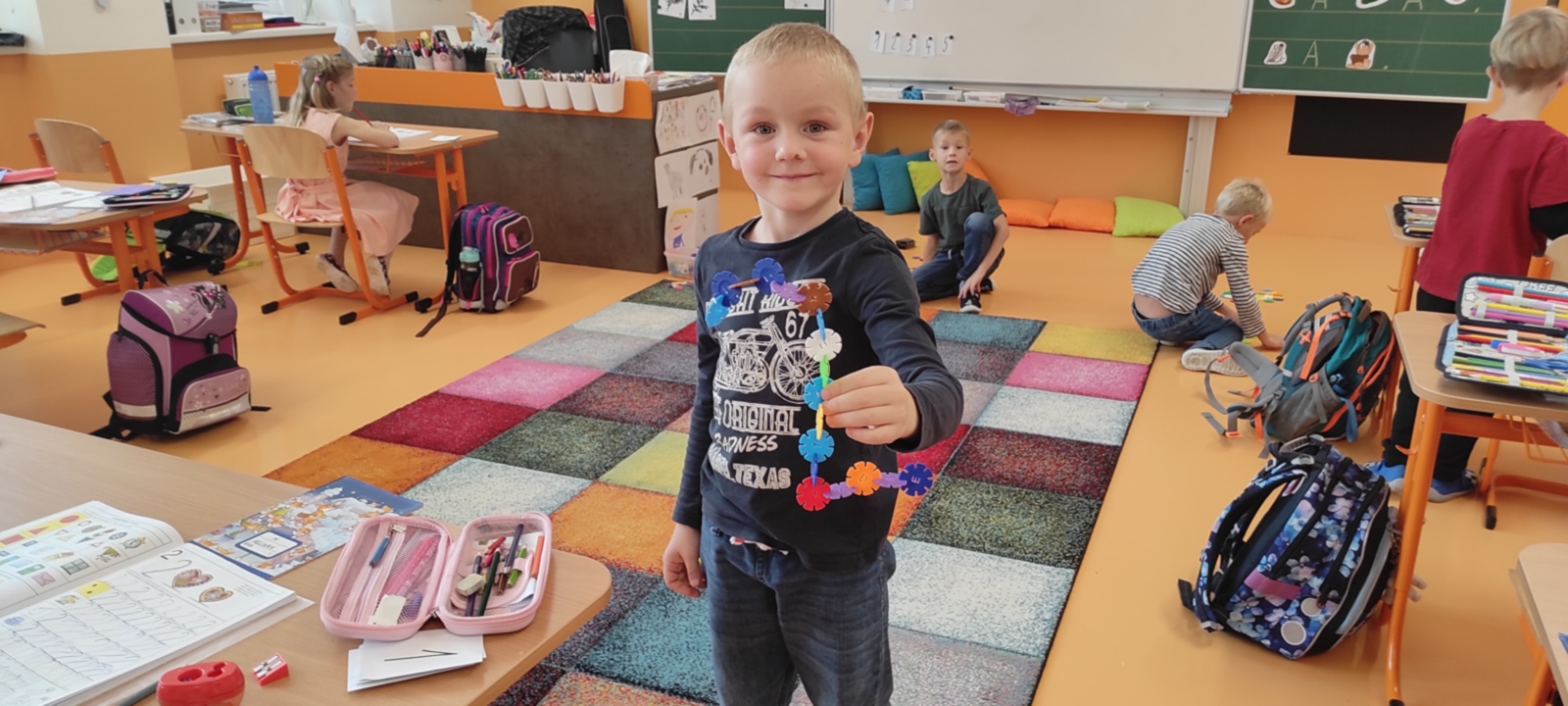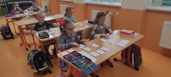 Každý den děláme pokroky. Nejen v poznávání nových písmen, v začátcích čtení, ale i v prostředí matematiky, prvouky a ve výchovách. Nespěcháme, protože chceme vše umět dobře. Důležité je pro nás učení se všemi smysly. A tak pro vyvozování písmen kreslíme, malujeme, pečeme, stavíme a hledáme, posloucháme sluchem a využíváme k tomu všelico. Jen se koukněte, jak nám to jde.