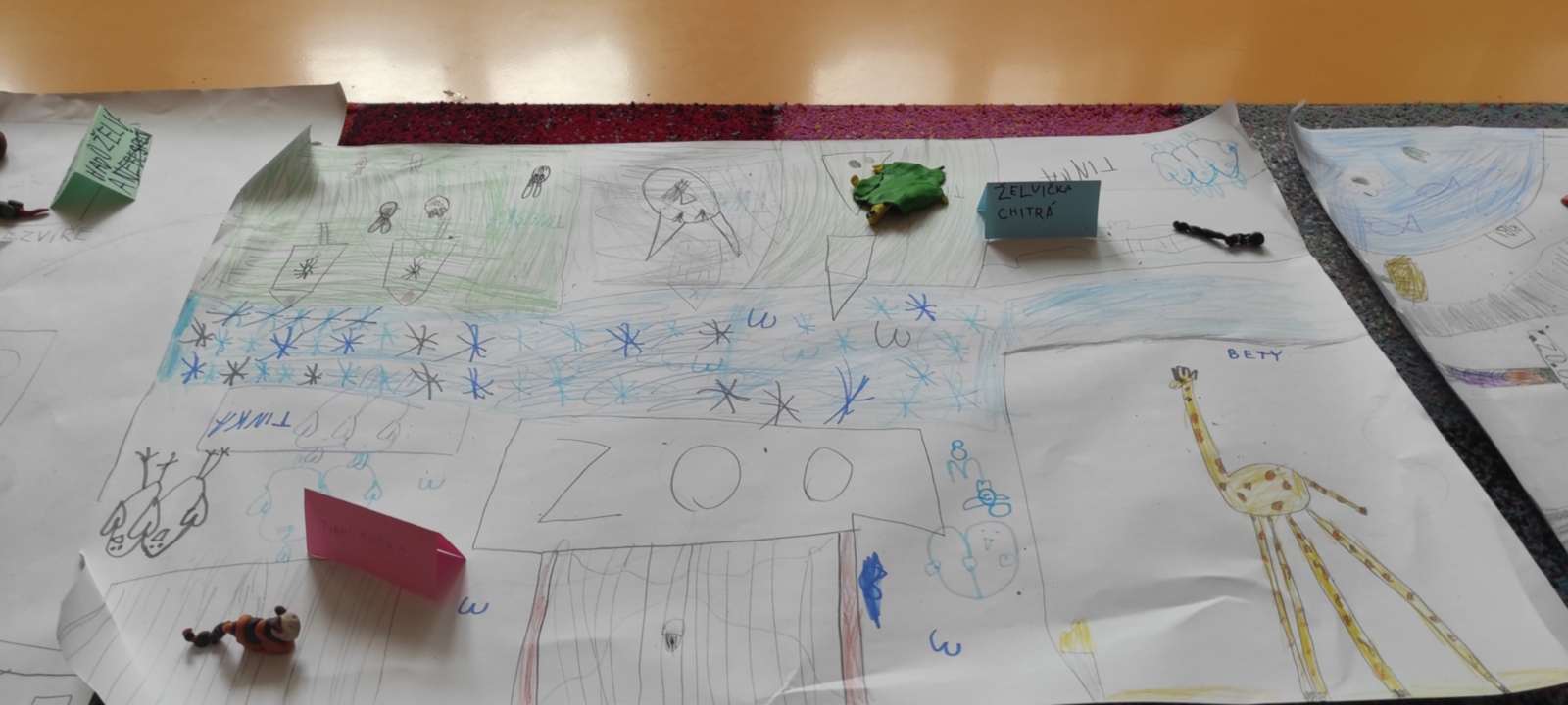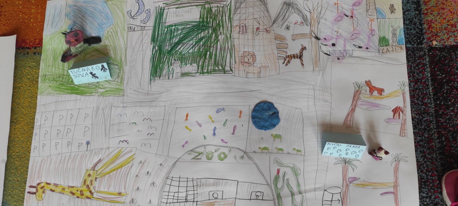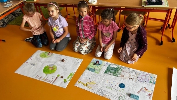 O hospodářských zvířatech už toho víme hodně. Tentokrát jsme se tedy zaměřili na zvířata ze ZOO. S Pepou v učebnici jsme jeli do Prahy na výlet a poznali jsme hlavní památky, ale i ZOO. Co si takovou zoologickou zahradu vyrobit? A ne ledajakou, je v ní pavilon fantastických zvířat. Plastelínu do ruky a tvoříme. Ještě ale umět pojmenovat zvířata, poznat zvuky, podívat se do ZOO ve videu... A na závěr? Výstava. Navštívili ji nejen učitelé, ale i páťáci. Děkujeme, že jste přišli.