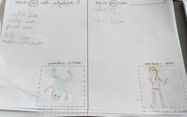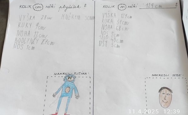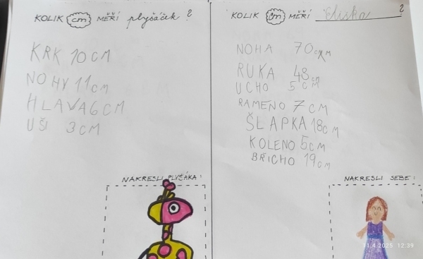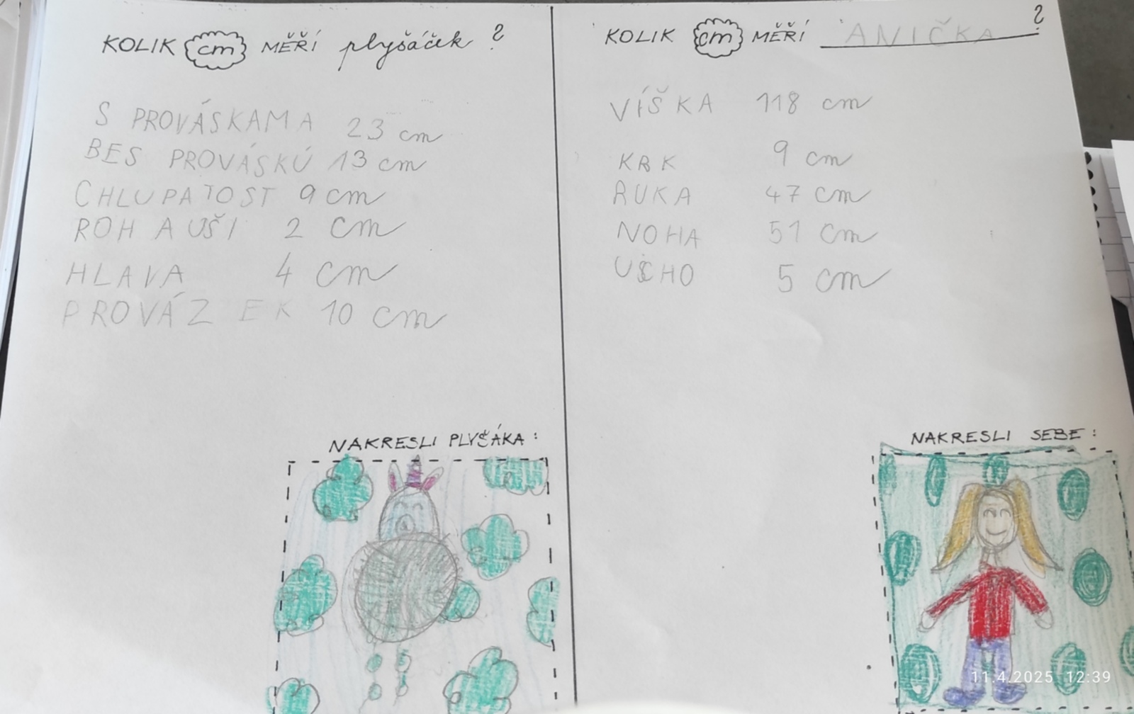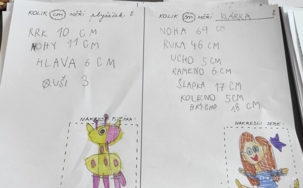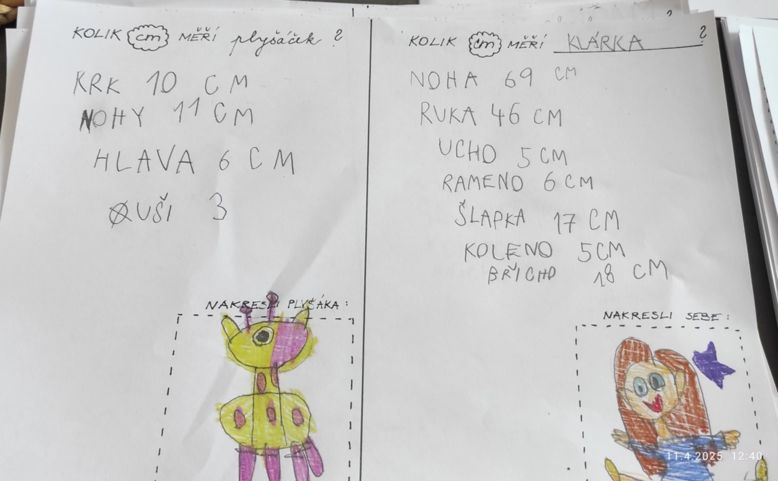 Geometrie se dá dělat všelijak. Dnes jsme si ji náramně užili s plyšáky a metrem. Nechybělo využití pravítek, zkoumavé otázky a legrace. Do PL jsme vše zaznamenávali a kreslili.