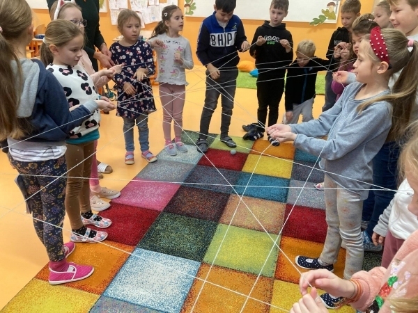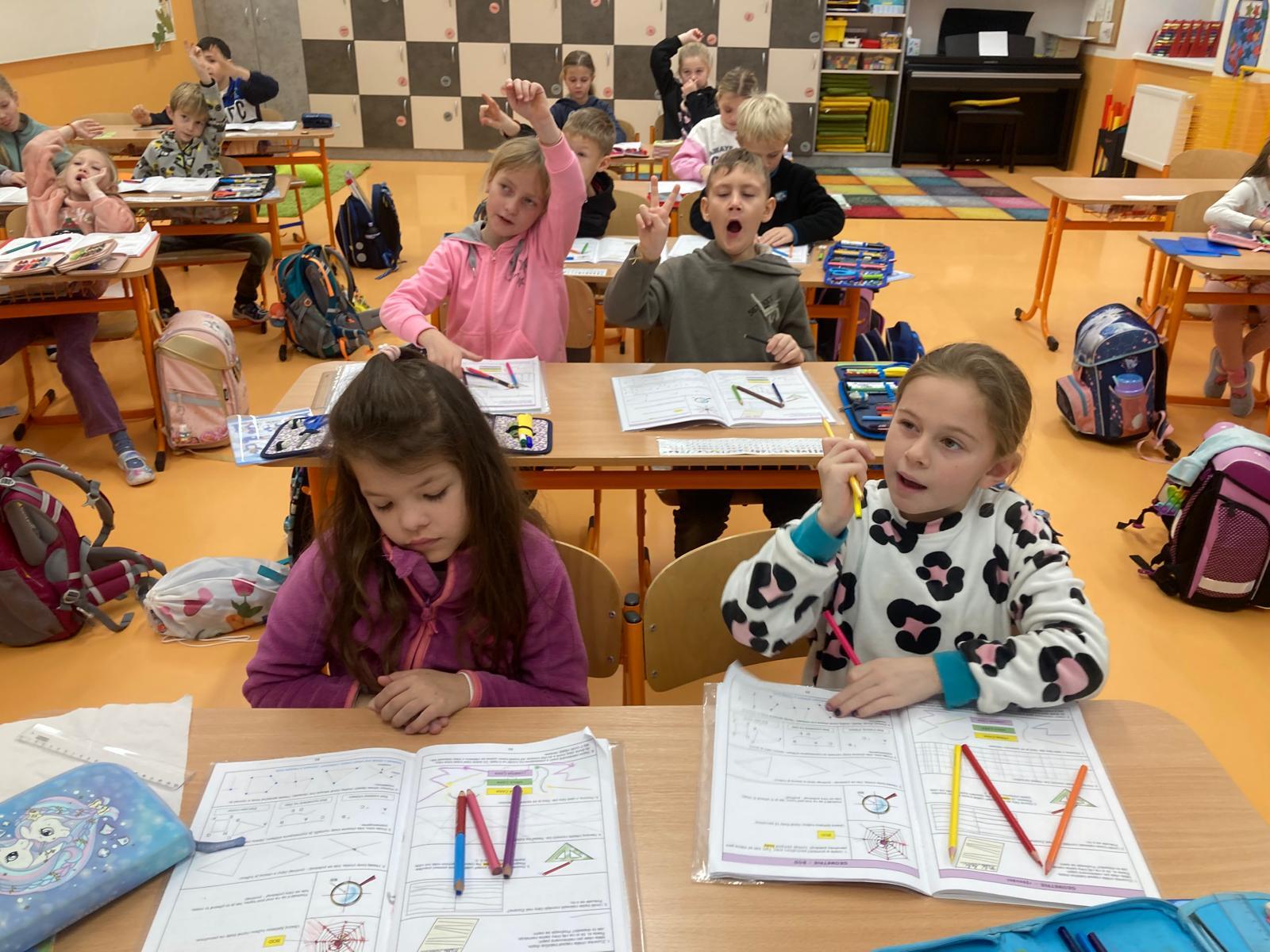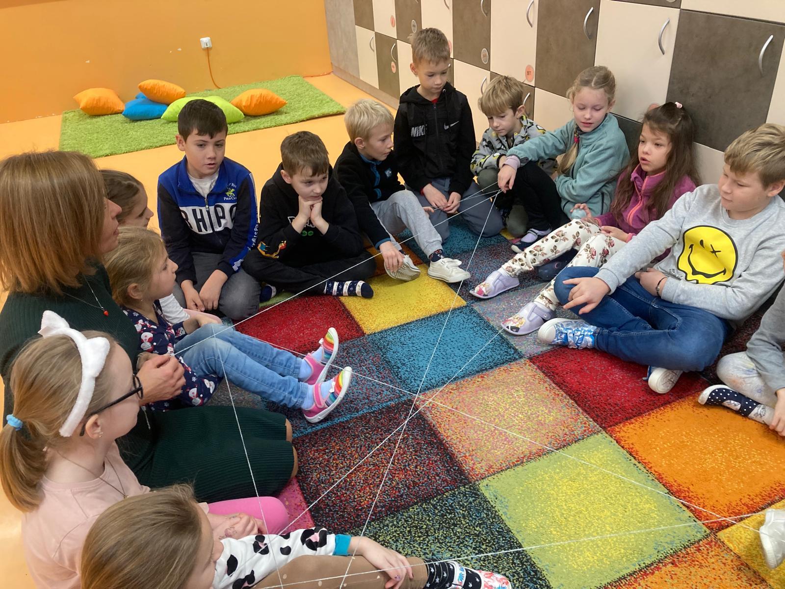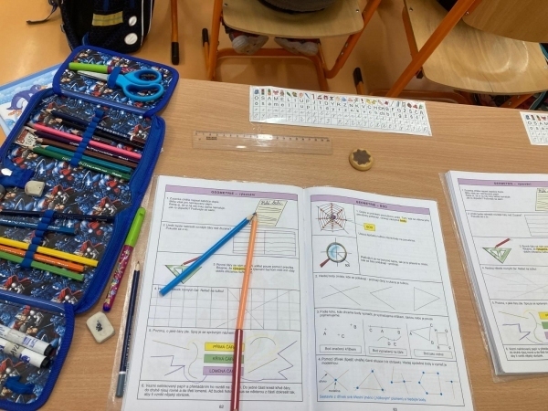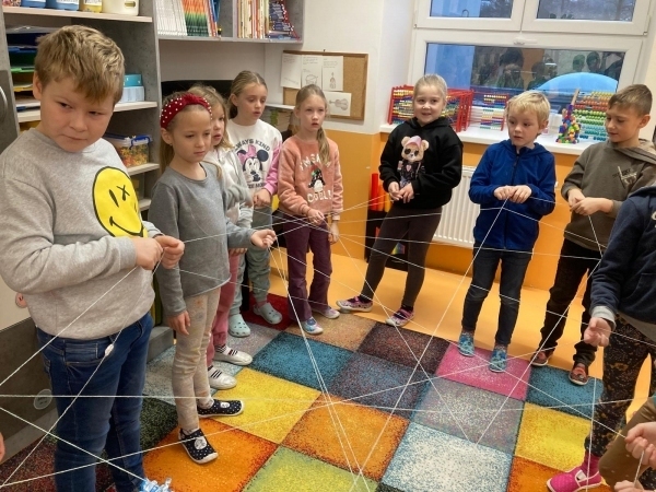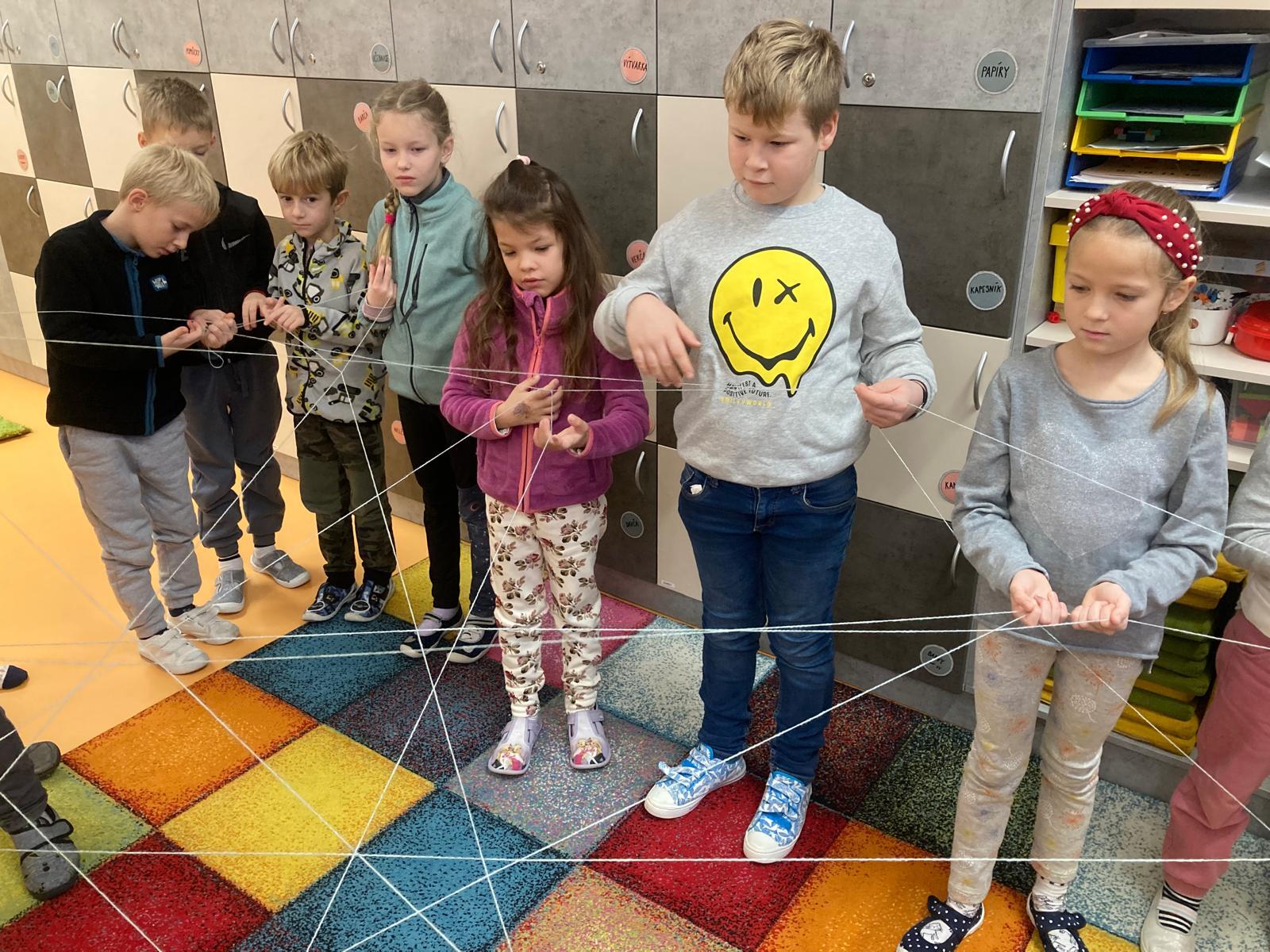 V geometrii jsme si udělali pavučinu přátelství, abychom si navodili učivo geometrie a to BOD. Pavučina nám krásně ukázala, kde se naše přímky protínají a děti viděly BODY.