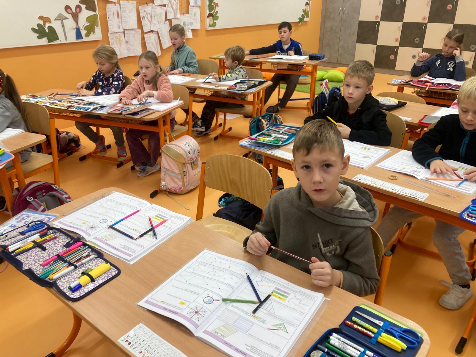 Nové učivo je potřeba prohloubit, následovala tedy práce s pastelkami a tvoření různých tvarů, písmen, číslic a hledání BODŮ.