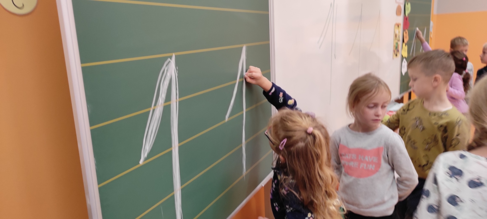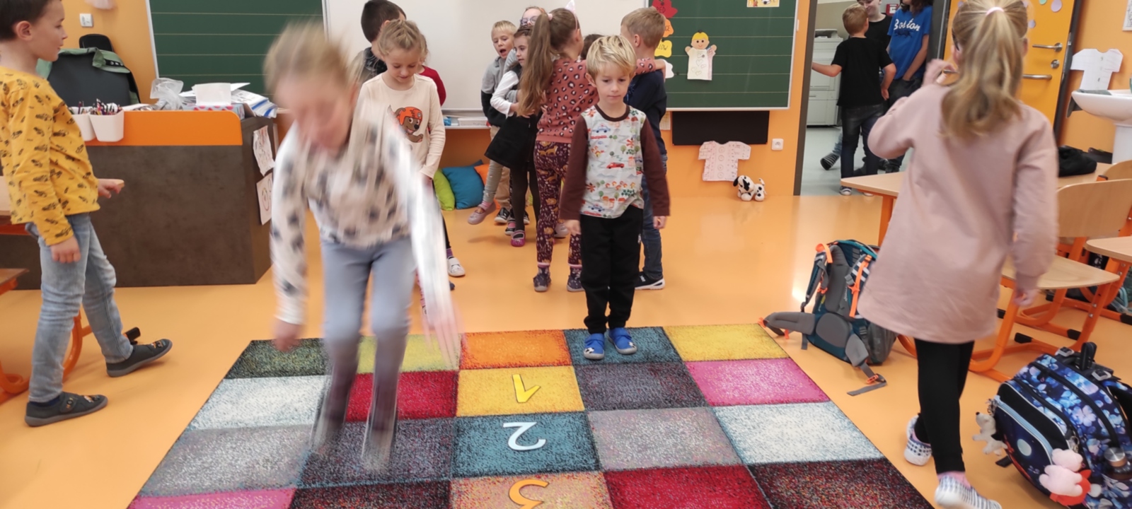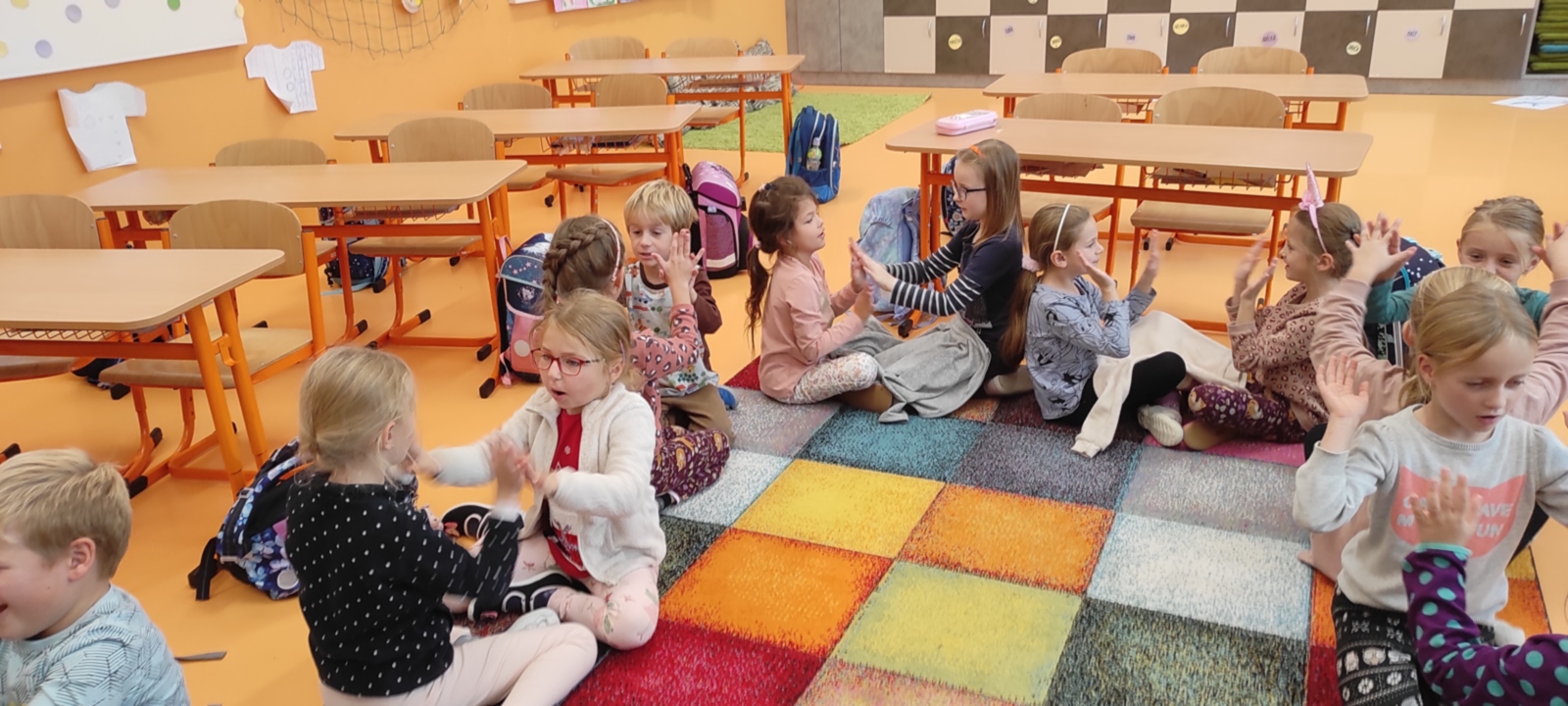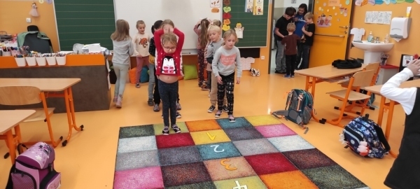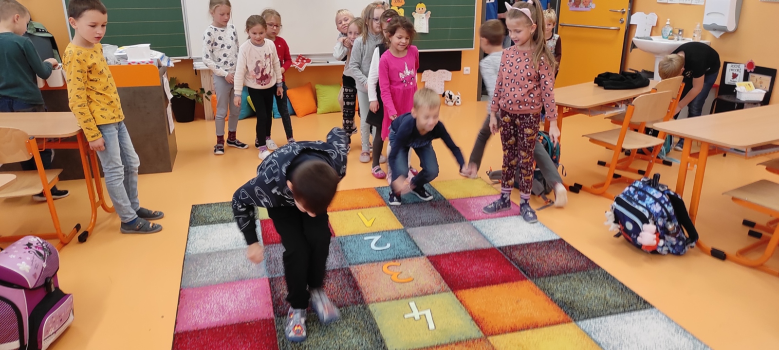 Pilní prvňáčci toho zvládají víc než dost. V hodinách českého jazyka už zvládli dvě písmenka a těší se na čtení. Určování počtu slabik a slabičnou stavbu už umí bez pomoci, a počáteční a konečná hláska je pro ně hračka. Pomocí "marťanštiny" si dáváme hádanky. Procvičujeme ruce a hrajeme hry. V matematice se pomalu dostáváme od pochopení množství, porovnávání počtu a prostorové orientace k číslicím a číselné ose. Jednička je teď všude. I v sešitech a na Bakalářích. A na číselné ose jsme si vyzkoušeli i skok do dálky. Ve výtvarné výchově jsme při tvoření deštníků počítali kapky. V hudební výchově jsme při zpěvu písní Prší prší a Travička zelená využili naše tělíčka k rytmizaci. Tleskání do rytmu do dlaní kamaráda, pohlazení po tvářích či ťukání prstíky na záda...to byla paráda!