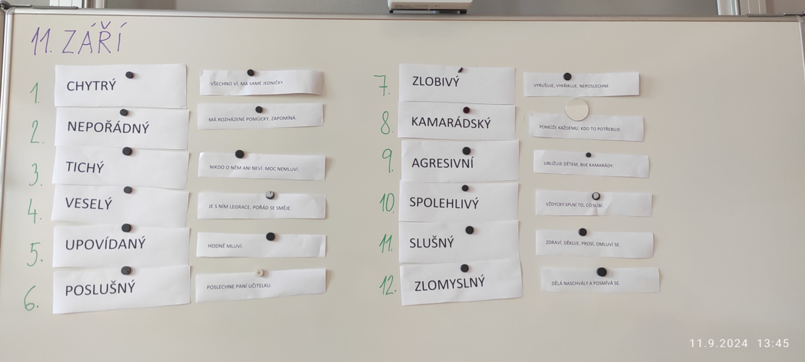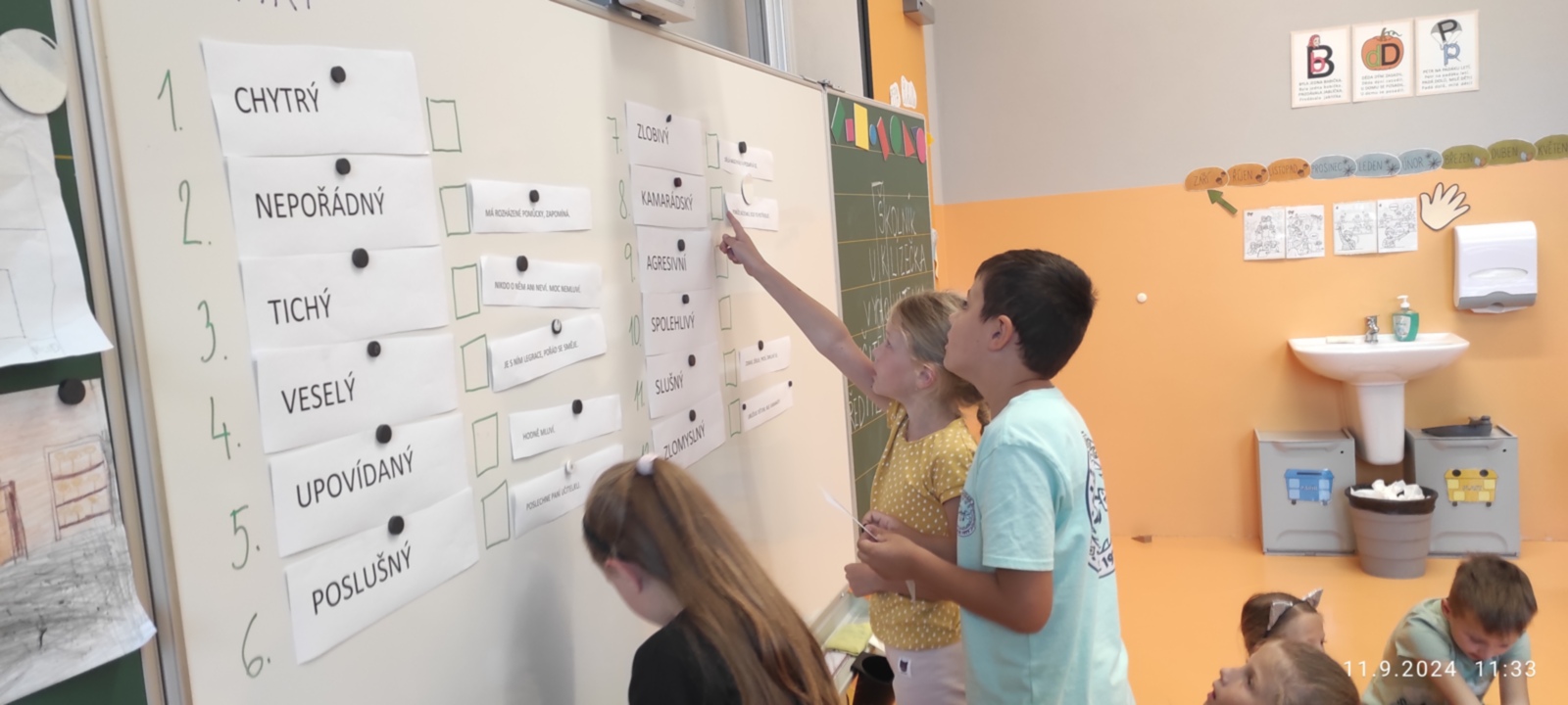 Třídili jsme vlastnosti a popisovali je. A tvořili jsme slova z písmen Š, K, O, L, A.