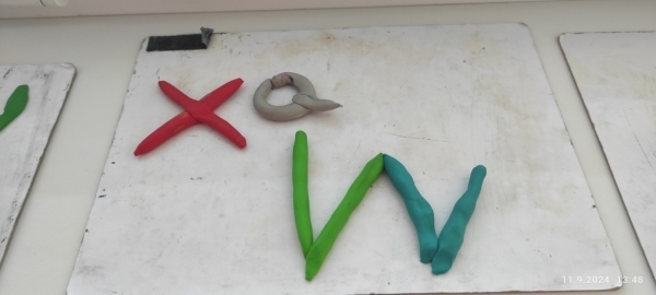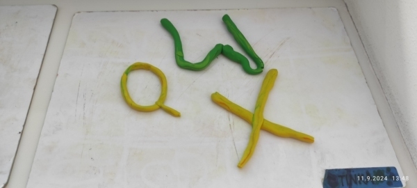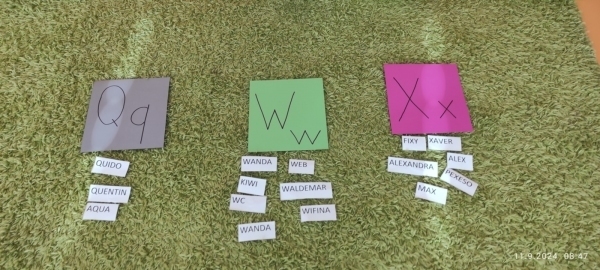 Nová písmena Q, W, X nám naskočila rychle.Pismena jsme nejen četli, vymodelovali, třídili, ale i postřehovali.