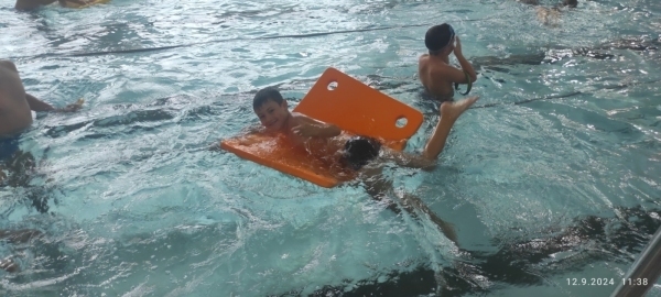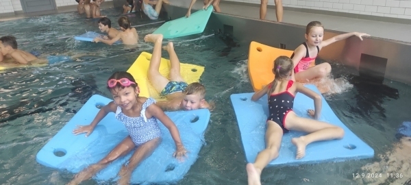 Nechyběla další lekce plavání, kde se stále zdokonalujeme a hlavně nás to baví.