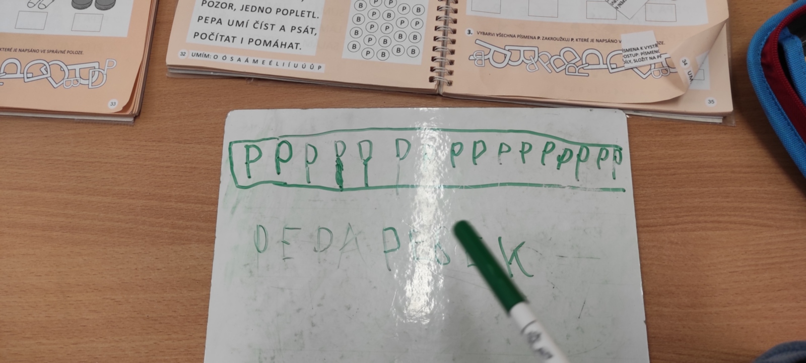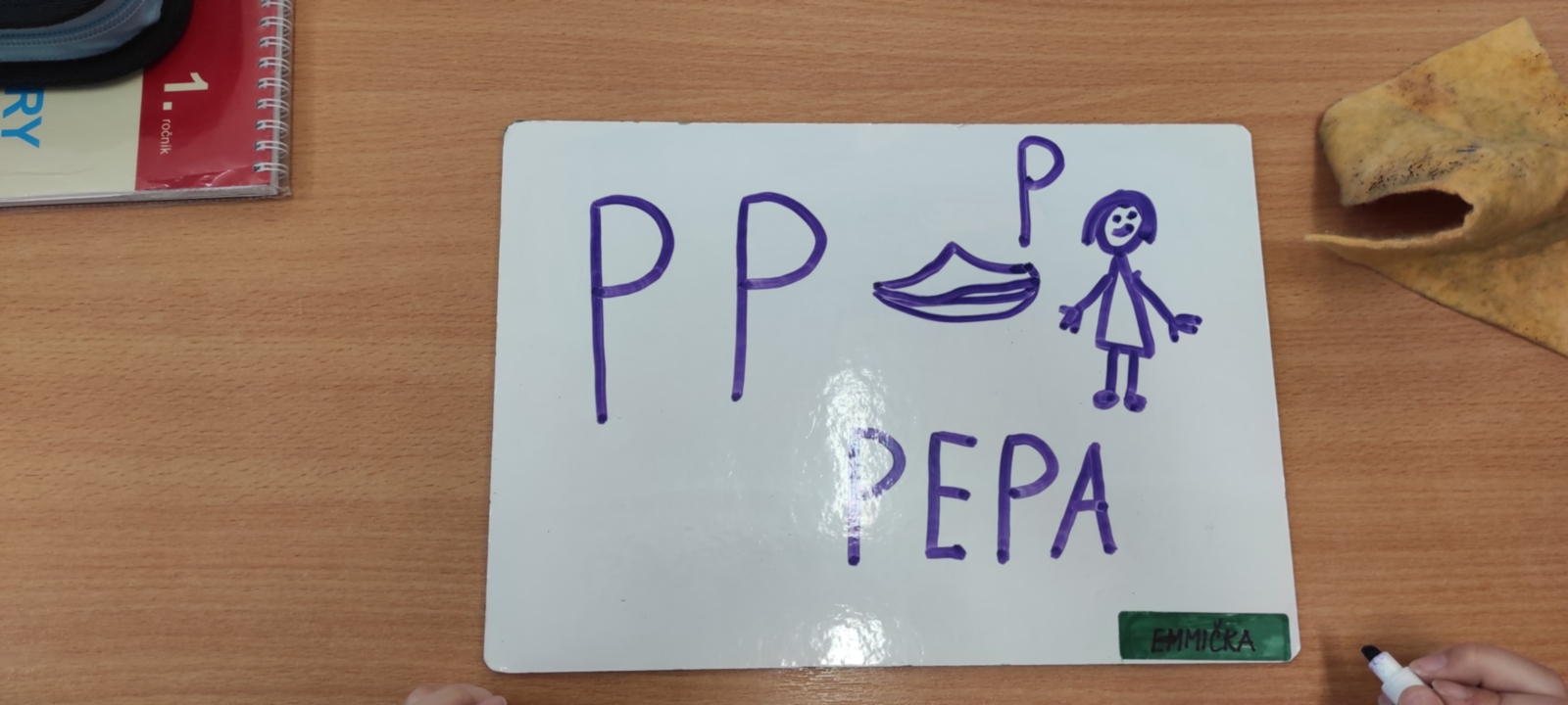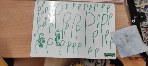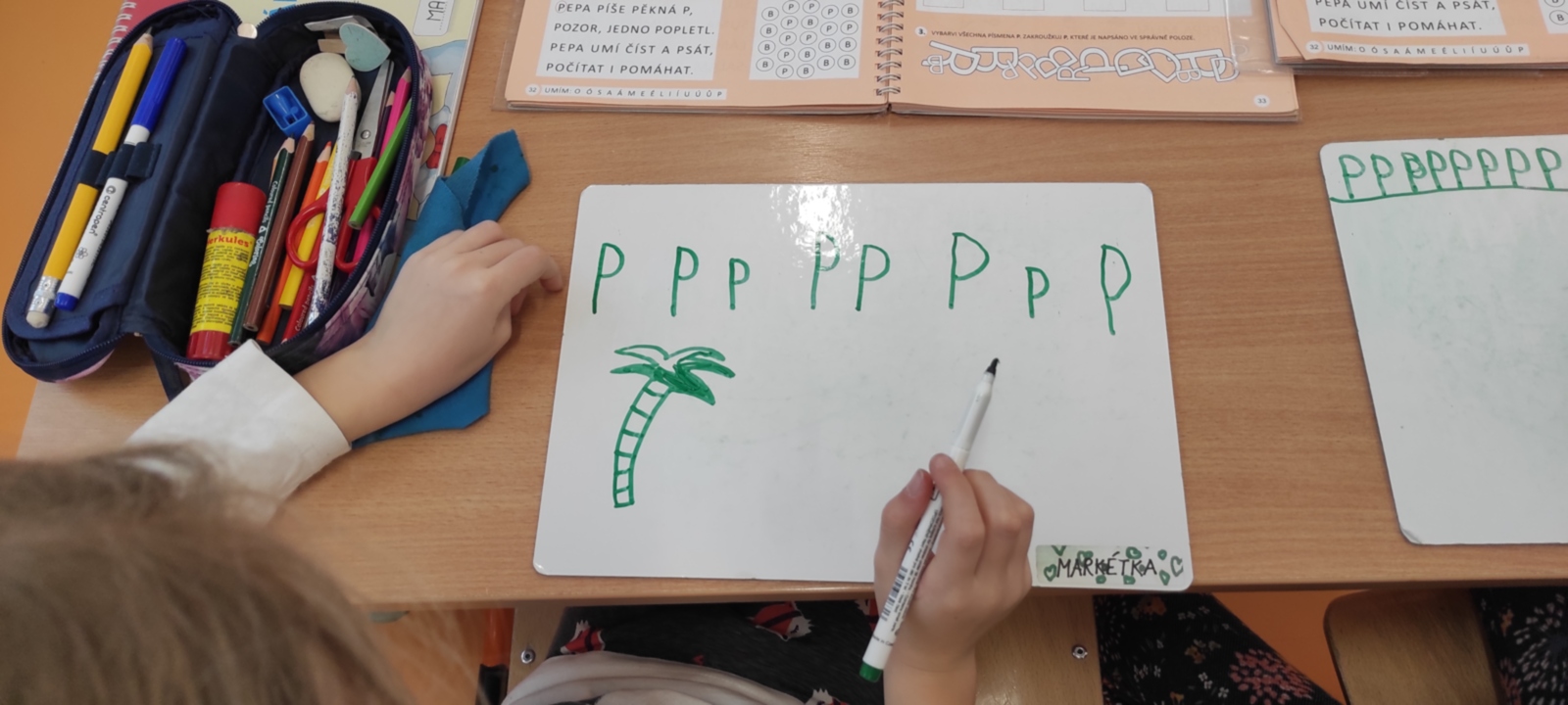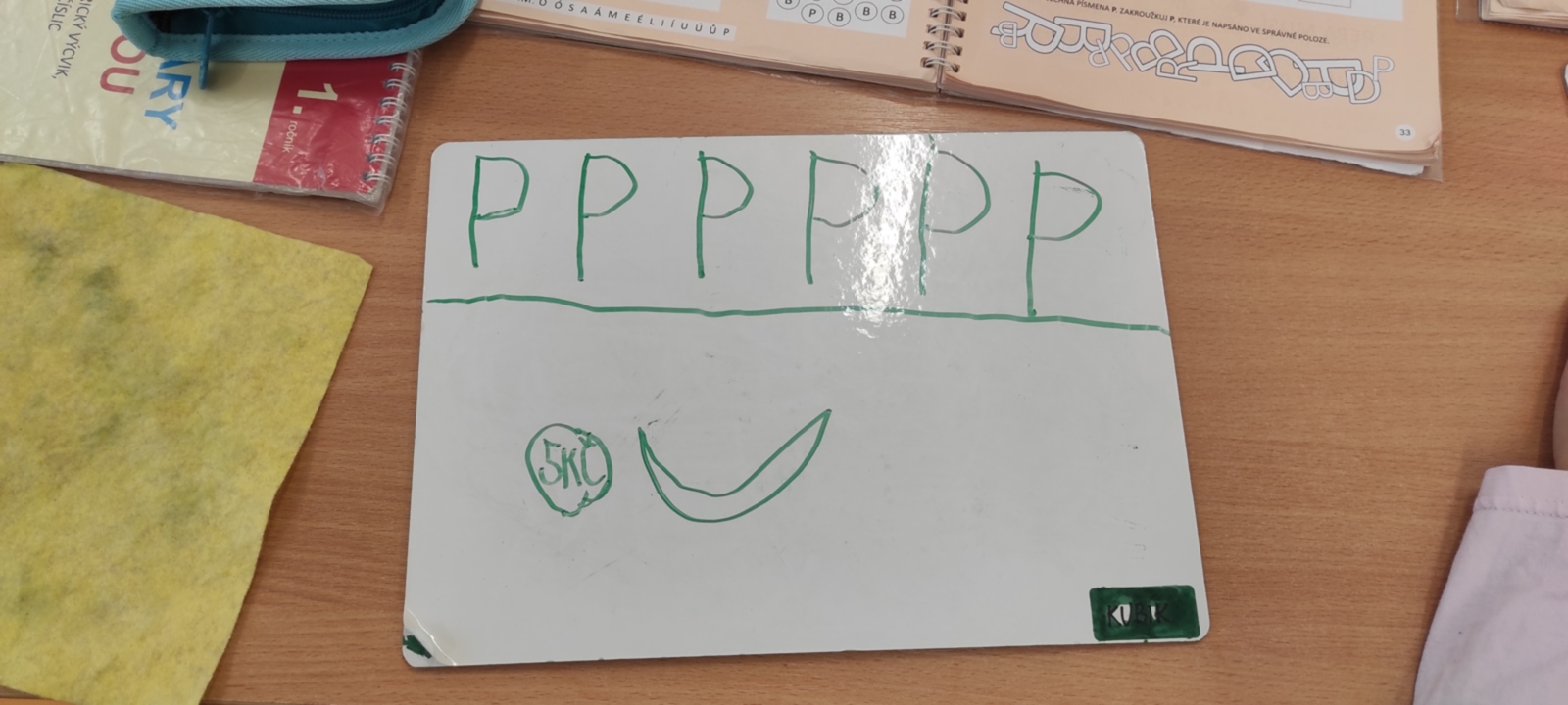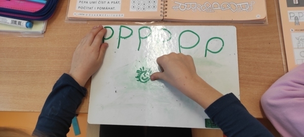 Zavedení nového písmenka do našich hlaviček bylo opravdu parádní. V pohádce o Ponožkách jsme jich mnoho našli, pomocí obrázků jsme si opět procvičili slabičnou stavbu slova a také jsme P vytvořili z vlastních těl. A nejen to. Upekli jsme Perníček Palčák, vymodelovali P z plastelíny i Perníkového těsta a také jsme P hledali ve třídě. A napsat už písmeno také umíme.