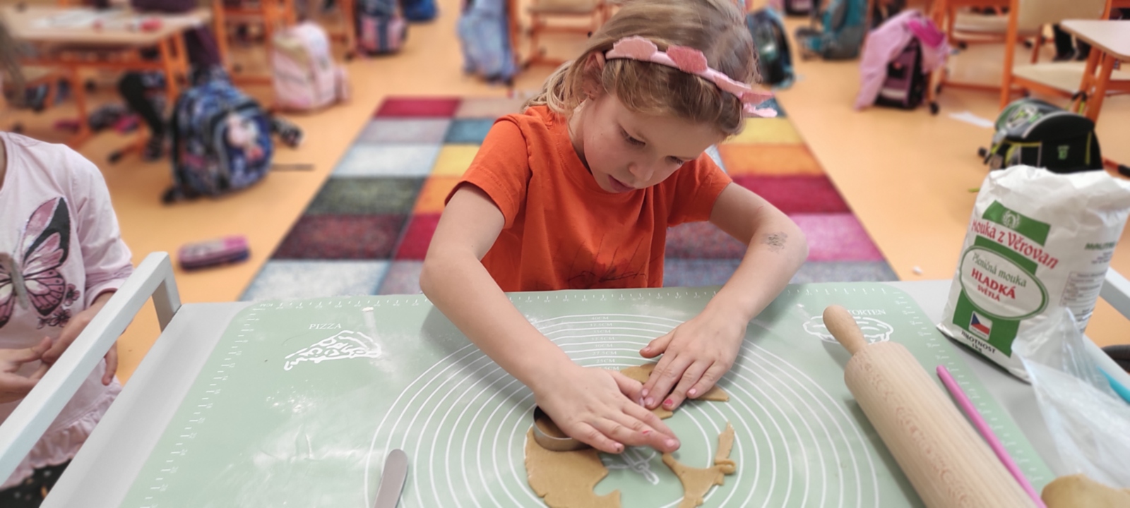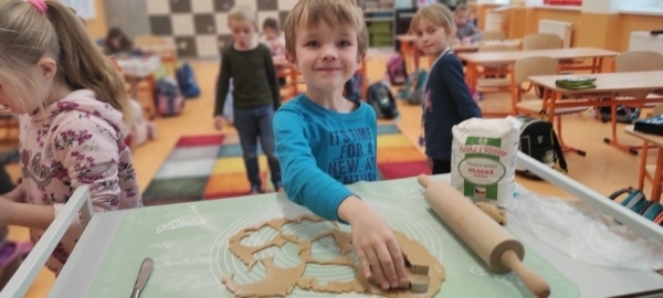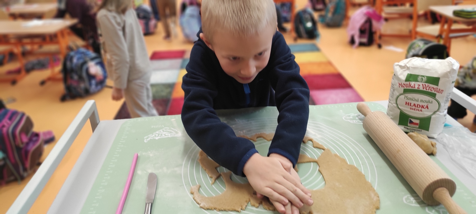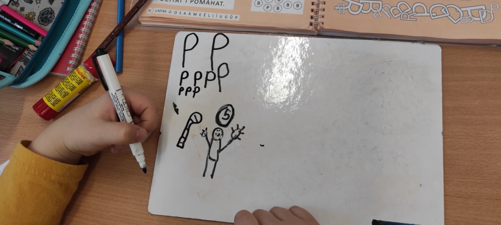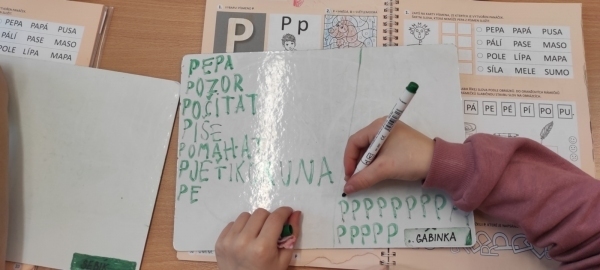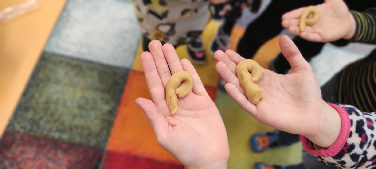 Zavedení nového písmenka do našich hlaviček bylo opravdu parádní. V pohádce o Ponožkách jsme jich mnoho našli, pomocí obrázků jsme si opět procvičili slabičnou stavbu slova a také jsme P vytvořili z vlastních těl. A nejen to. Upekli jsme Perníček Palčák, vymodelovali P z plastelíny i Perníkového těsta a také jsme P hledali ve třídě. A napsat už písmeno také umíme.