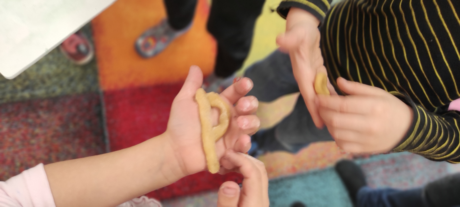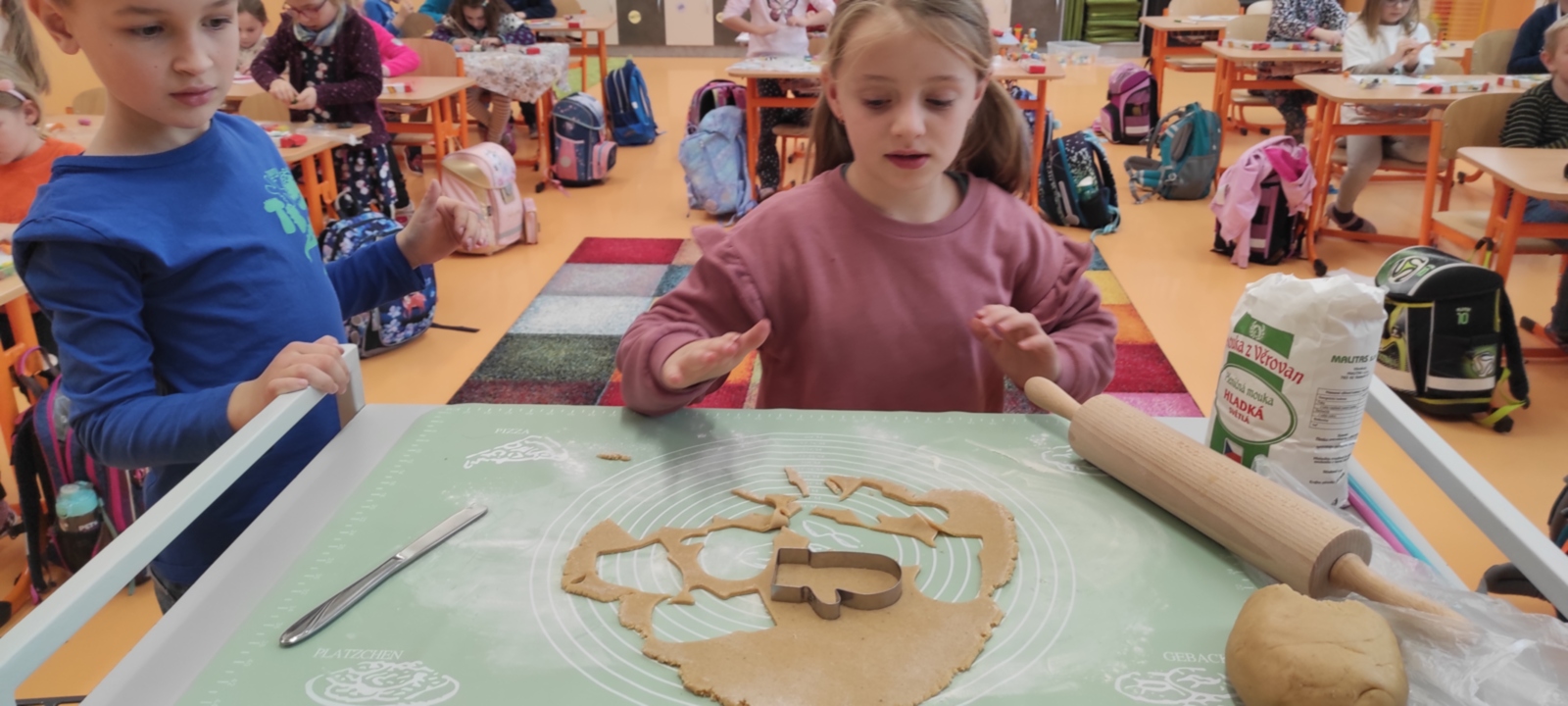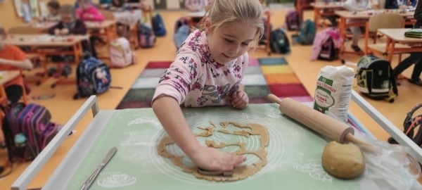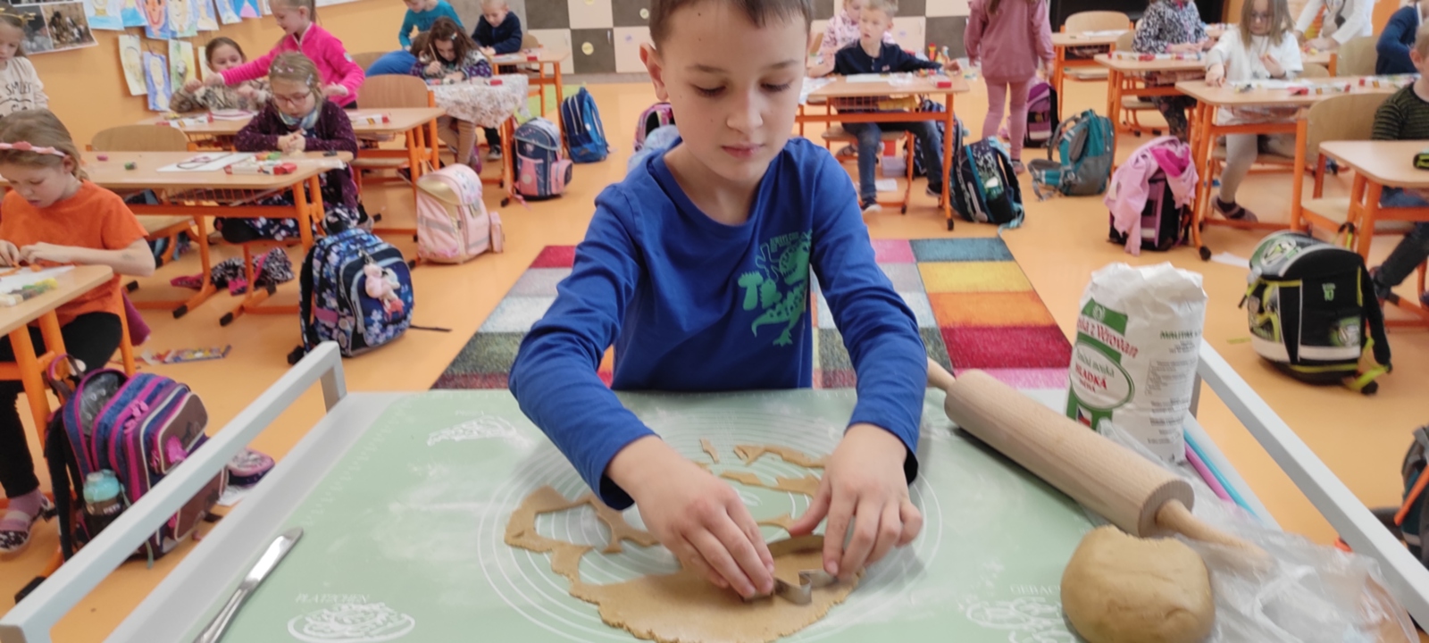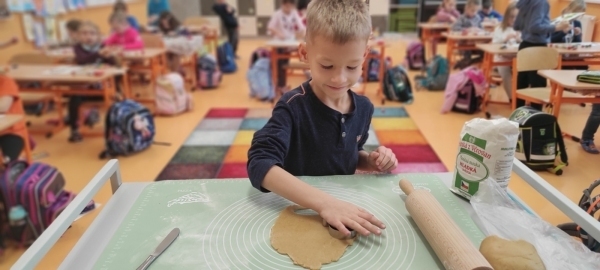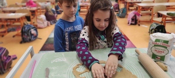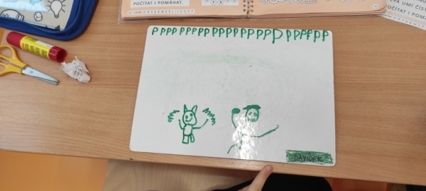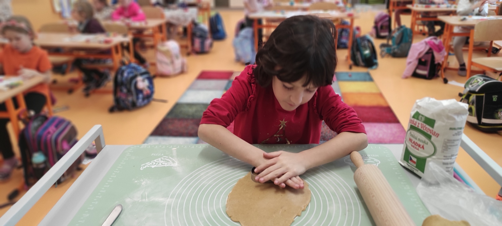 Zavedení nového písmenka do našich hlaviček bylo opravdu parádní. V pohádce o Ponožkách jsme jich mnoho našli, pomocí obrázků jsme si opět procvičili slabičnou stavbu slova a také jsme P vytvořili z vlastních těl. A nejen to. Upekli jsme Perníček Palčák, vymodelovali P z plastelíny i Perníkového těsta a také jsme P hledali ve třídě. A napsat už písmeno také umíme.