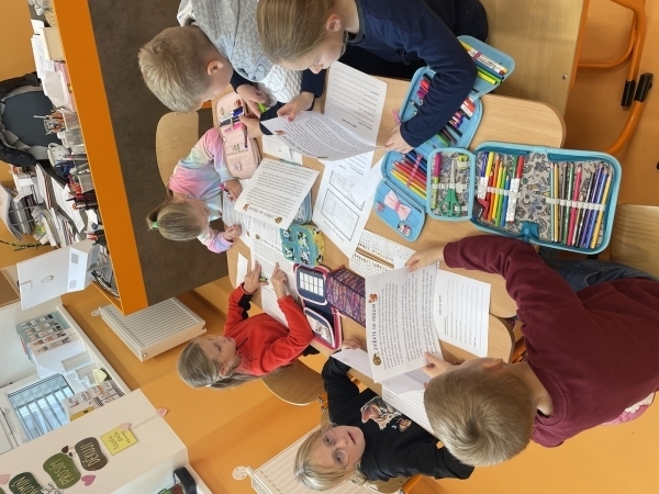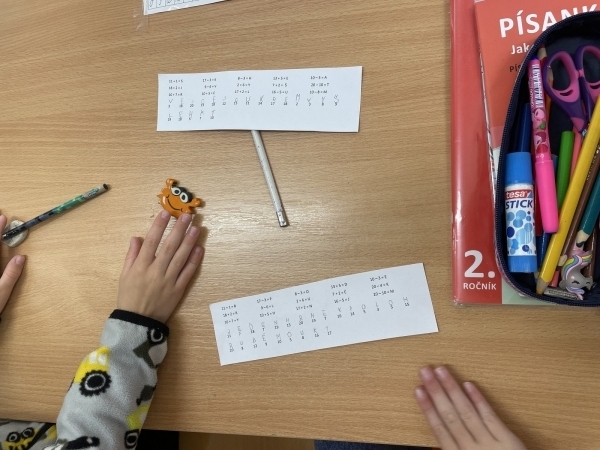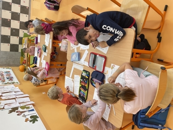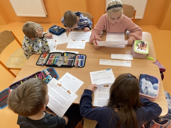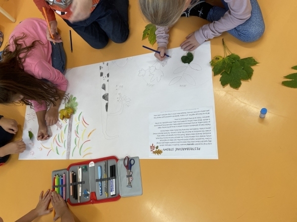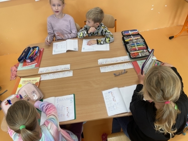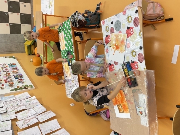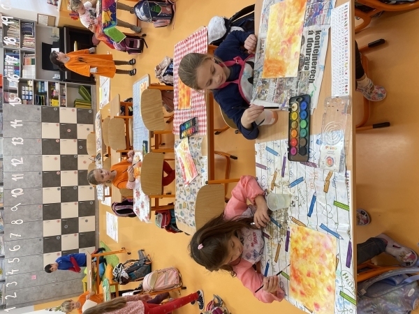 V úterý a ve středu se z nás stali badatelé - zkoumali jsme podzim a vše, co se během něj děje. Nejprve jsme si řekli, co vše se nám pod pojmem "podzim" vybaví, poté jsme se pustili do práce. V matematice jsme se rozcvičili na začarovaných číslech, které byly ukryty pod podzimními motivy. Následovala nejdůležitější práce - luštili jsme matematické šifry, které ukrývaly recept na jablkový koláč. Po vyluštění bylo nutné dát recept dohromady a najít všechny potřebné suroviny včetně jejich množství. V českém jazyce jsme byli rozděleni do čtyř skupin, ve kterých jsme se zabývali počasím, stromy, zvířaty a sklizní. Po přečtení textů a vypracování otázek jsme se pustili do výroby plakátů, které jsme si následně odprezentovali. Ve výtvarné výchově jsme si zapouštěním barev připravili podklad pro listy na náš třídní strom.