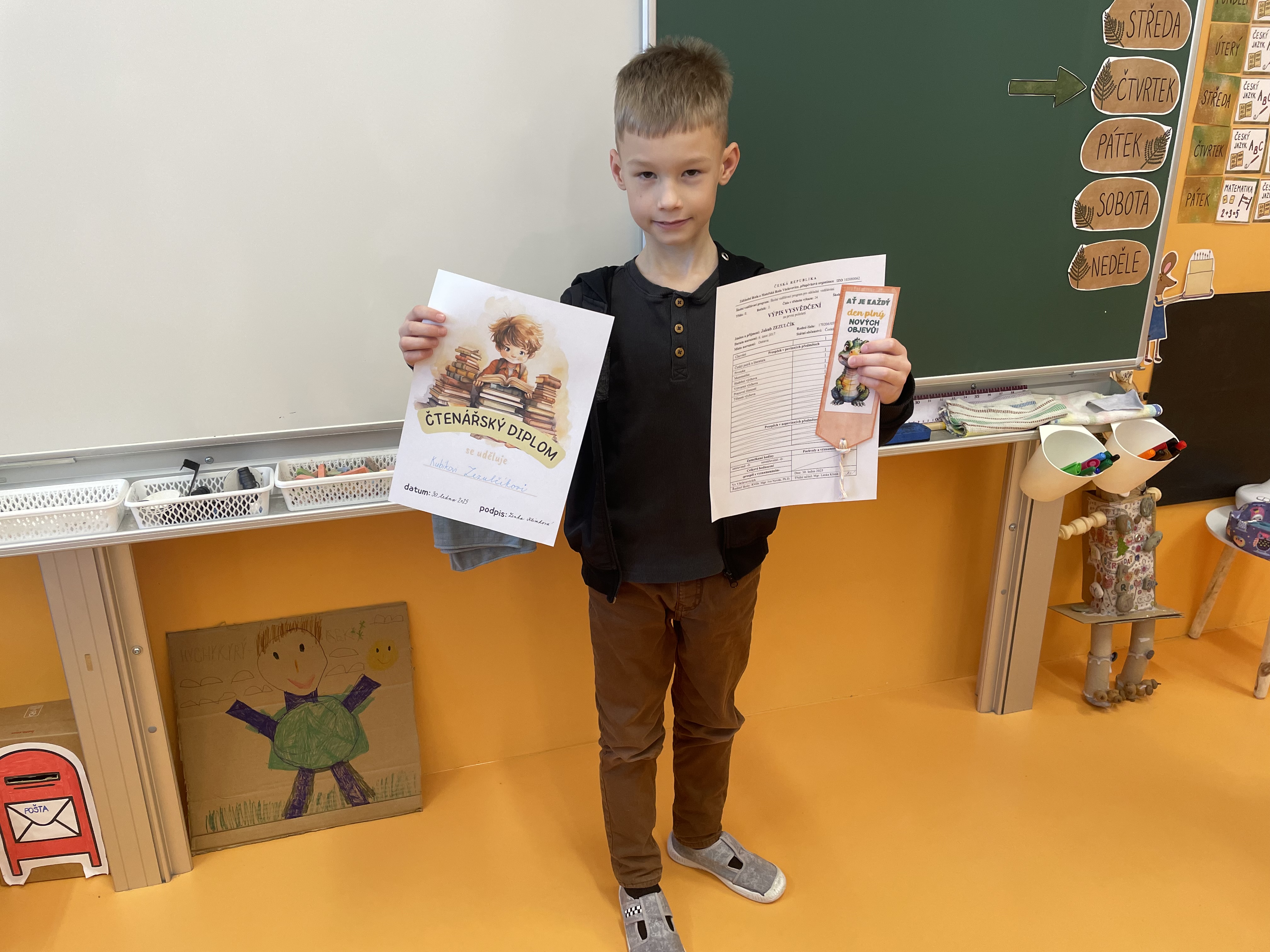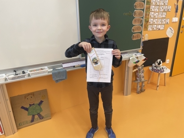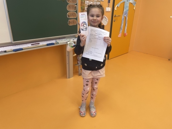 Poslední lednový týden jsme se vůbec neflákali. Procvičovali jsme tvrdé souhlásky, zdokonalovali jsme se v psaní i počítání. V úterý jsme se zúčastnili recitační soutěže, na které jsme obsadili všechny tři příčky v naší kategorii! Ve výtvarce jsme se "zahřáli" hrníčkem čaje a v tělocviku pro změnu florbalem. Na co jsme se ale celý týden těšili nejvíc, bylo vysvědčení. Jako speciální překvapení jsme měli "přítele na telefonu" - naši paní učitelku, se kterou jsme se spojili alespoň na malou chvíli. Před rozdáváním vysvědčení jsme si prezentací s fotografiemi připomněli, jak probíhal náš půlrok. A pak to konečně přišlo. VYSVĚDČENÍ! A jestli se nám povedlo? Povedlo! Jen se přesvědčte...