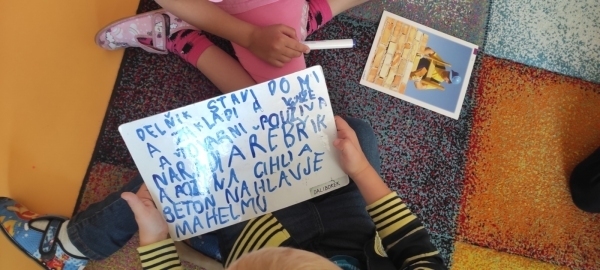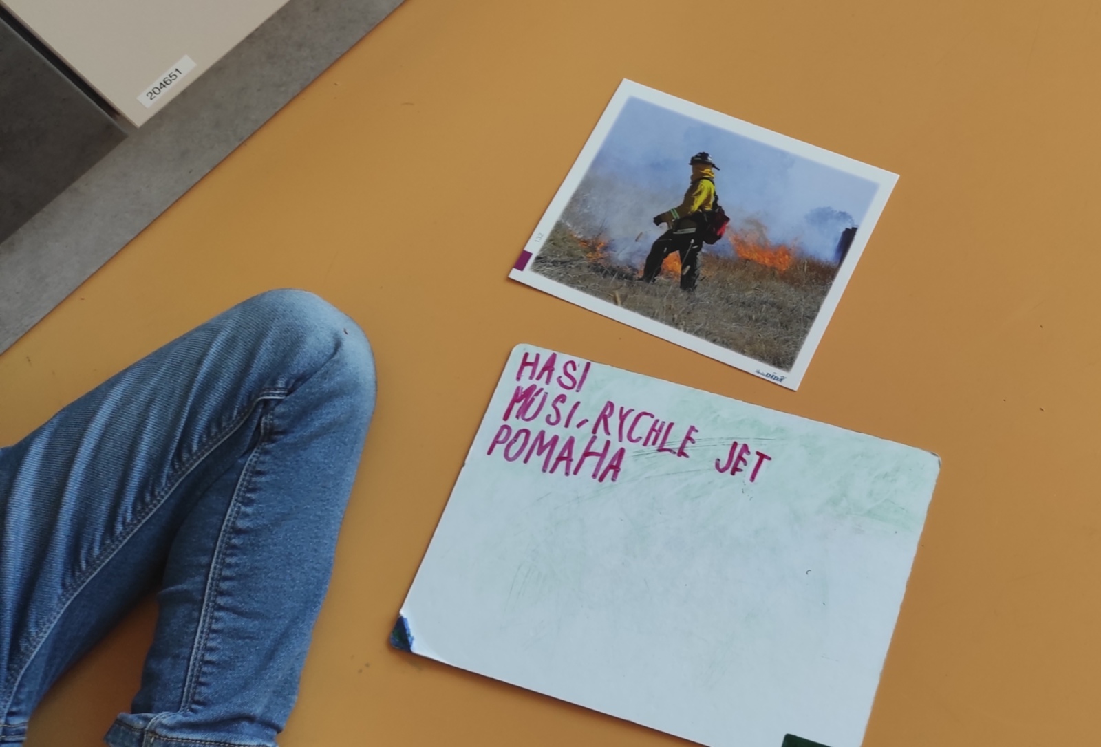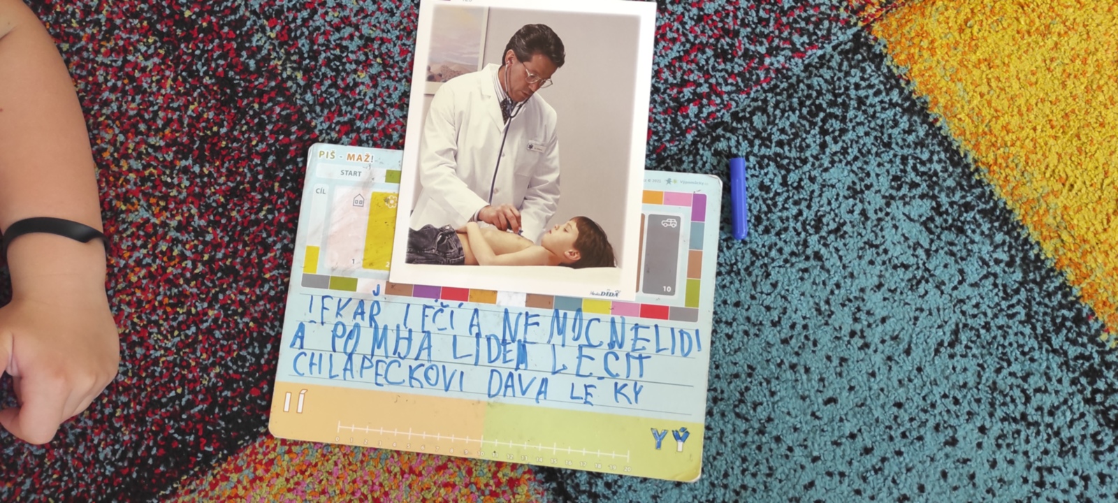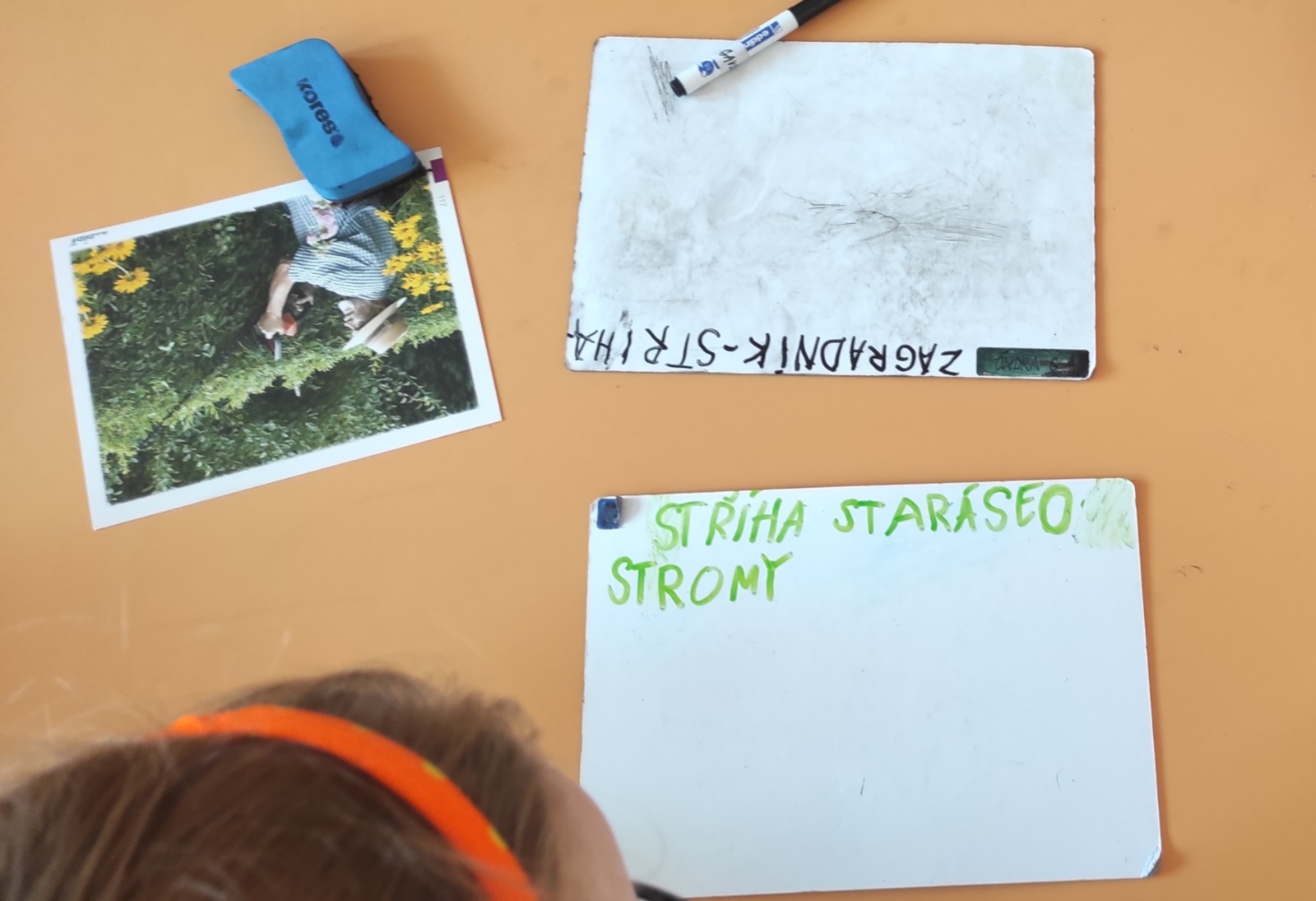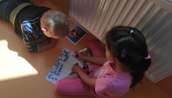 Dnes jsme si v tělocviku zahráli na AKROBATY, GYMNASTY a FOTBALISTY. Zkrátka na SPORTOVCE. V prvouce jsme téma povolání zopakovali tvořením sloves. Děti si ve dvojicích vylosovaly kartičku povolání, a pomocí otázky: " Co dělá...?" zapisovaly slovesa. Někteří i celé věty a krátké texty. Moc se jim práce povedly. Před obědem jsme venku kreslili, jak si představujeme radost.