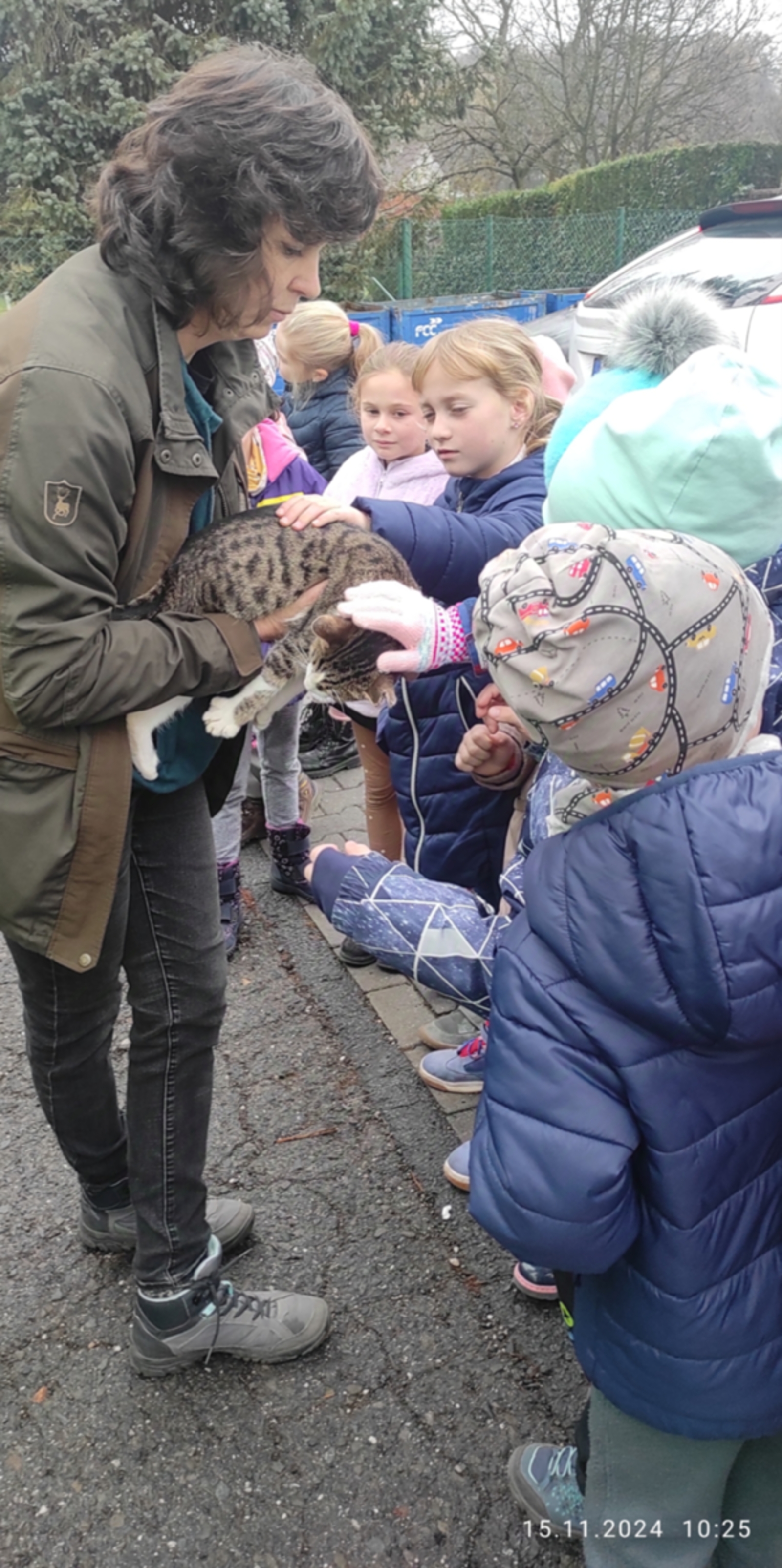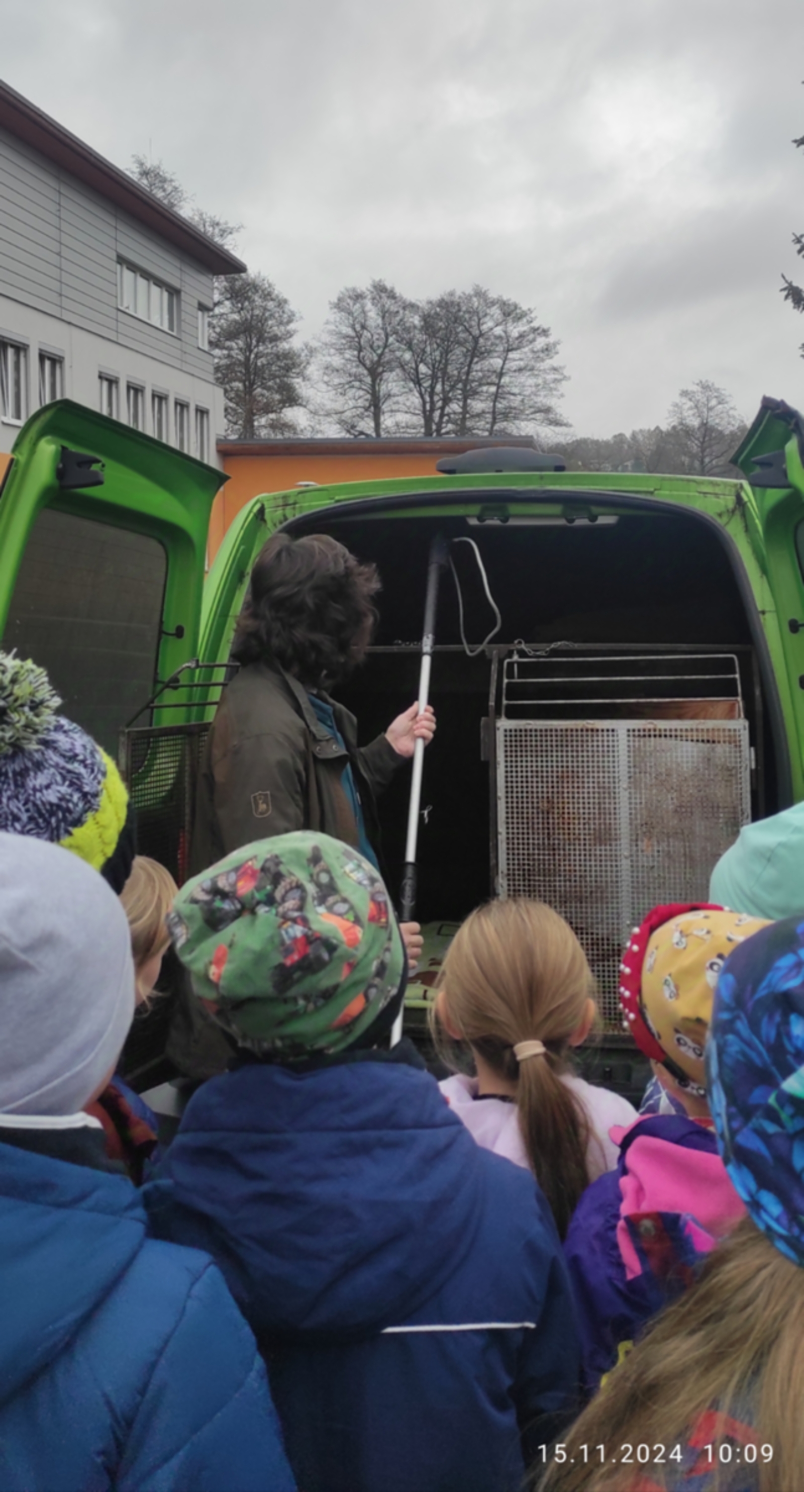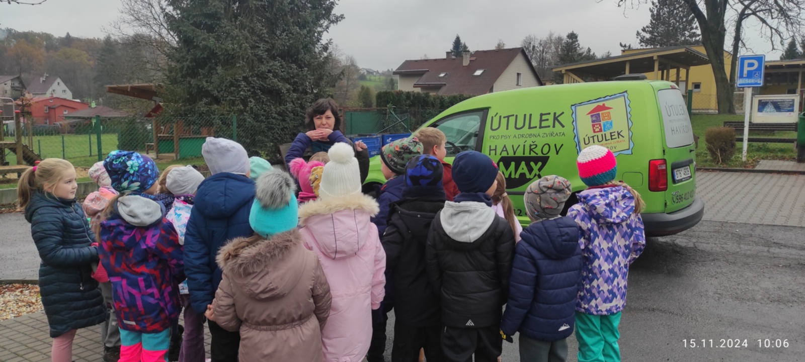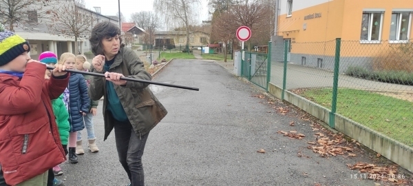 V pátek nás navštívila maminka Toníka, aby nám představila svou profesi. Tentokrát jsme se přesunuli ven. Už auto nám napovědělo, jaká profese to bude. Paní Turčínová spolupracuje s útulkem v Havířově a zachraňuje zatoulaná či nechtěná zvířata. Je odchytávačkou zvířat. Pověděla nám jak a s pomocí jakých pomůcek se to dělá. Chytá hlavně pejsky, kočičky, ale také papoušky či hady a mnohdy i jiná zvířata. Vyzkoušeli jsme si, jak se nespolupracující zvířata uspávají a moc se nám to líbilo.