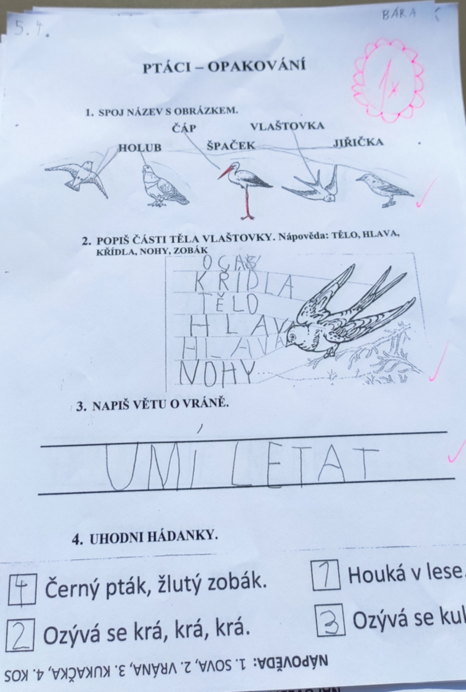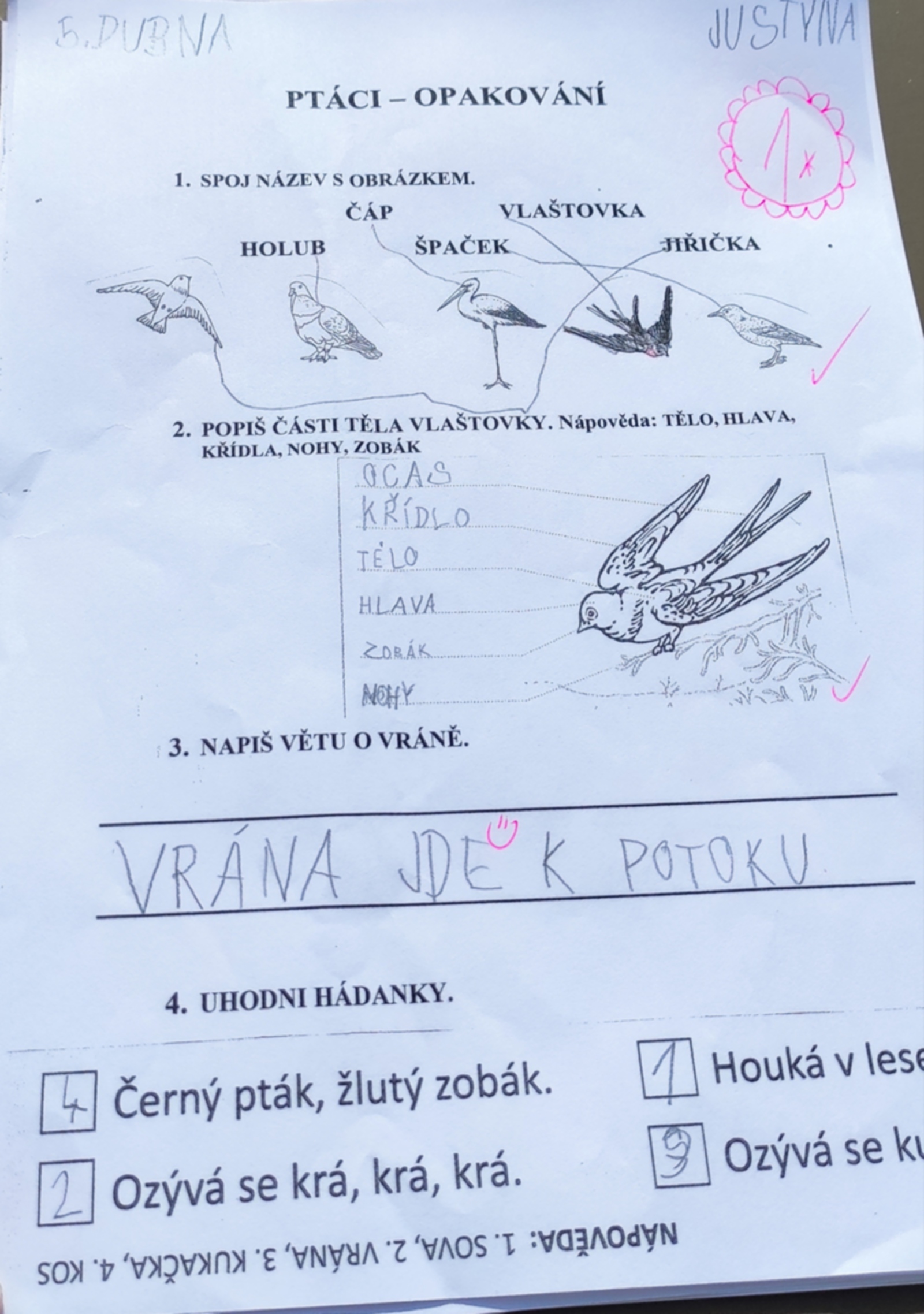 V tomto týdnu jsme se zaměřili na ptáčky. V prvouce jsme se je učili poznávat a popisovat, v českém jazyce jsme si o ptáčcích nejen četli, ale luštili jsme osmisměrky a hádanky. Také jsme konečně zvládli náš první 5-TI🍁EK.