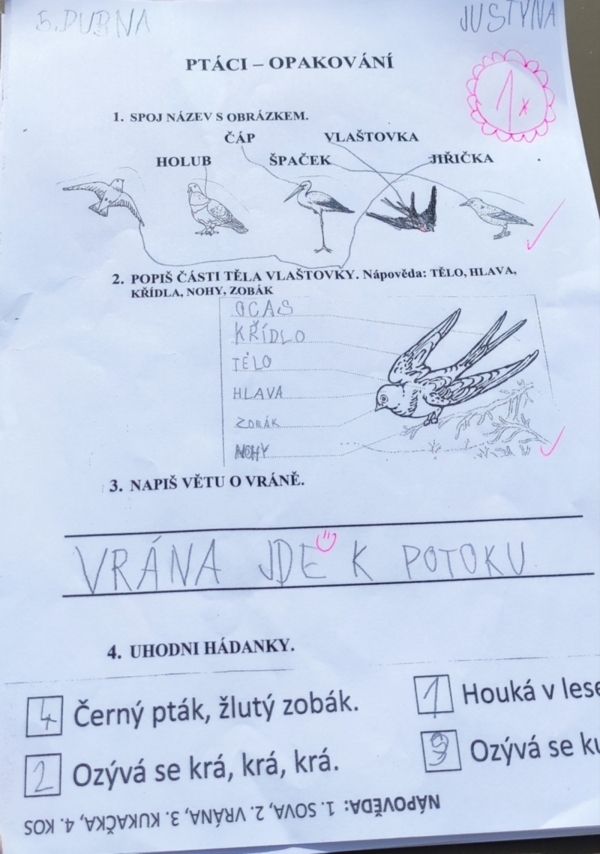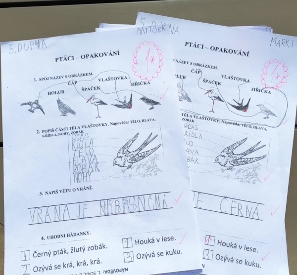 Děti pracovaly ve dvojicích a pár se jich pořádně zapotilo. Včetně mě.🤣 Ale určitě budeme tuto metodu trénovat. Stojí to za to. Pozitivum je, že ovládáme druhy ptáků, známe je a poznáme je. Pomohla nám Kimovka, čtení i obrázky. A opakovací testík znalosti jen potvrdil.