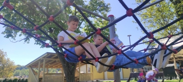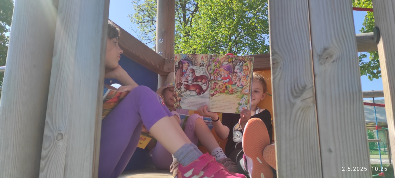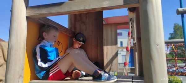 Konečně máme krásné počasí a můžeme se více učit venku. A tak jsme dnes zvolili hodinu čtení a tělocviku. Ve čtenářské dílně děti mohou číst kdekoli, tak se koukněte, jaká místa si vybraly. Tělocvik byl mimořádný - začali jsme vymýšlet choreografii na taneční vystoupení. Děti mají skvělé nápady a moc se na nacvičování těší. Tedy ne všichni, ale většina. Připravily překvapení paní učitelce a určitě na fotkách najdete, co to bylo.