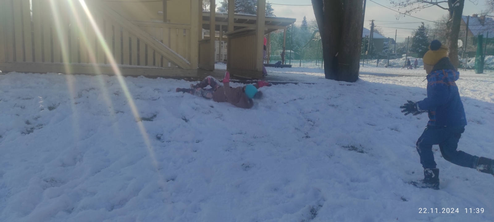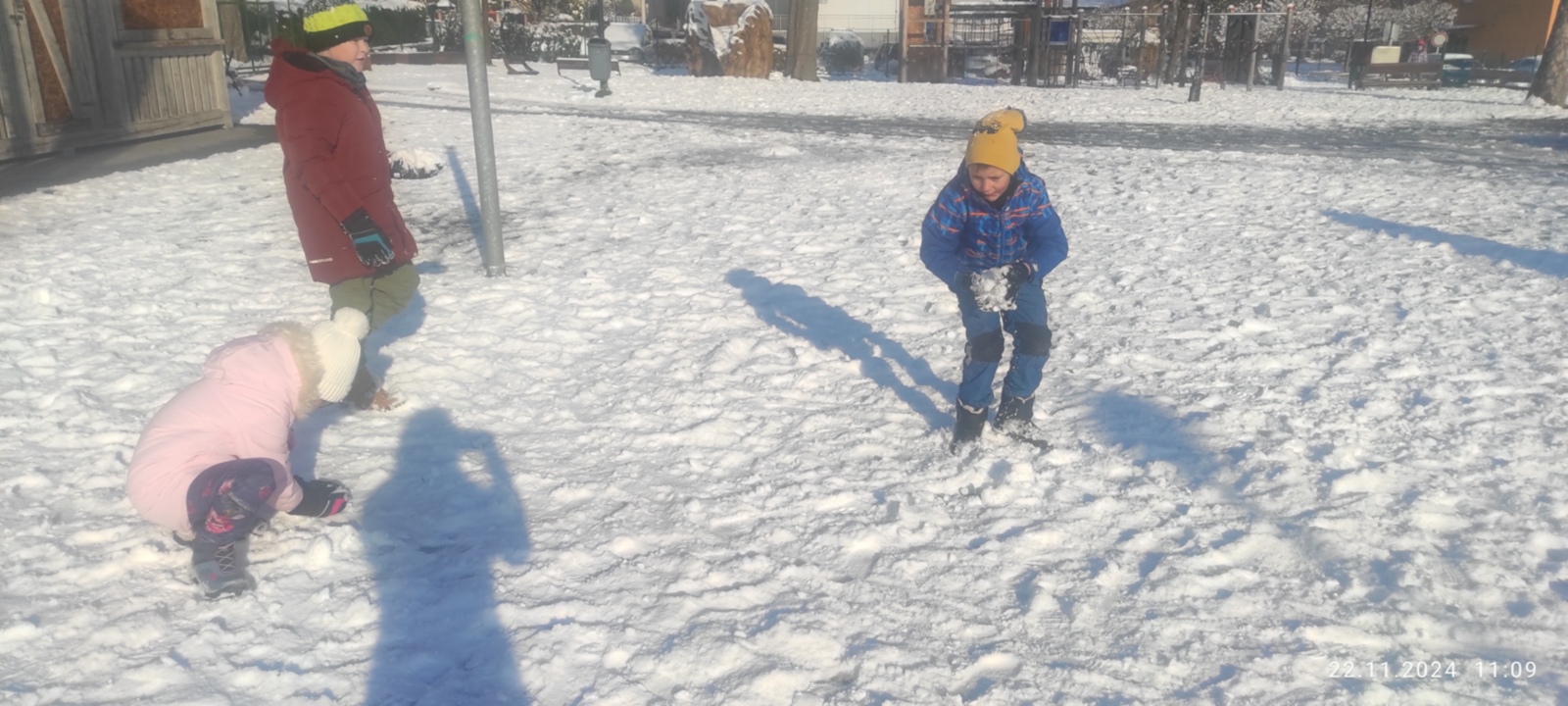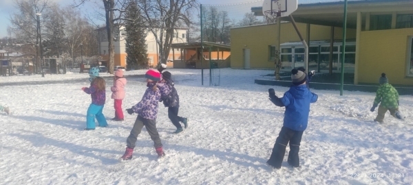 Jak rychle napadl krásný sníh, stejně rychle jsme se rozhodli pro tělocvik venku. Takže...připravit se, vyrobit sněhové koule a koulovaná mohla začít. Odpočinek v podobě andělíčků a zase cvičení. Válení sudů a honěná. Na závěr stavění sněhuláků. Ještě štěstí, že byly děti dobře vybaveny. ❄️😄❄️ Co víc si můžeme přát...