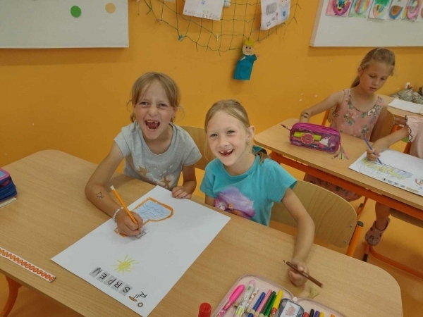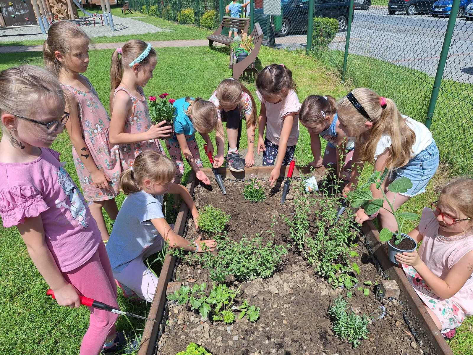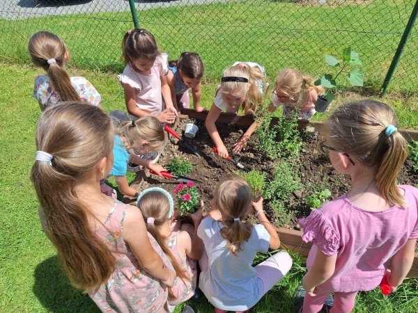 Tak třeba pracují na zvládnutí kalendáře měsíců v roce, na spolupráci ve dvojici, na zvelebení záhonku nebo na samostatné práci v matematice. Tempo je různé, ale všichni to zvládli. A protože nám nějaké zahradní potvůrky snědly veškerou zasazenou zeleninu, daly děti záhonku nový život a zasadily karafiáty, mochyni, petrželku, libeček, levanduli a kari. Už teď to tam krásně voní. Snad už nepřijde žádný hladový návštěvník.