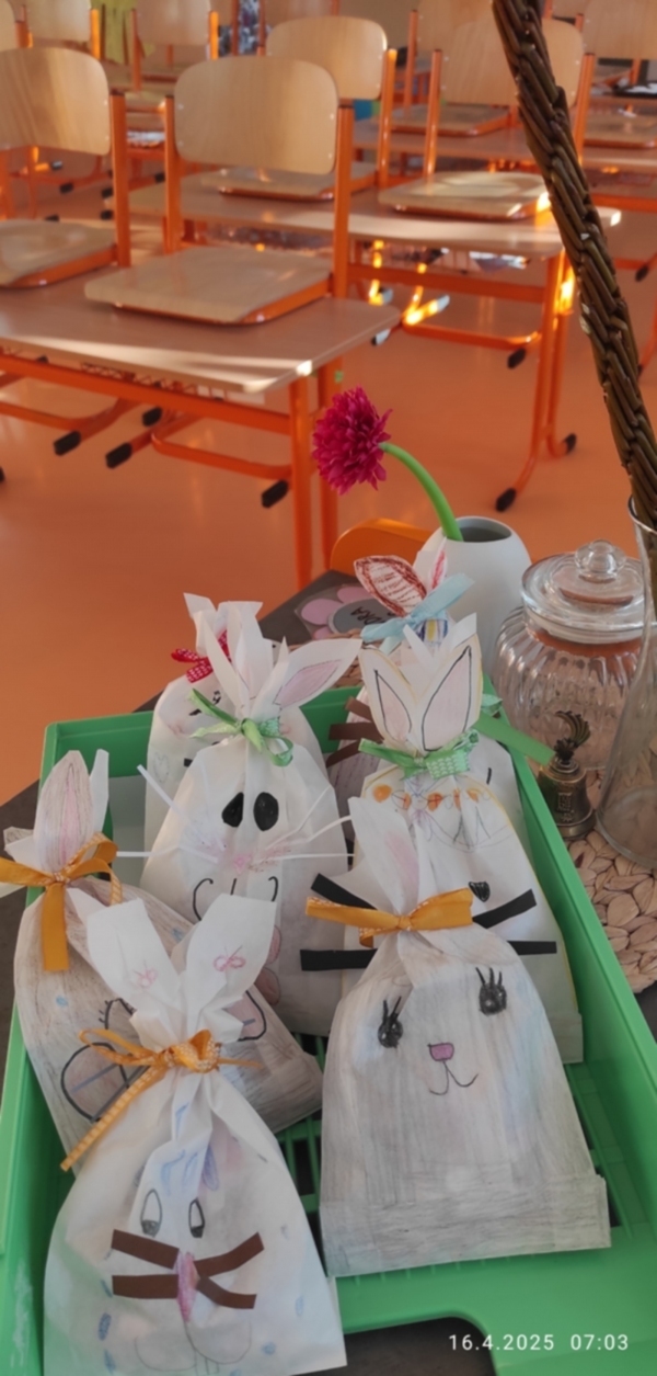 Tento krátký týden jsme si zpříjemnili pomocí velikonočních tradic a zvyků. I když jsme si napsali i opakovací test z českého jazyka, máme dobrou náladu. O Velikonocích toho víme mnoho, také jsme nahlédli do okolních zemí a zjistili, jaké zvyky mají tam. Vyrobili jsme si kraslice ze samotvrdnoucí hmoty, přáníčka pro potěšení a zajíčky ze sáčku, do kterých nám paní učitelka ukryla překvapení. Co tam asi bude?