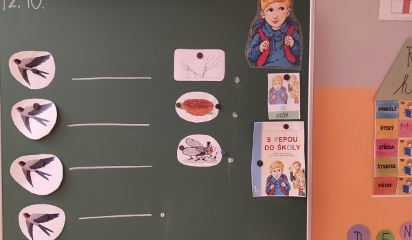 K podzimu neodmyslitelně patří vlaštovka. A proto se kolem ní točila i výuka v první třídě. Vlaštovky jsme procvičovali v psaní a fakt nám tento cvik dal hodně zabrat. Pomohly kaštany, fazolky a velký papír. Povídali jsme si o nich, shlédli video, jak si staví hnízdo, a ve skupinkách vytvořili myšlenkovou mapu. Četli jsme obrázkové věty. Na základě přečteného textu Poslední vlaštovka jsme pak poskládali obrázkový příběh. Složit však vlaštovku z papíru to byl tedy oříšek. Povedlo se, a tak jsme jim k odletu zazpívali písničku: "Vlaštovičko, leť! " Na shledanou na jaře!