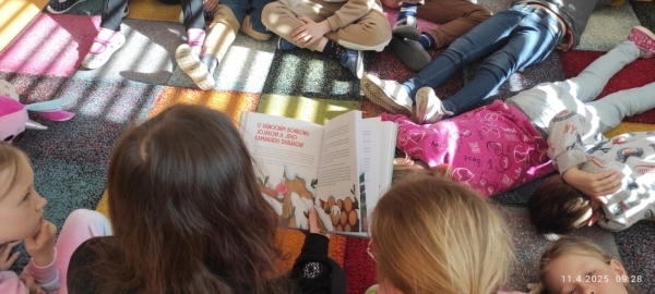 Představila dětem své knihy i příběhy a přečetla ukázky. Děti si knihy prohlédly a upoutaly je natolik,vze si požádaly o pár kousků ke koupi.