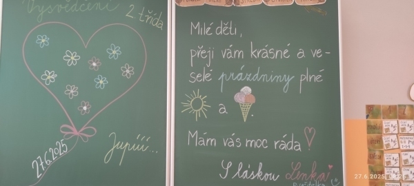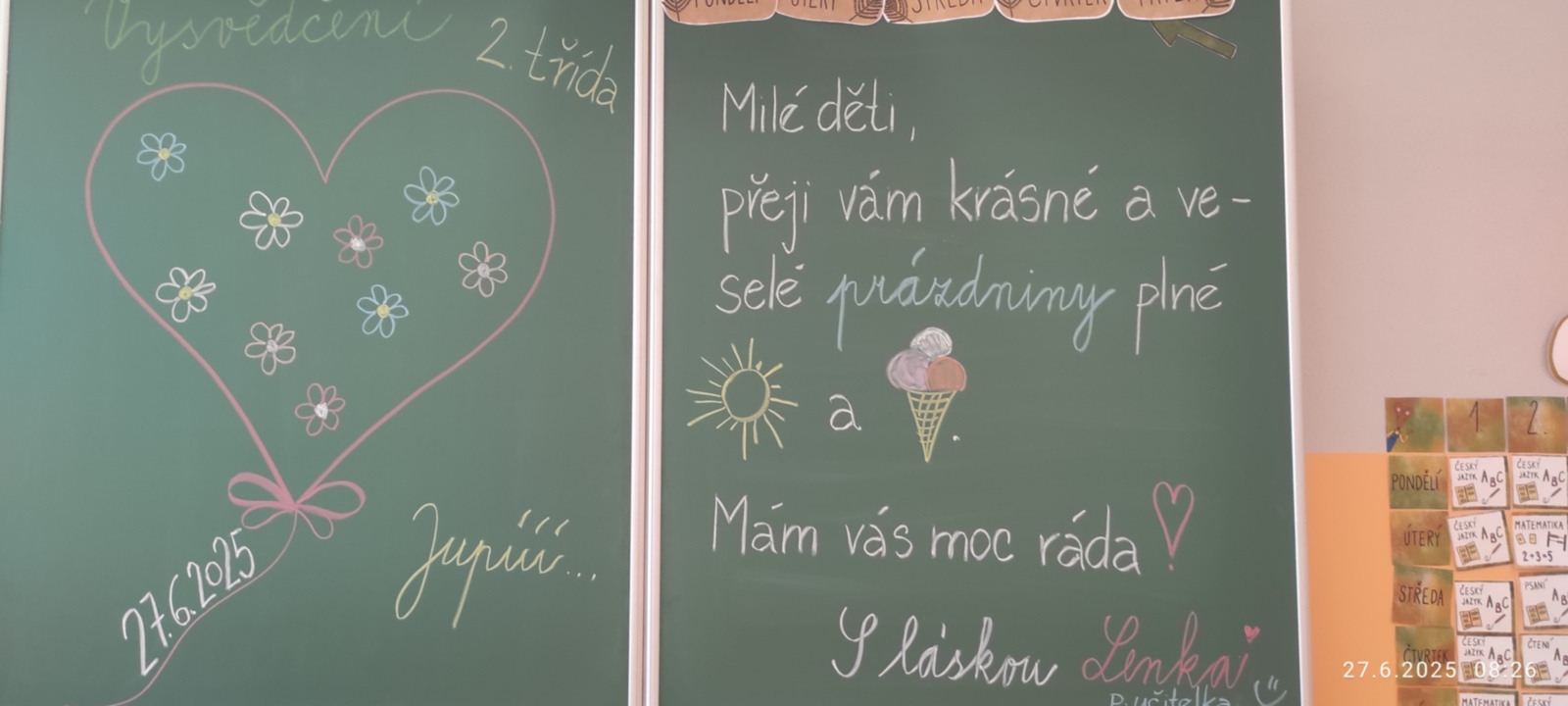 Moje milé děti, přeji všem krásné prázdniny plné sluníčka a zmrzliny, a po prázdninách hodně štěstí.