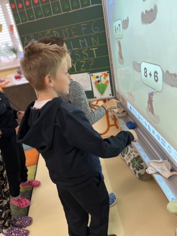 V počtech jsme si už celkem jistí. Aktivitou bouchni krtka trénujeme počítání na rychlost a postřeh. Bouchnout můžete totiž jen krtka se správným výsledkem. Na konci týdne jsme měli ve škole vzácnou návštěvu. navštívil nás pan policista se kterým si děti povídaly o bezpečné cestě do školy a dalších informacích týkajících se prevence.