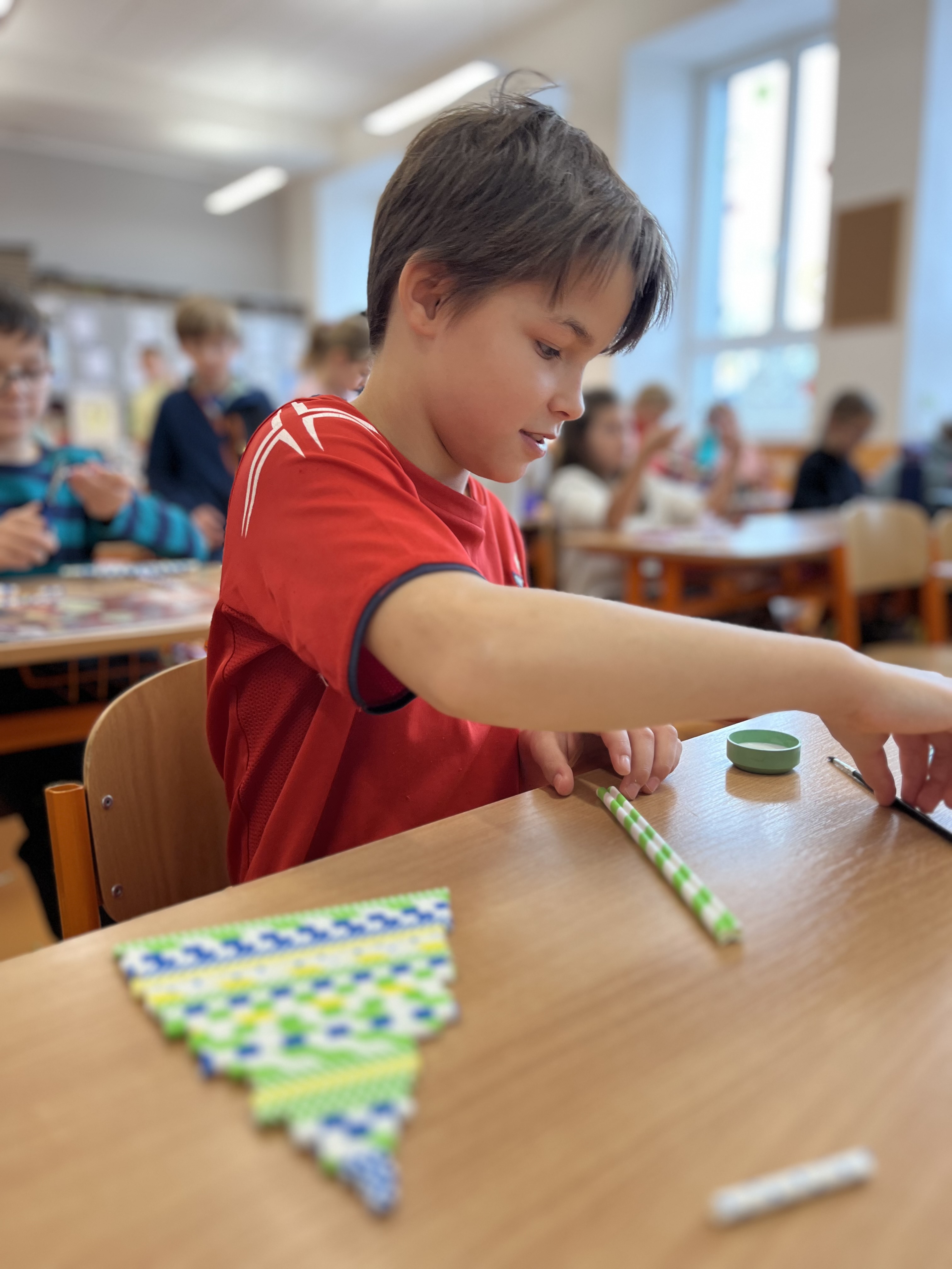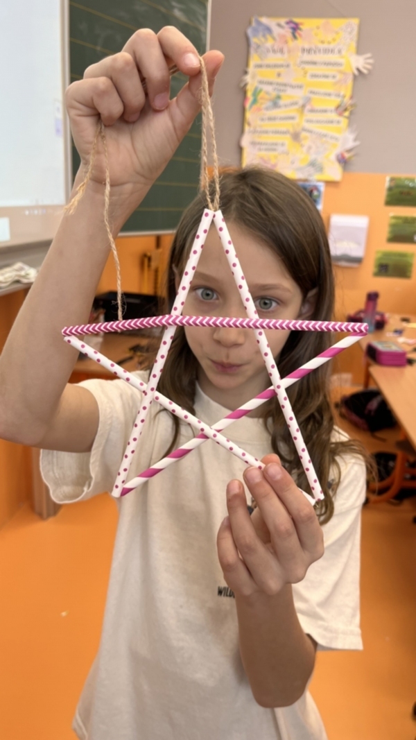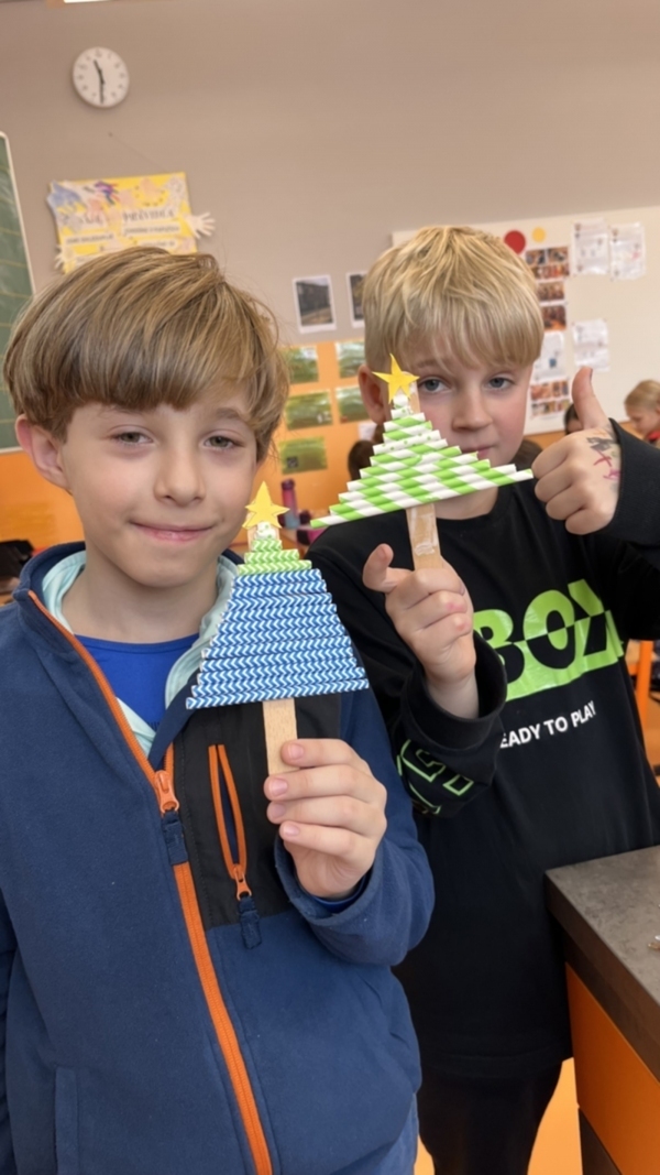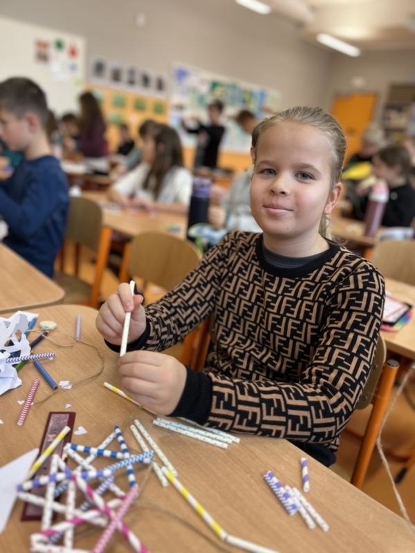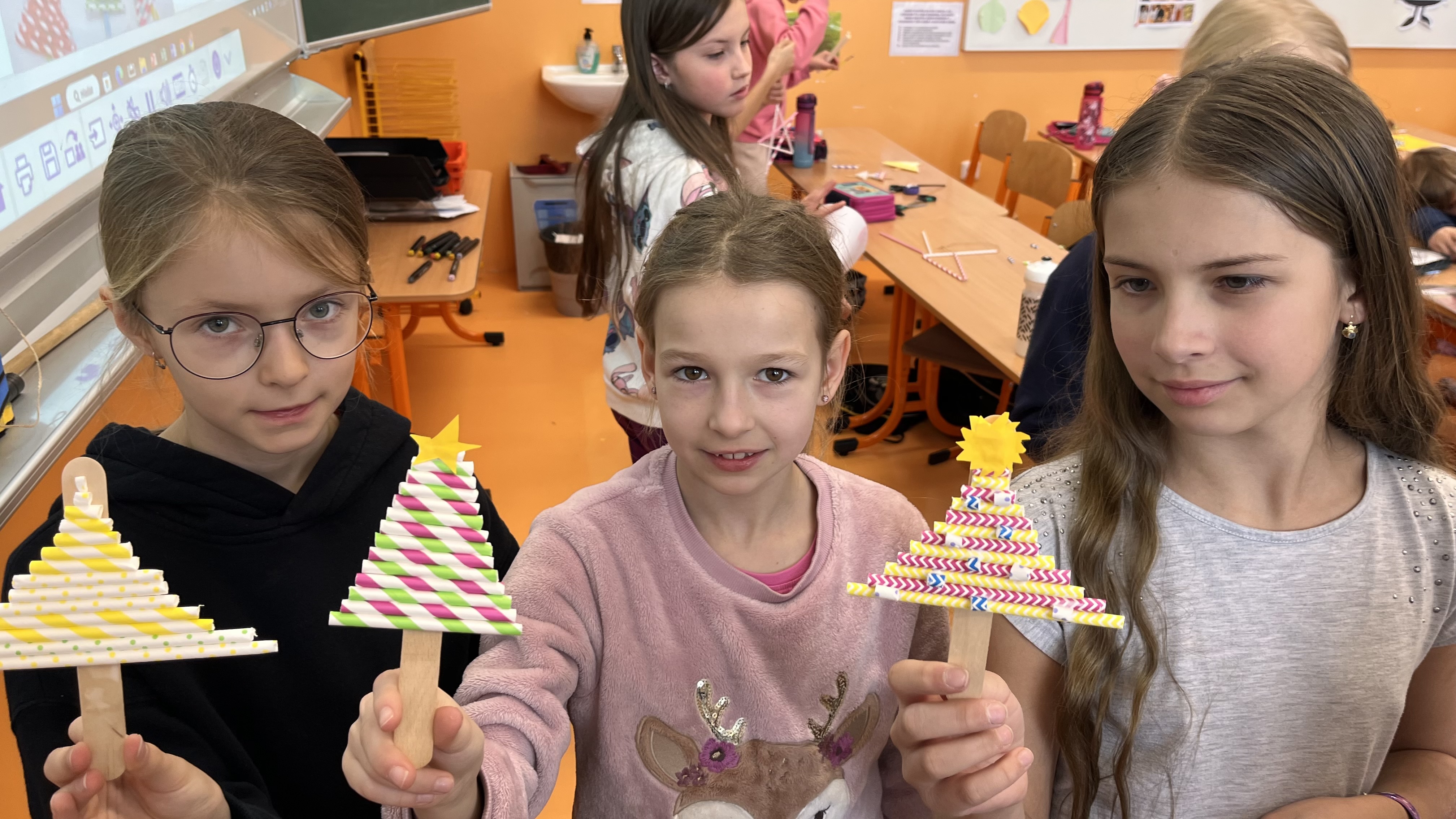 V pracovních činnostech jsme se tentokrát pustili do výroby vánočních ozdob z papírových brček. Byla to legrace a po tvoření ve třídě nezbylo ani jediné brčko.
