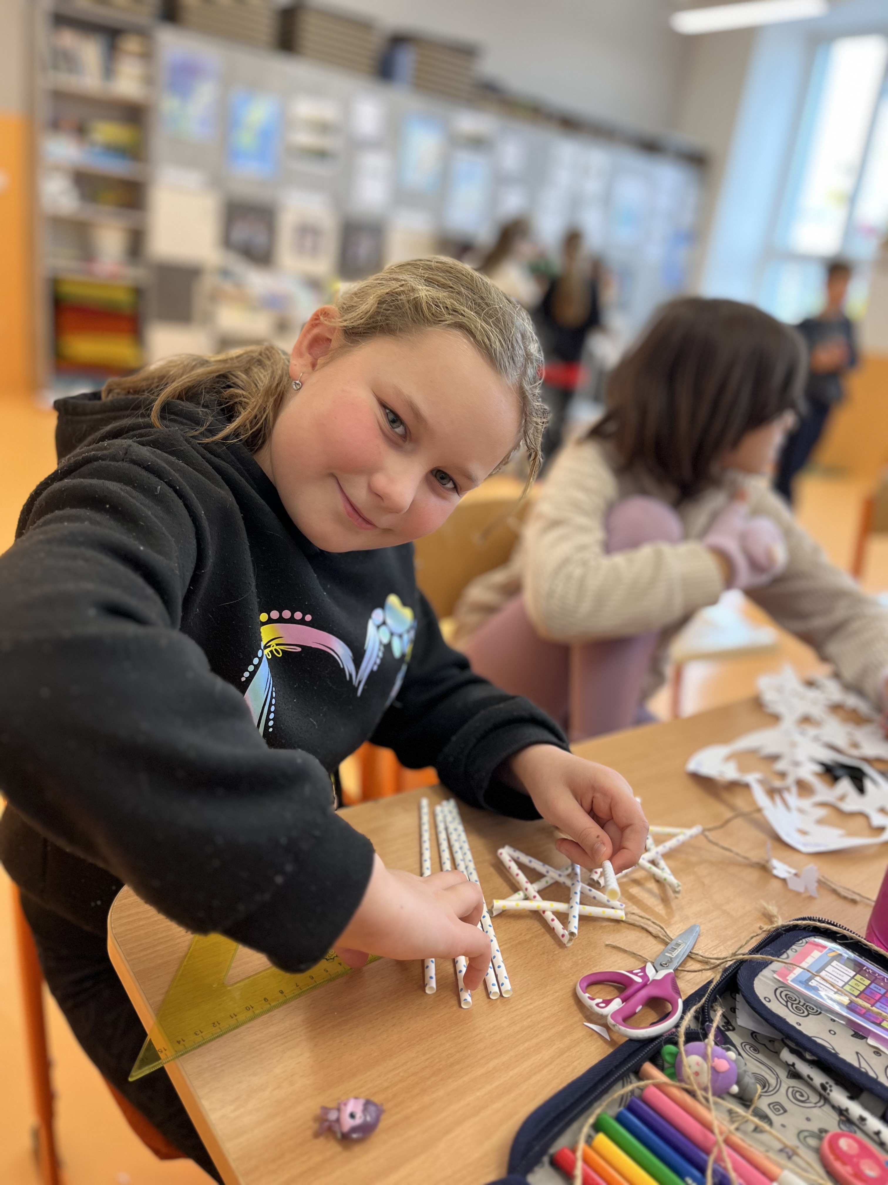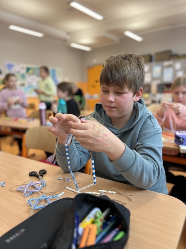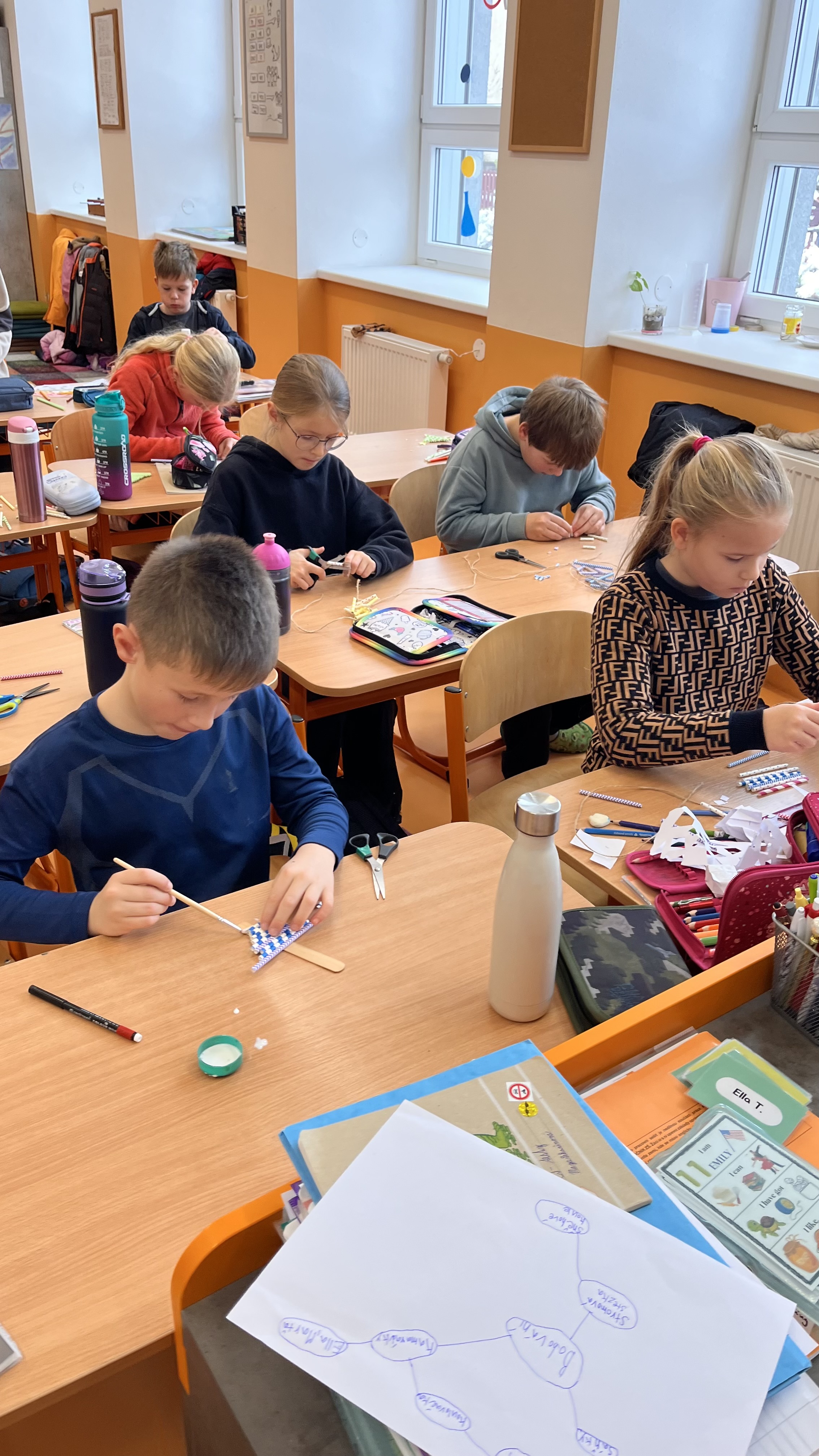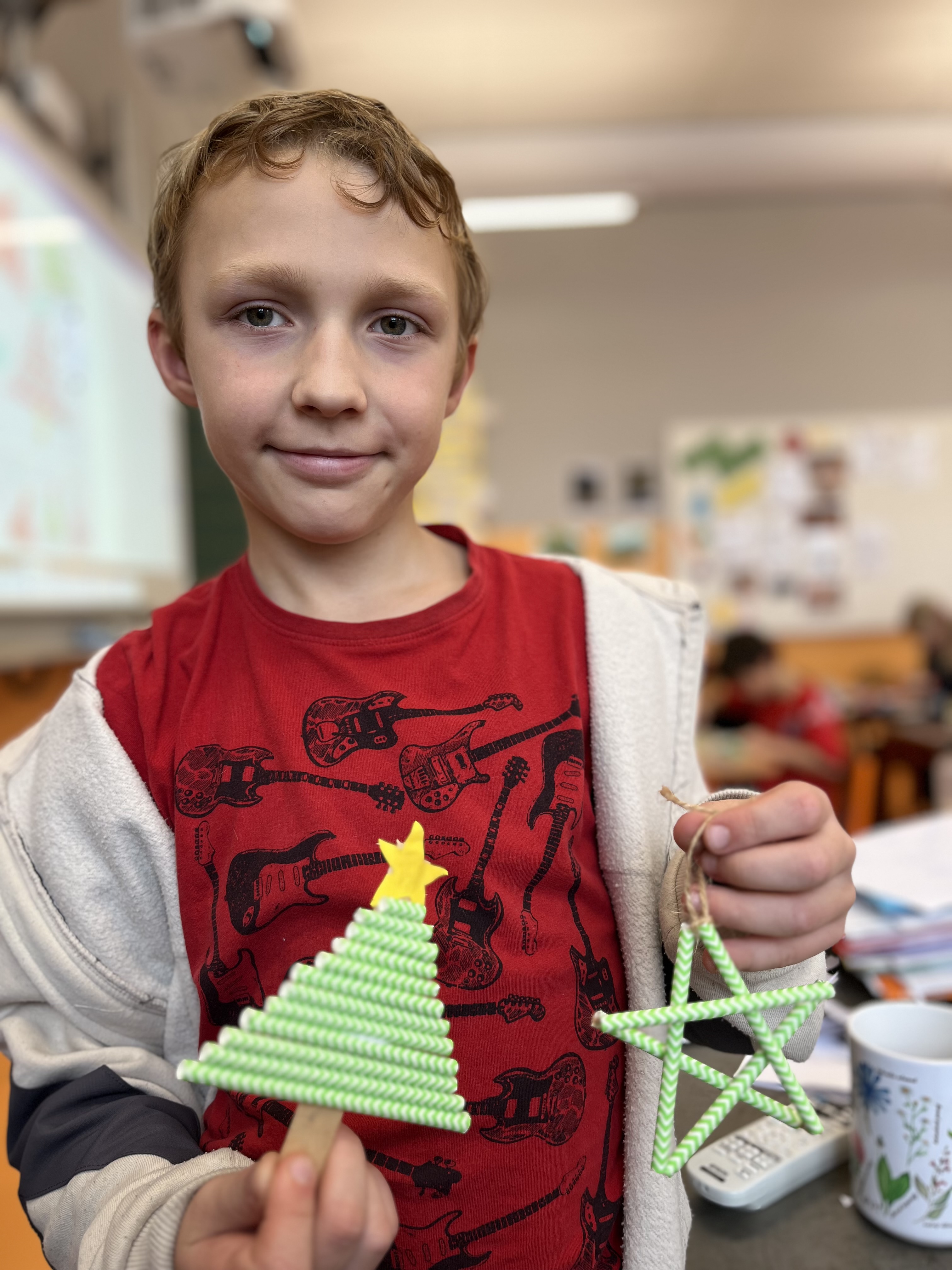 V pracovních činnostech jsme se tentokrát pustili do výroby vánočních ozdob z papírových brček. Byla to legrace a po tvoření ve třídě nezbylo ani jediné brčko.