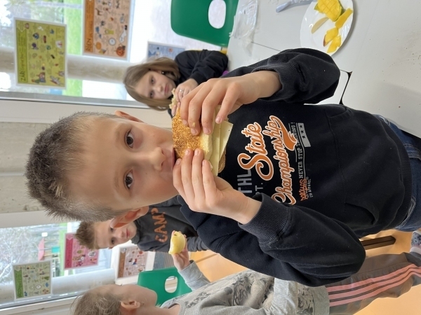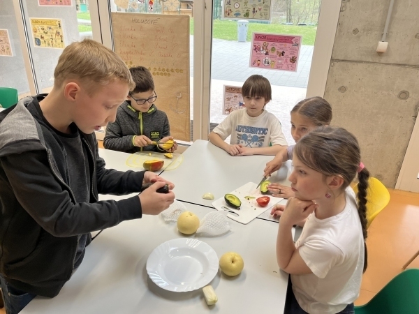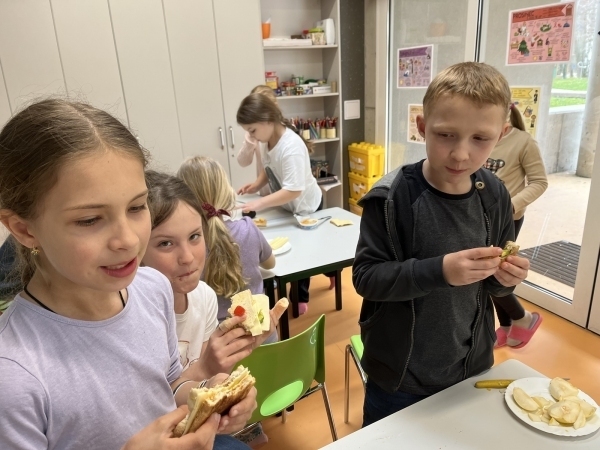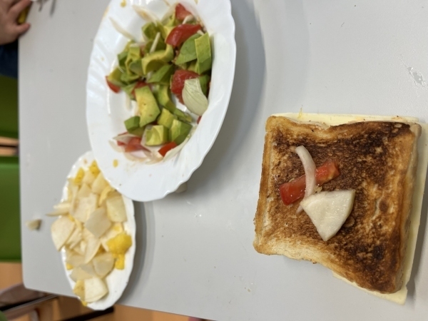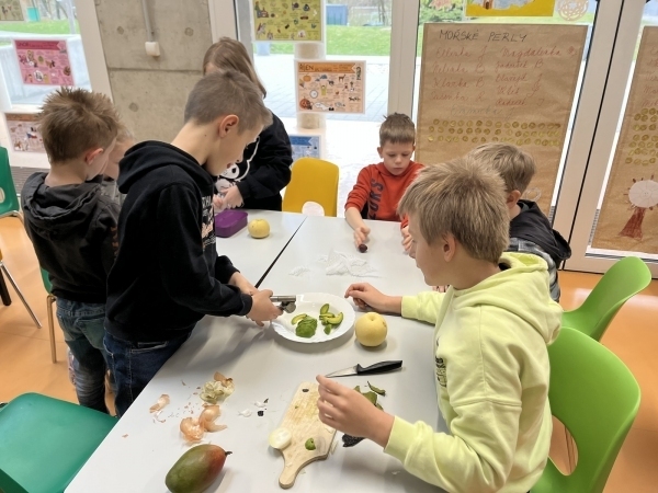 Když dostaneme nějaké ovoce nebo zeleninu, neváháme a jdeme kuchtit. Tentokrát to byly avokádové sendviče se sýrem a ovocný salatek z manga a jablko hrušek naši.