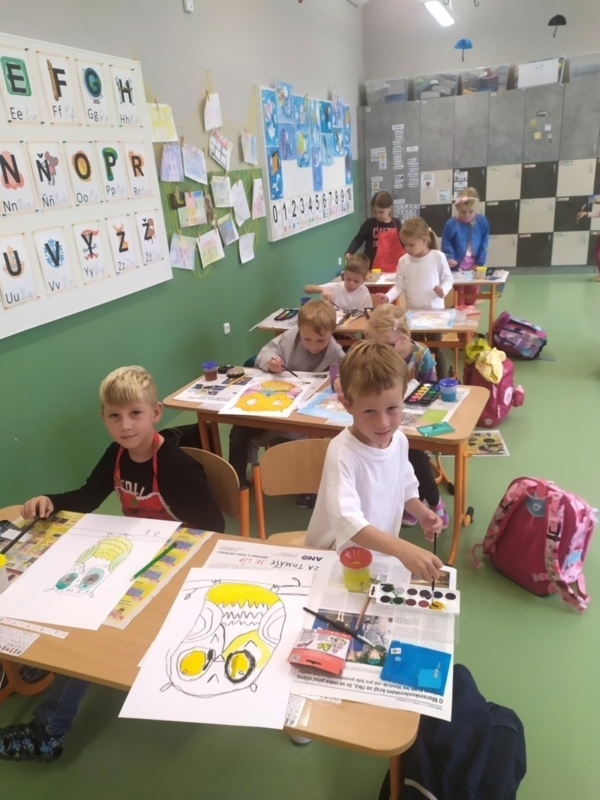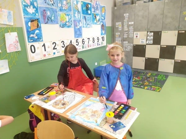 Malování nám opravdu jde! Naše obrázky rozveselily třídu i chodbu školy a jsme na ně právem pyšní.