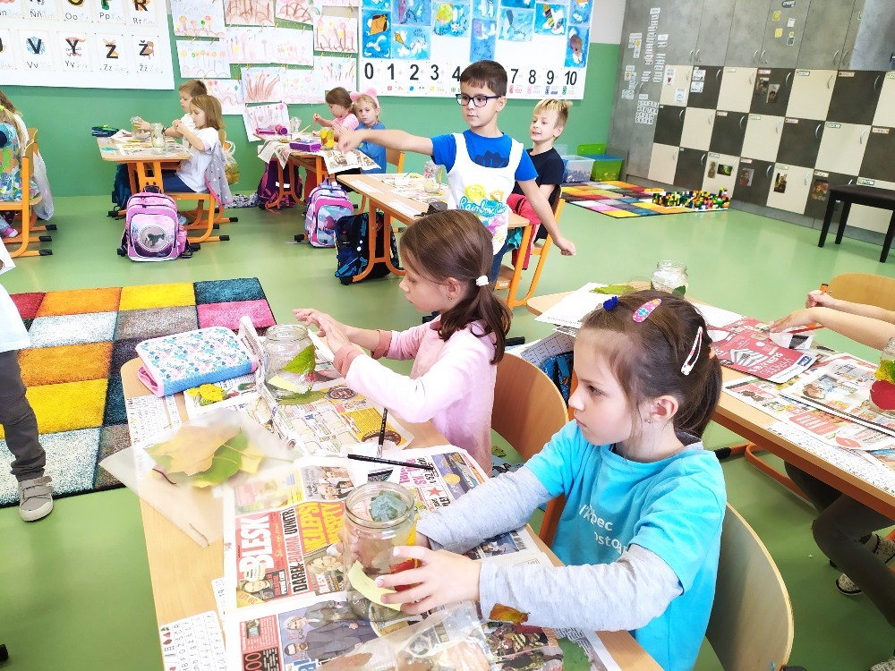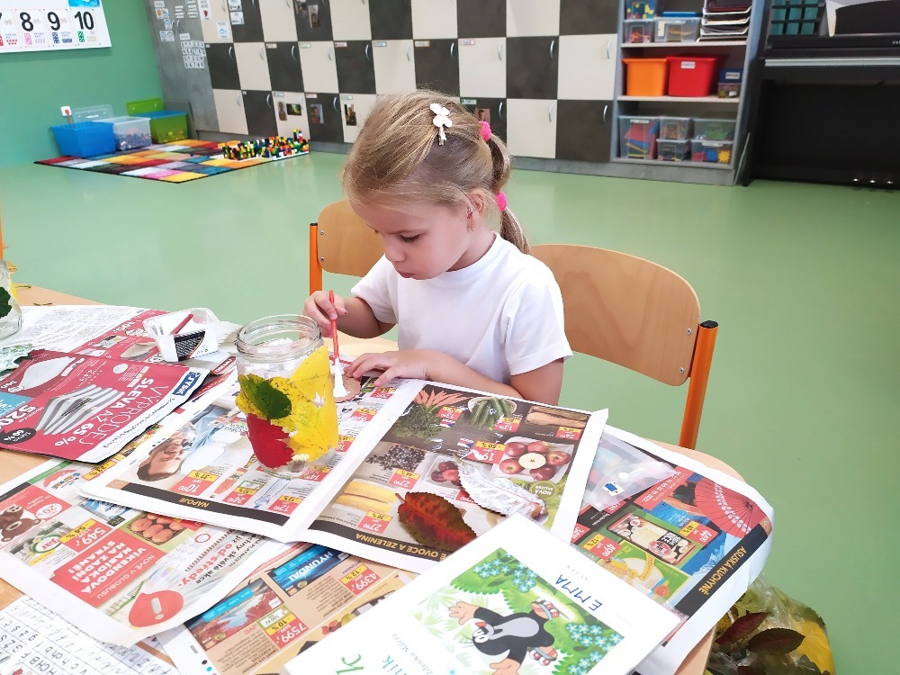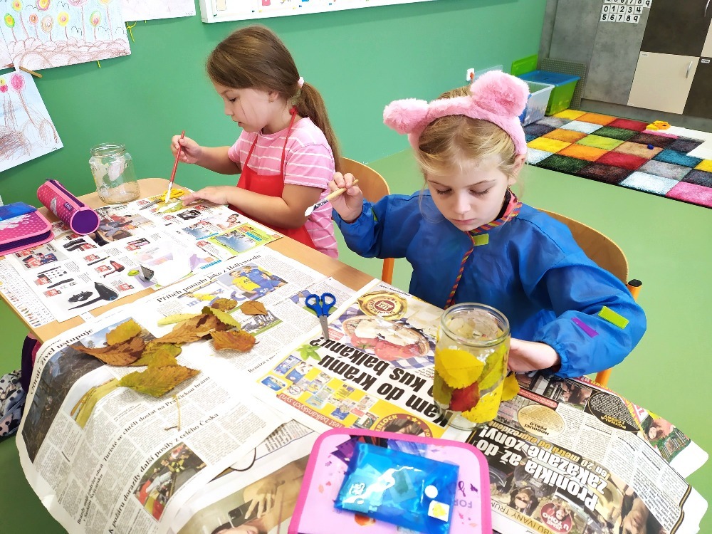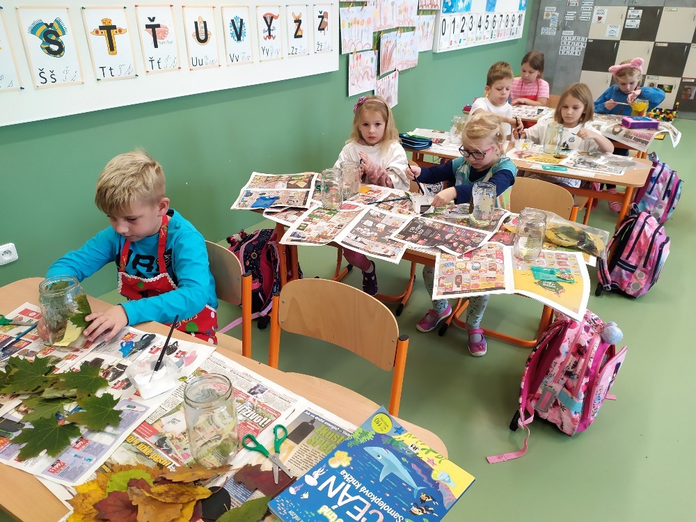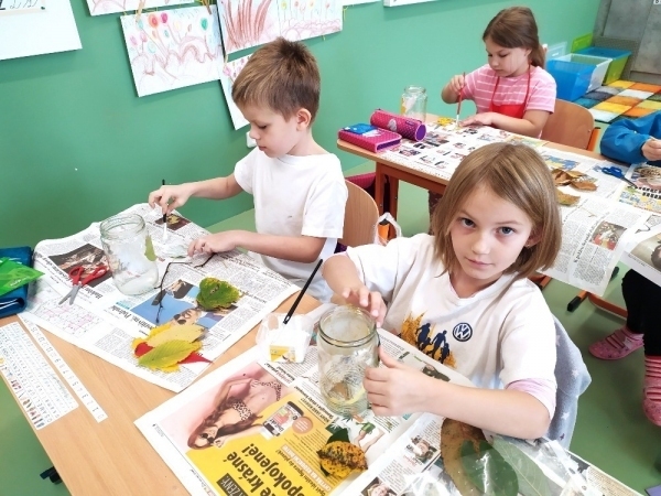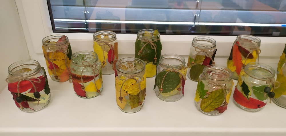 Tento týden jsme si vyrobili krásné podzimní svícny. Barevné listí udělalo velkou parádu. Už se těšíme, až si do nich doma dáme hořící svíčku a uděláme si podzimní náladu.