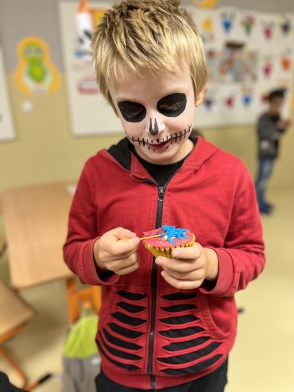 Tento týden byl nabitý akcemi. Pondělí jsme prožili relativně standardně, ale v úterý se začaly dít věci. Místo dětí přišly do školy děsivá stvoření - smrtka, duch, čarodějnice, černá kočka a další. V prvních dvou hodinách nás navštívila ještě také monstra ze třetí třídy a společnými silami jsme upekli halloweenské sušenky. Celý den završila perfektní akce páťáků plná halloweenských aktivit. Bylo to boží. Ve středu si děti vyzkoušely svůj první kruháč. Ale né ten, který znáte z fitka. Byl to češtinářský kruháč. Po sedmi minutách děti měnily svá stanoviště a procvičily druhy vět, abecedu a skládání slov z písmen. Ve čtvrtek jsme se seznámili s typickou českou tradicí. Šli jsme na procházku na hřbitov, abychom zapálili svíčku a vzpomněli na naše blízké zesnulé. Poslední akcí týdne byl páteční workshop o odpadech. Myslím si, že je třeba o víkendu nabrat síly, protože příští týden budeme pořádně makat!