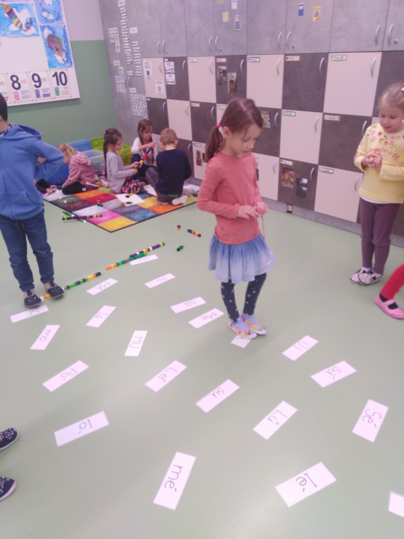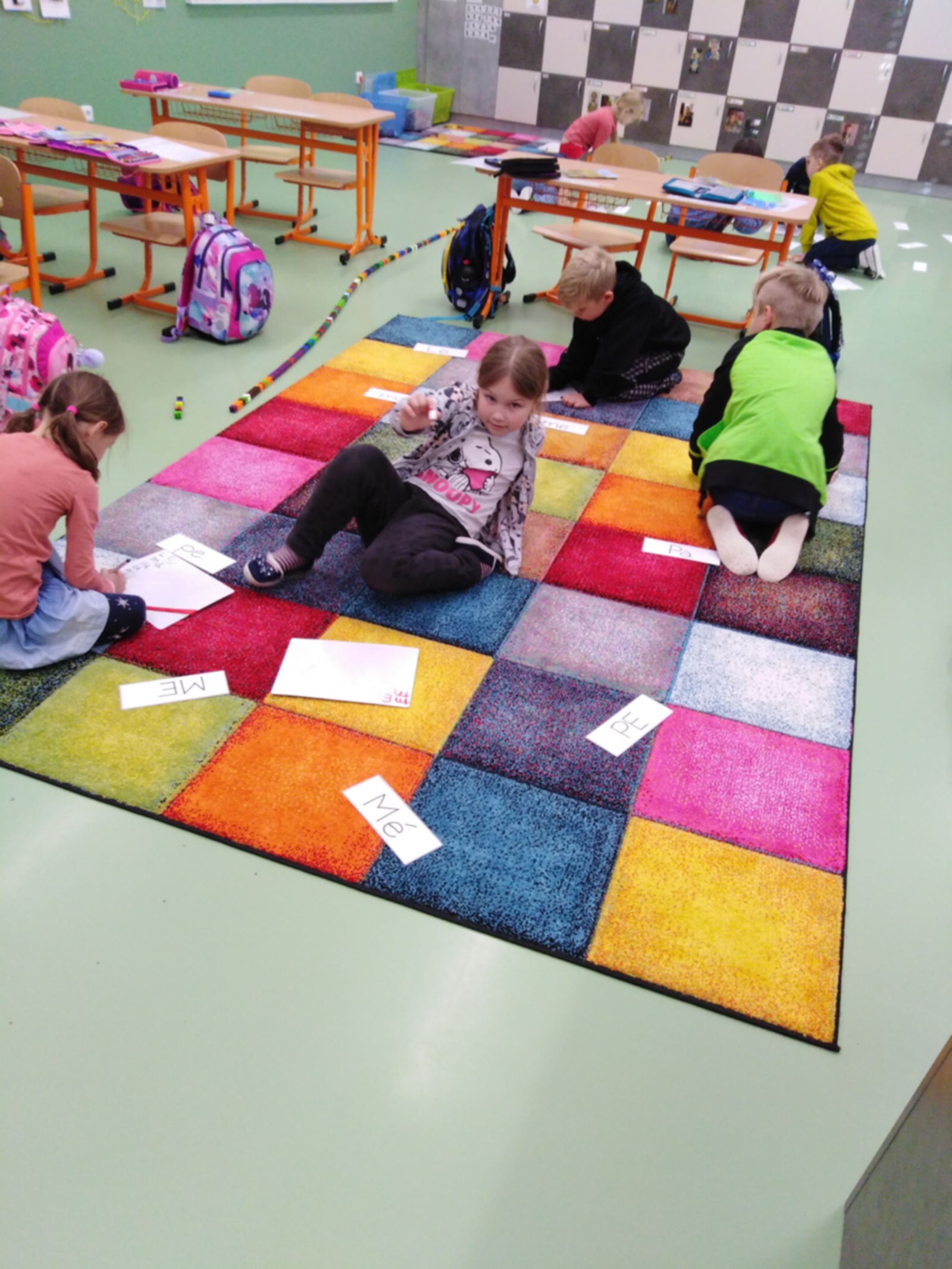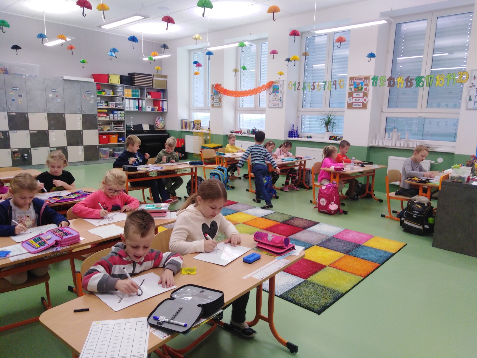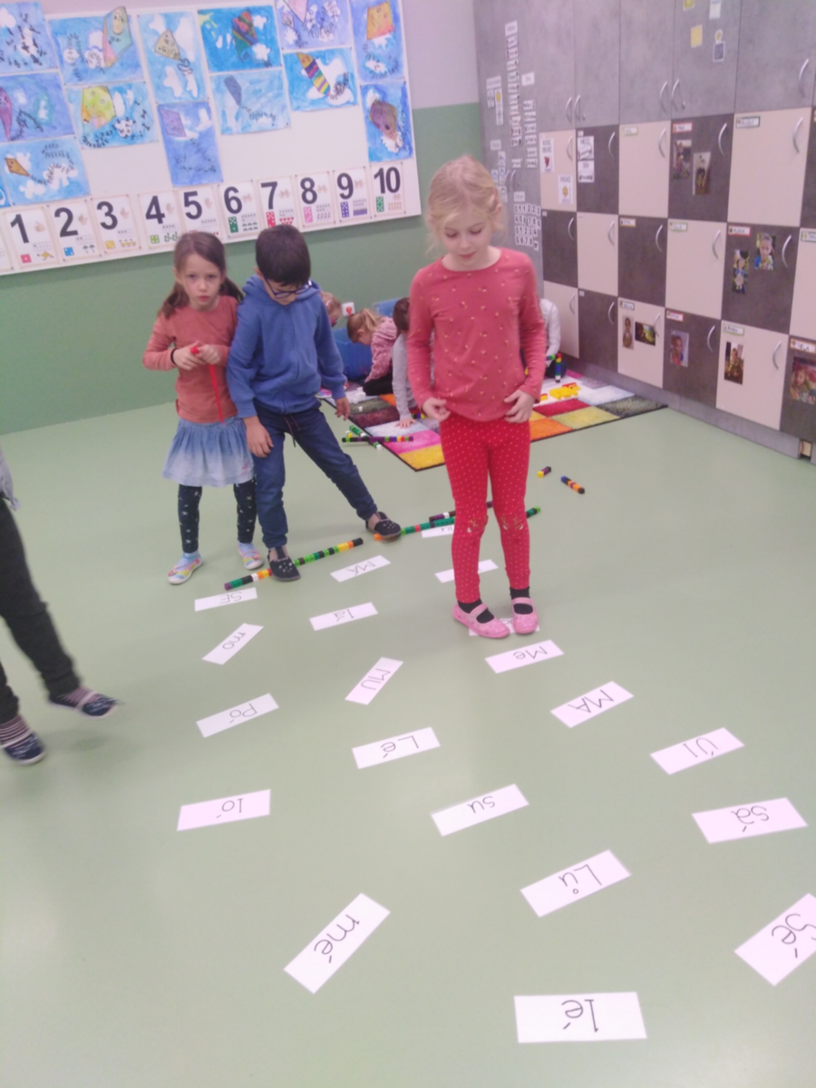 Řeka je hra, ve které je cílem dostat se z jedné strany břehu na druhý břeh za pomoci stabilních kamenů. Ale pozor – jen některé kameny jsou bezpečné, a pokud šlápnete na kámen, který není ten pravý, můžete se klidně potopit. V I. A jsou už ale tak nadaní čtenáři, že jim slabiky nedělají žádný problém a téměř všichni úspěšně přeskákali po kamenech až do bezpečí. Mimo čtení slabik pilně makáme v počtech i psaní. Však se podívejte sami 🙂