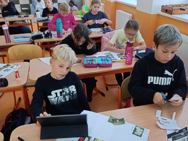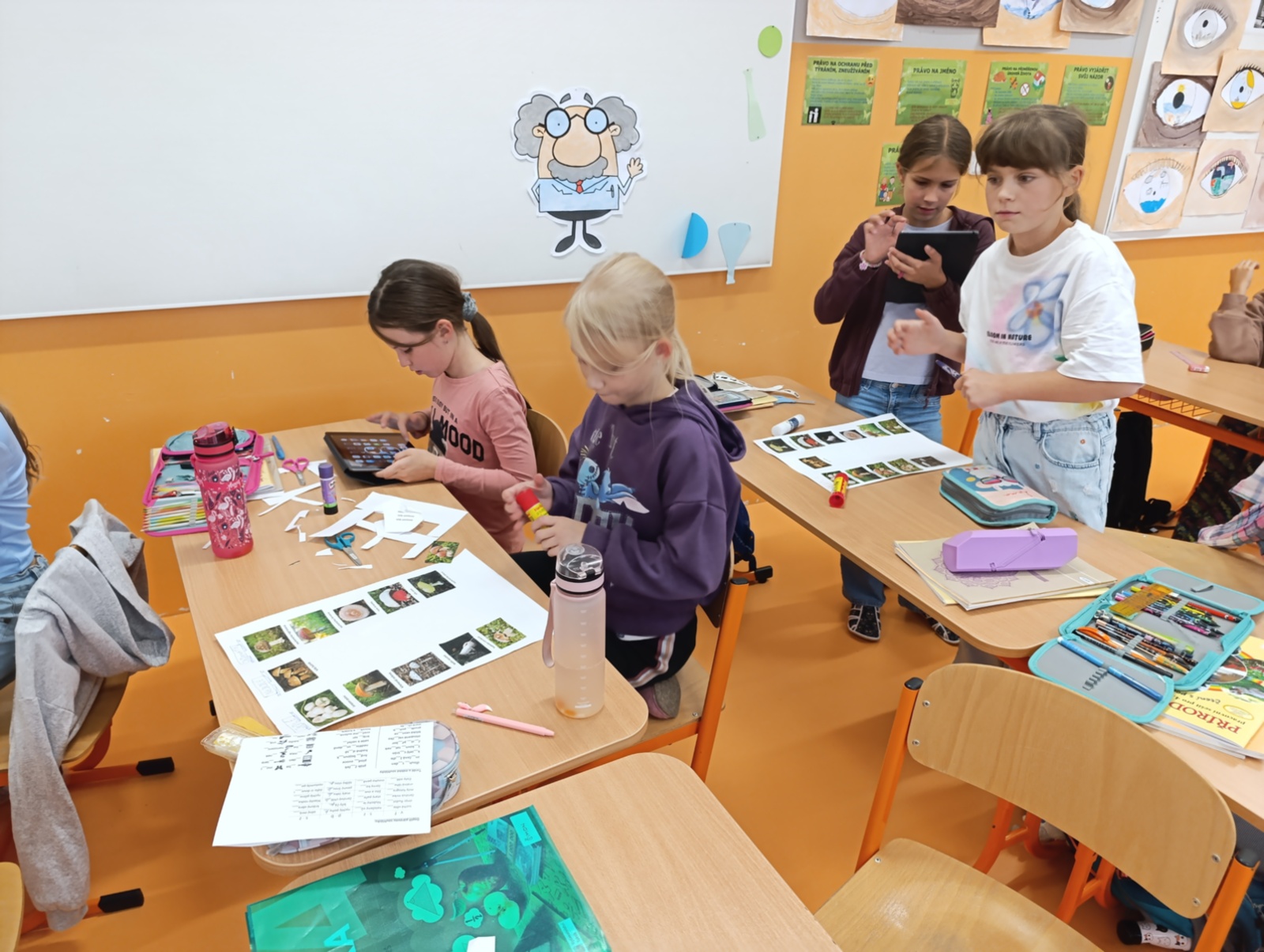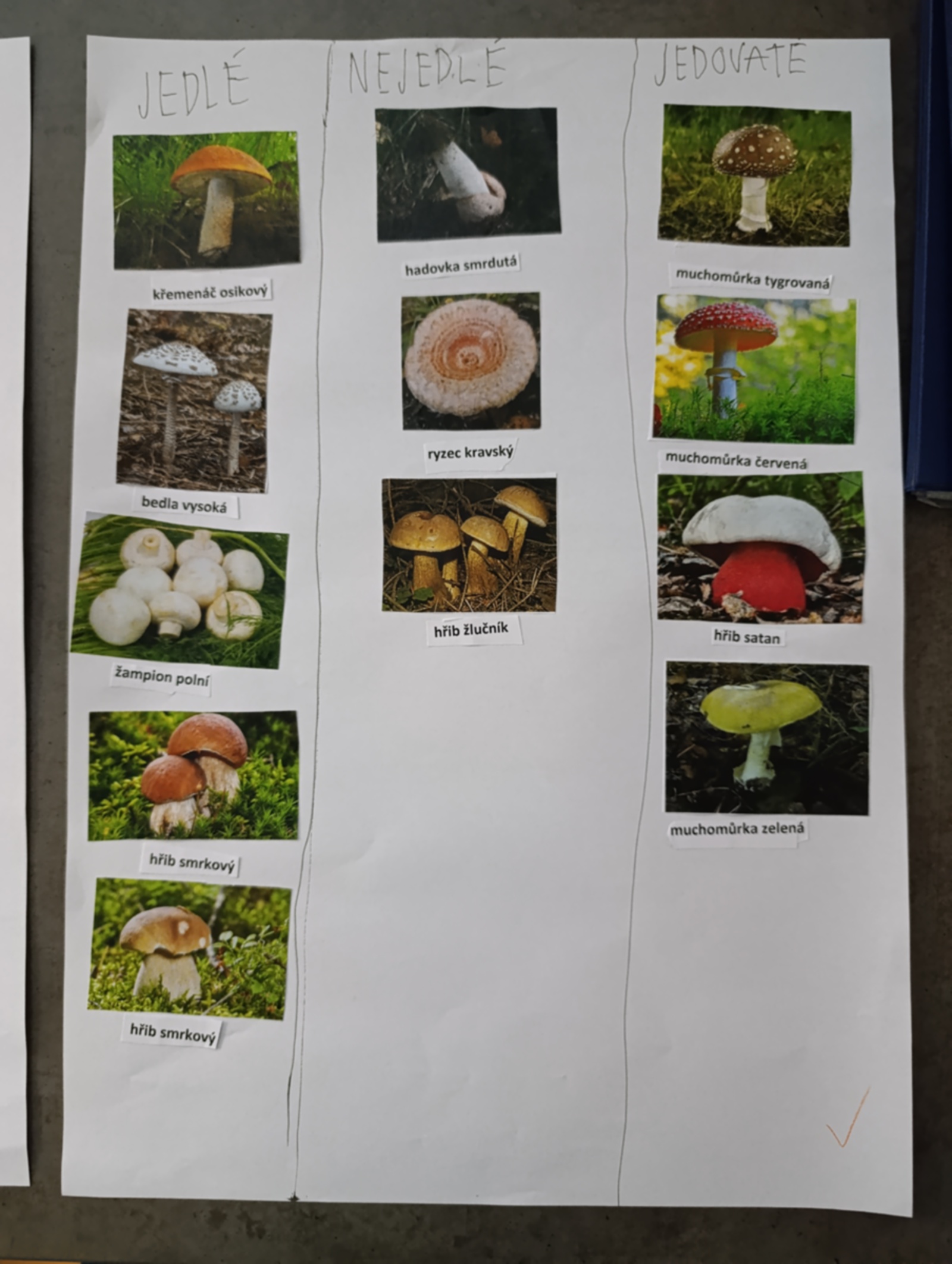 V přírodovědě jsme zjistili, proč houby nepatří mezi rostliny, jakou mají stavbu těla, jak se rozmnožují, jak je dělíme. Pomohla nám i videa, která nám ukázala, že někdy není snadné houby správně určit a otrava houbami není žádná legrace. Nejvíce nás bavila práce ve dvojicích. Připravené obrázky hub jsme správně pojmenovávali a rozdělovali na jedlé, nejedlé a jedovaté. Informace jsme vyhledávali pomocí tabletů. Rozhodně teď budeme sbírat jen houby, které dobře známe! Dělejte to také tak.