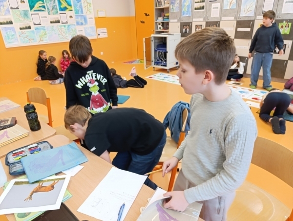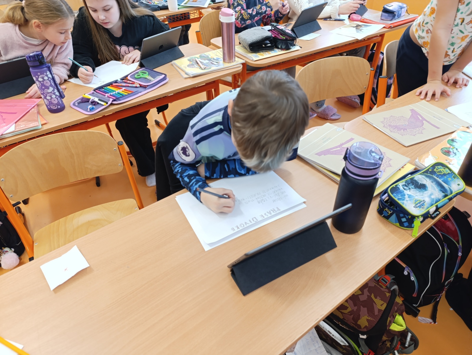 V přírodovědě se věnujeme lesním zvířatům. Sami jsme si vyhledávali informace o lišce, srnci, jelenovi, kukačce, sojce, datlovi, káněti, praseti, jezevci, veverce, zmiji, slepýši, mravenci a chrobákovi. Zjišťovali jsme, jak vypadají, zda jsou chráněni, čím se živí, jak je to s jejich mláďaty a co je na nich nejzajímavější. V příští hodině budeme naše prezentace představovat spolužákům.
