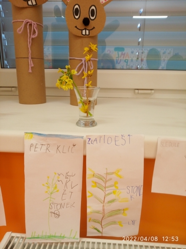 "Jaro, jaro, jaro už je tu..." a tak jsme měli tento týden v naší třídě plno barev a vůní. Jakpak by ne, vždyť jaro je tak krásné a zajímavé roční období! Povídali jsme si o tom, jaké jsou jeho hlavní znaky, učili jsme se názvy jarních měsíců a hádali jsme, co na jaře spatříme nejdříve. Také jsme vše podrobně zkoumali, pozorovali jsme jarní kvítí, přičichli si k nim a ve výtvarné výchově jsme si jarní kvítí nakreslili. Umíme pojmenovat a popsat části rostlin a víme, které jarní kytičky jsou chráněné či jedovaté, které naopak léčivé.
