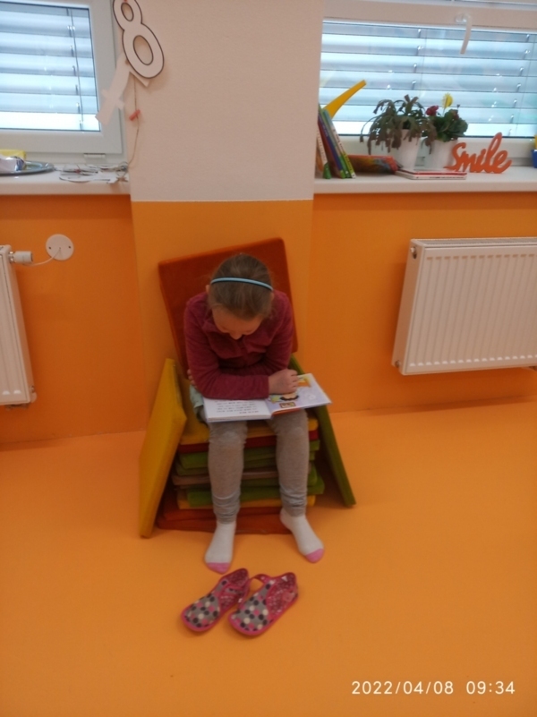 Zatančili jsme si Tanec kuřátek a pořádně se u něj zadýchali. A protože se blíží Velikonoce, zaseli jsme si řeřichu. Velké finále byly první čtenářské dílny, ve kterých si děti četly svou knihu na místě, kde jim bylo příjemně. Jen je škoda, že jsme nestihli jít ven. Tak snad příště... s lupou a pozorovacím okýnkem, abychom vše prozkoumali i v přírodě.