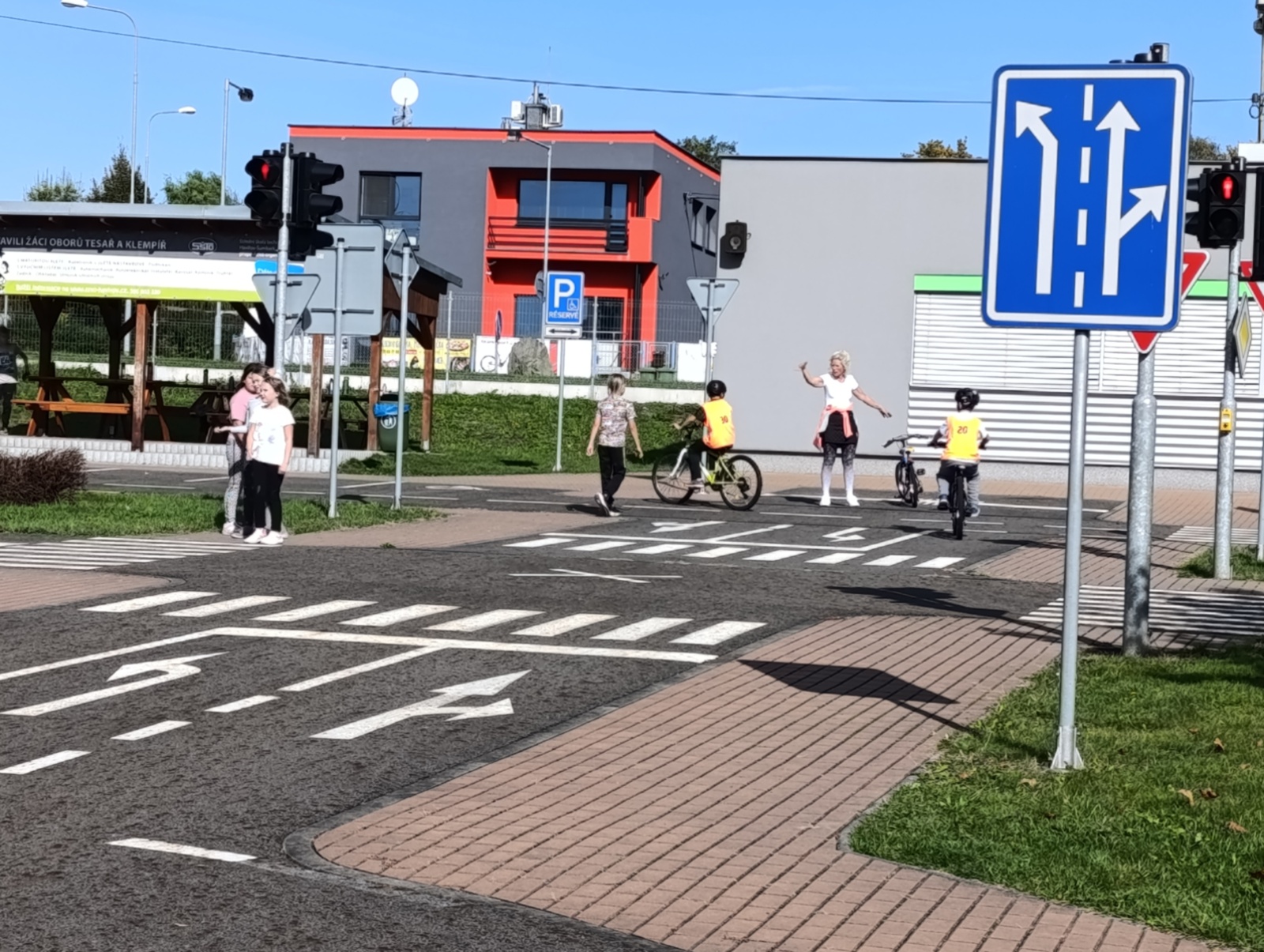 V nádherném počasí jsme si probrali teorii, dopravní značky i křižovatky a pak hurá na hřiště. Chvíli jsme byli cyklisty, chvíli chodci a výborně jsme si procvičili všechno, co jsme se naučili v učebně.