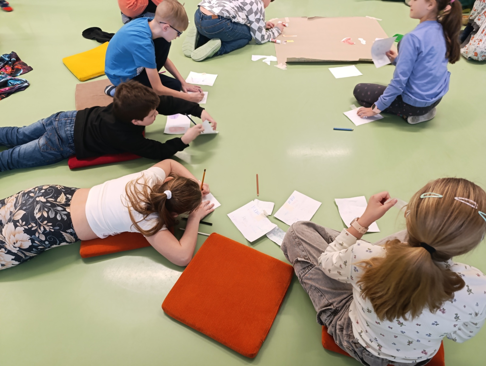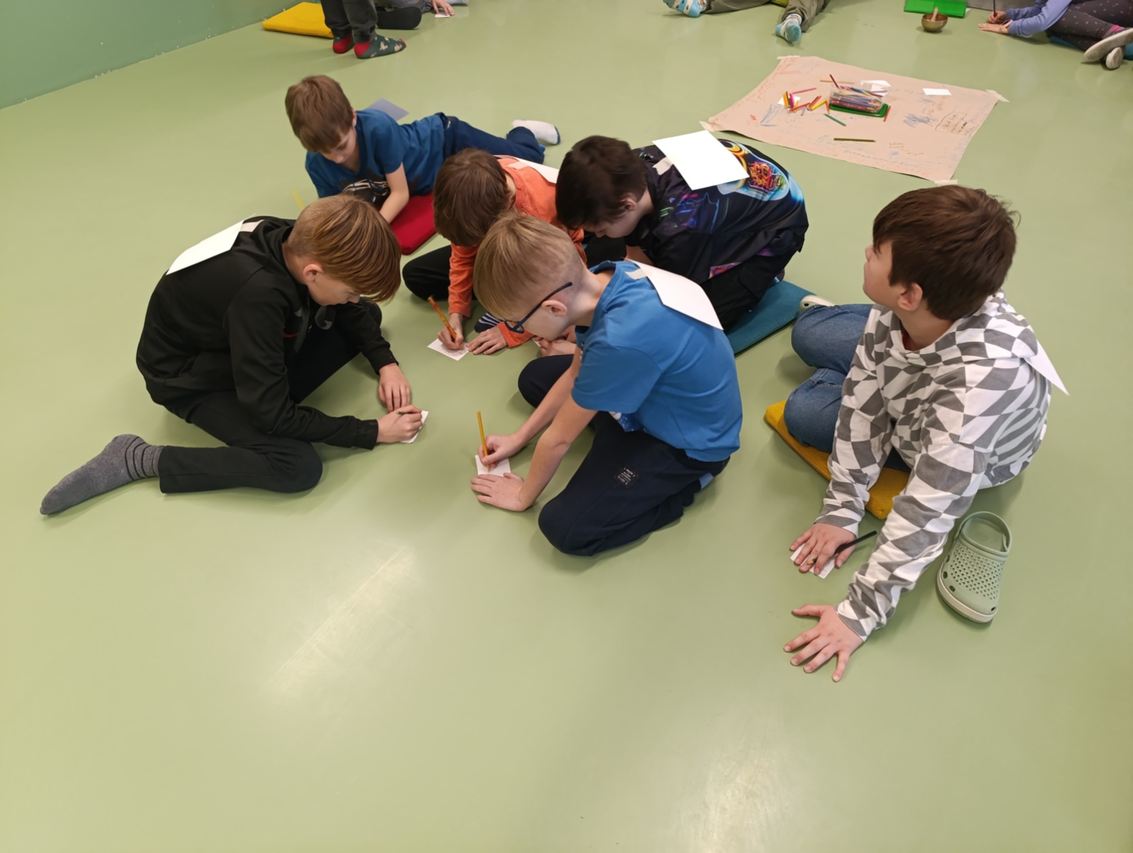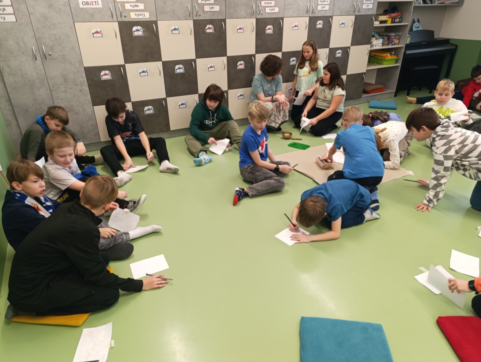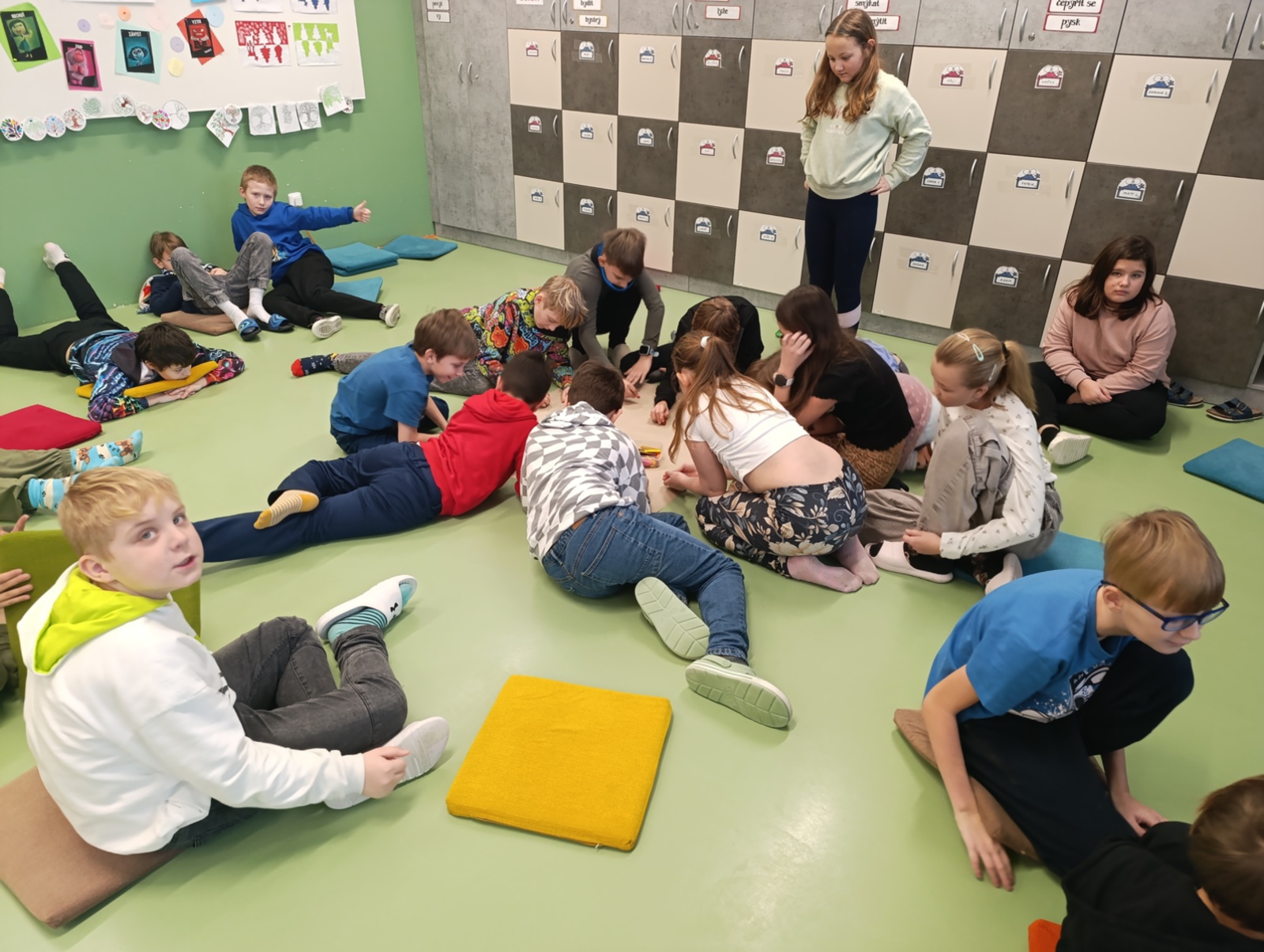Včelí kolektiv se vyznačuje spoluprací všech jedinců v úlu. Dnes jsme spolupráci aplikovali na kolektiv naší třídy. Jeden za všechny, všichni za jednoho, každý jednotlivec je pro skupinu důležitý. Kolektiv si každého člena chrání. Hodnotili jsme svoje dobré vlastnosti a tvořili třídní postavu.